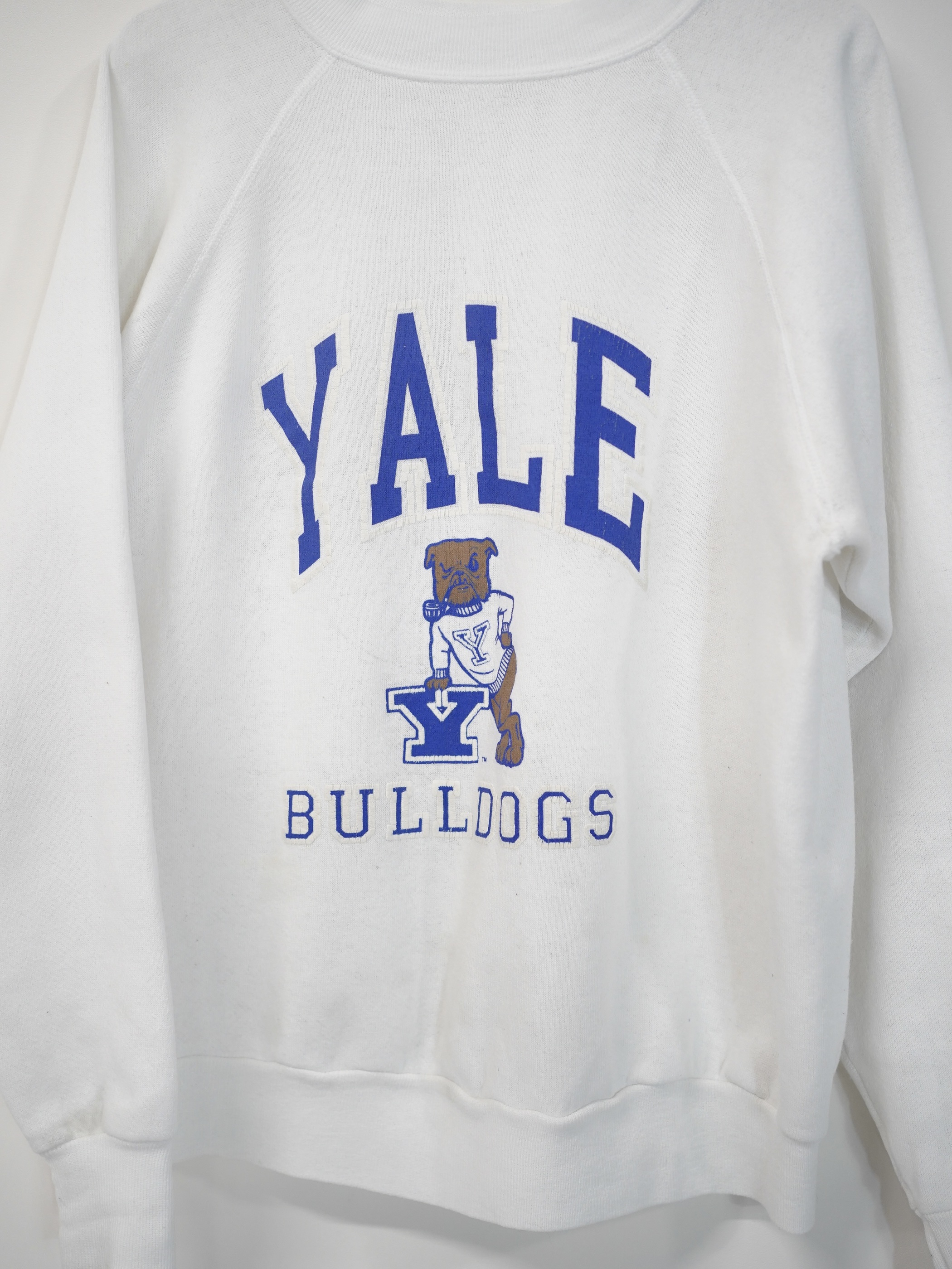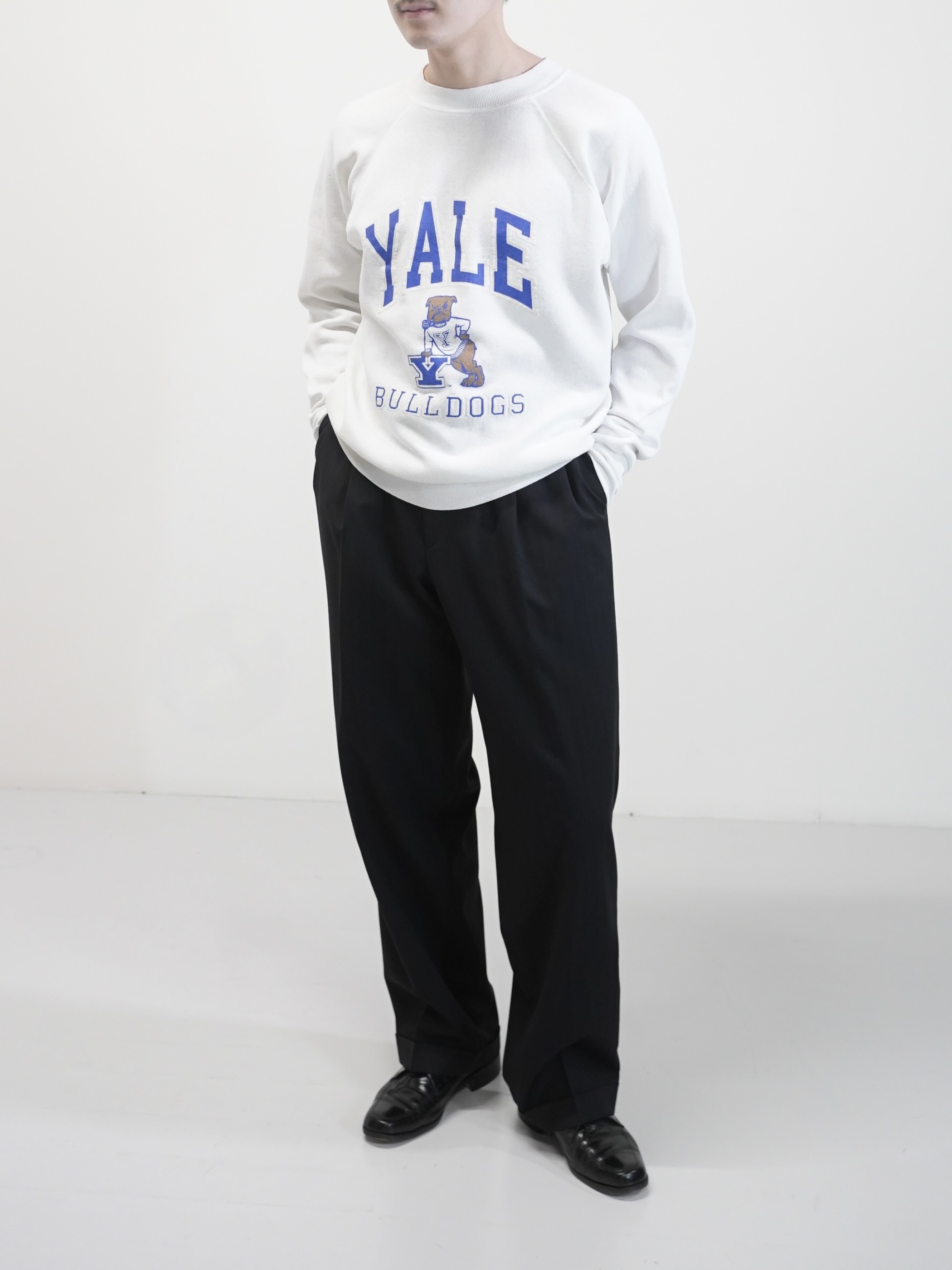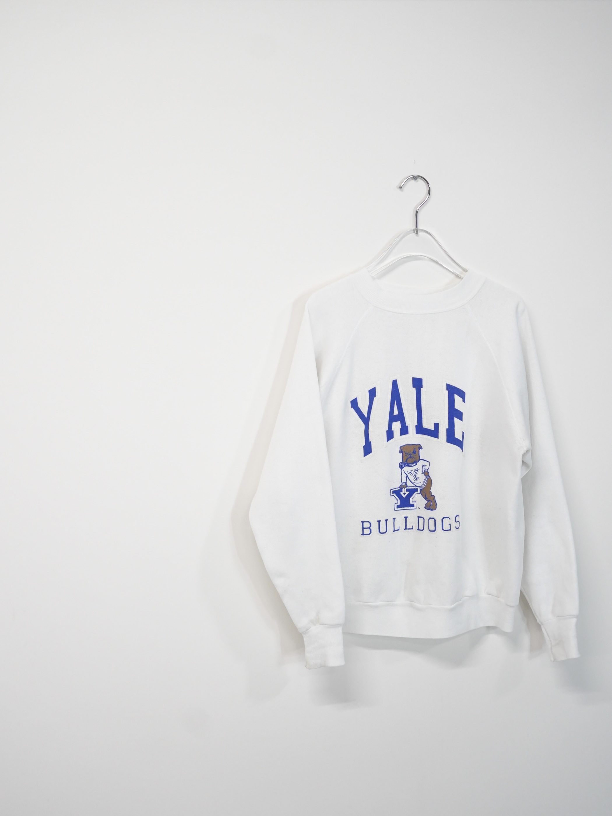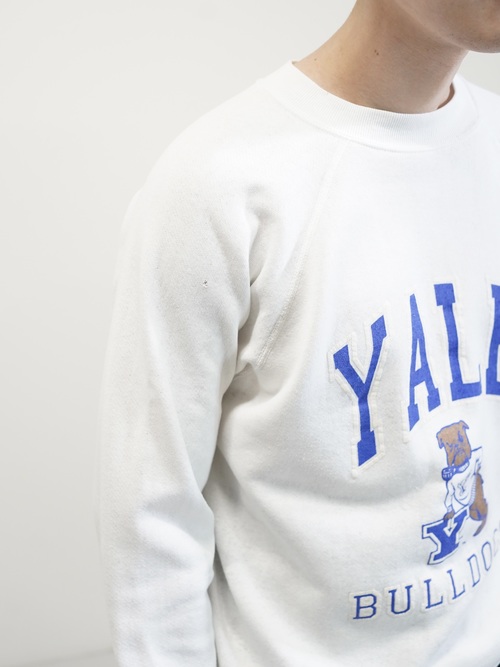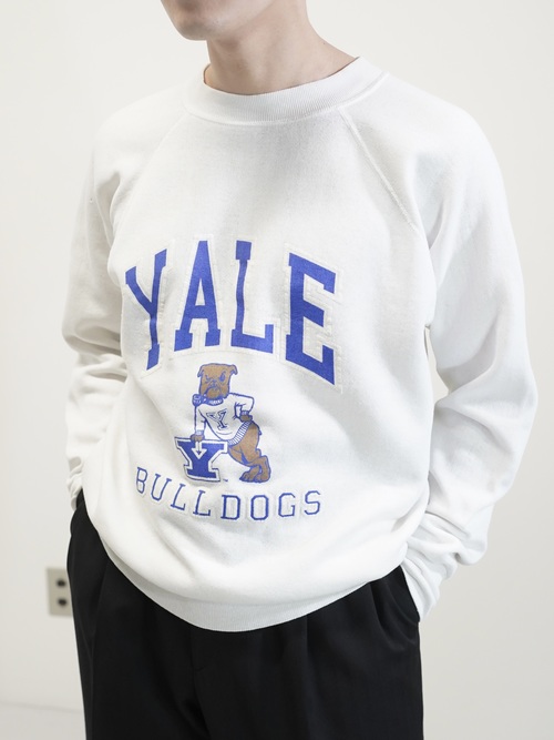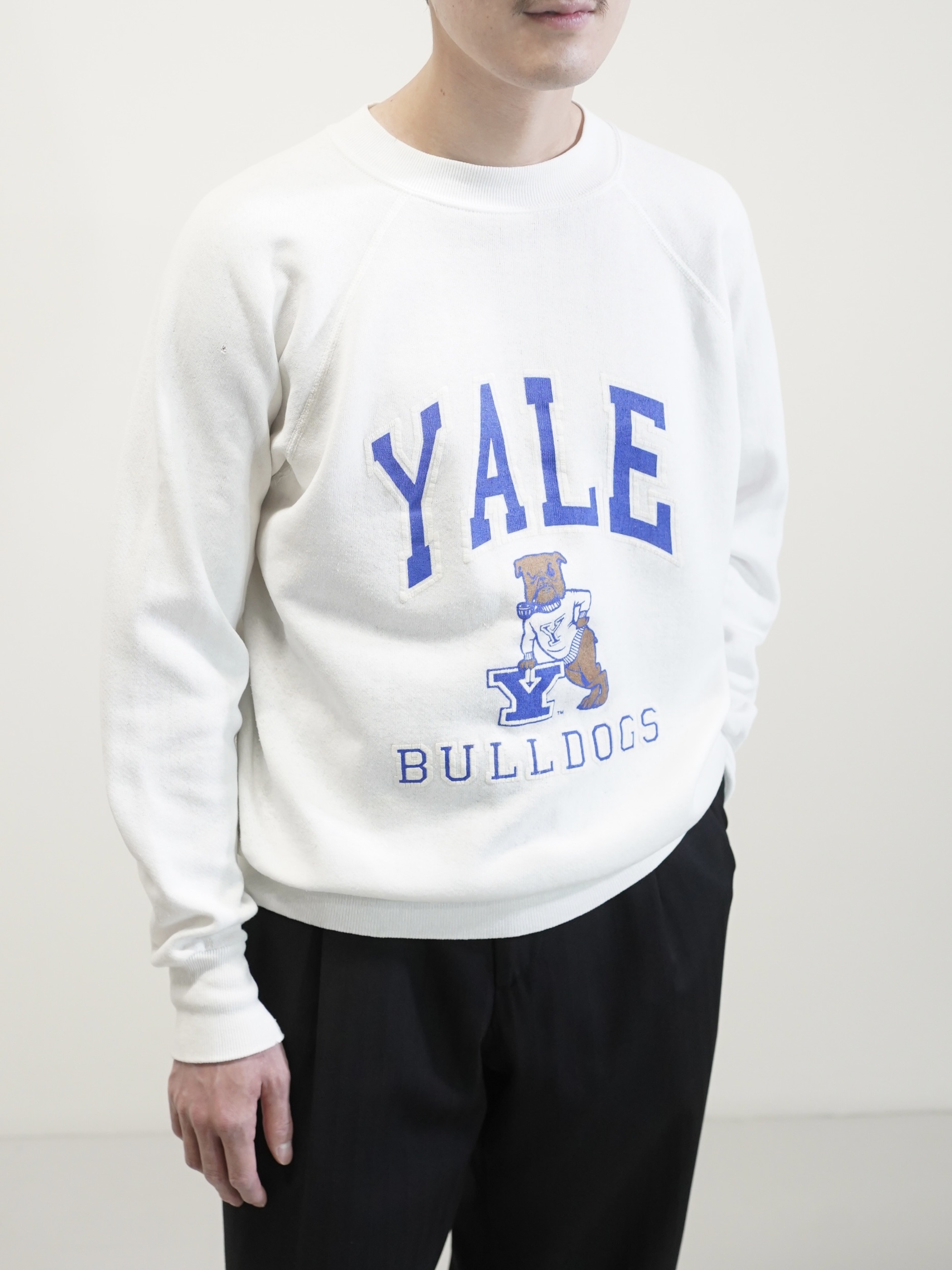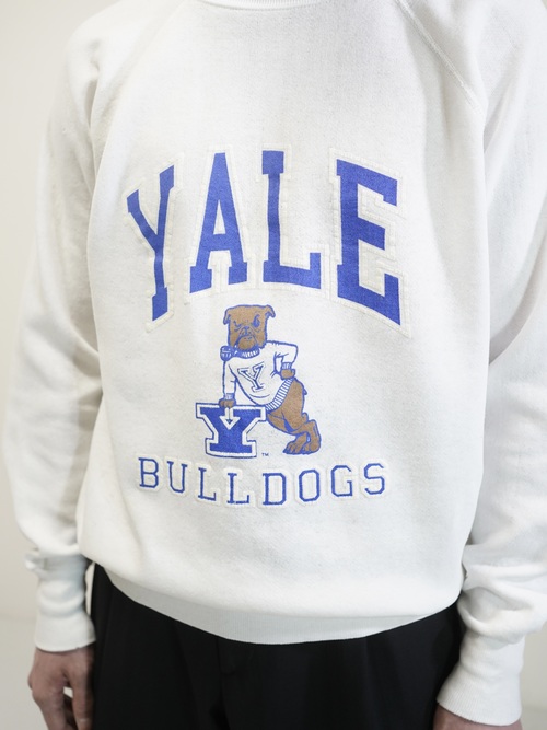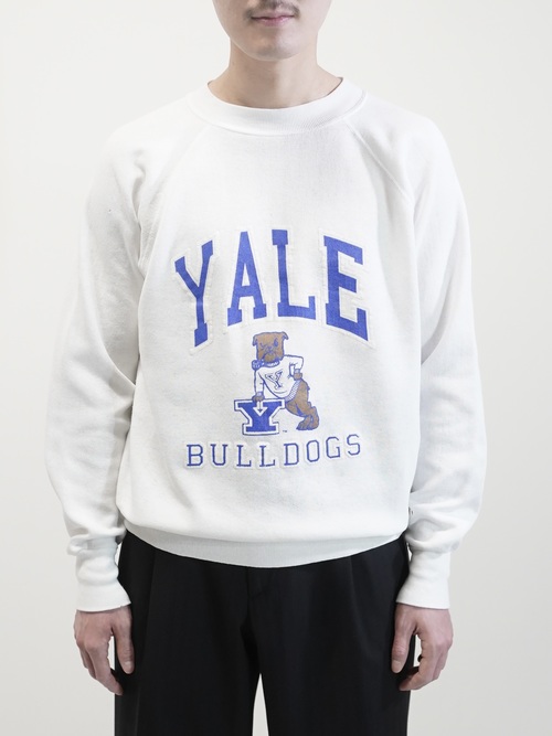 アメリカの名門アイビー・リーグ所属「イェール大学」のスポーツチームの愛称、および公式マスコット犬「ハンサム・ダン」の3段プリントスウェット。