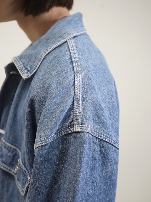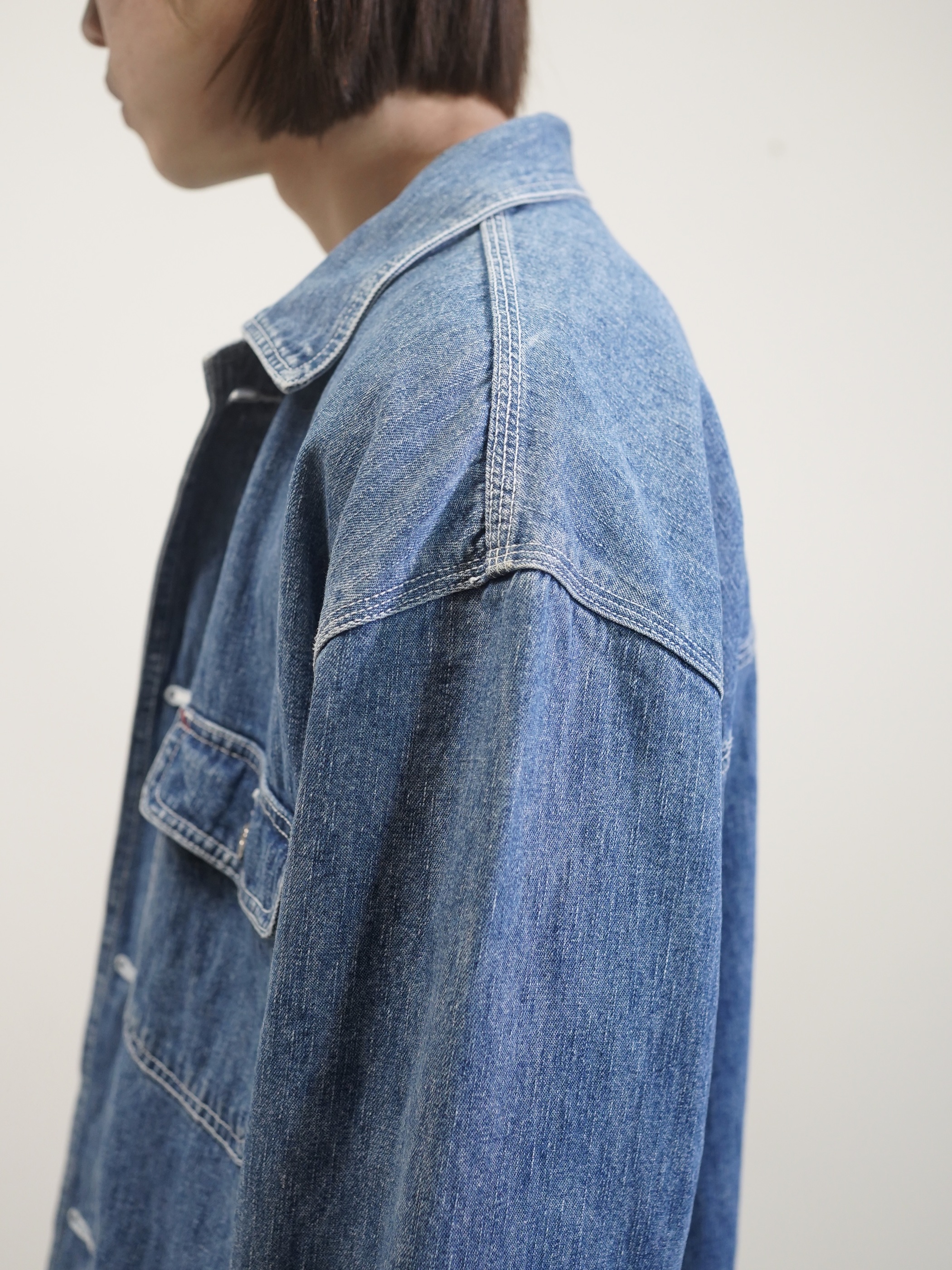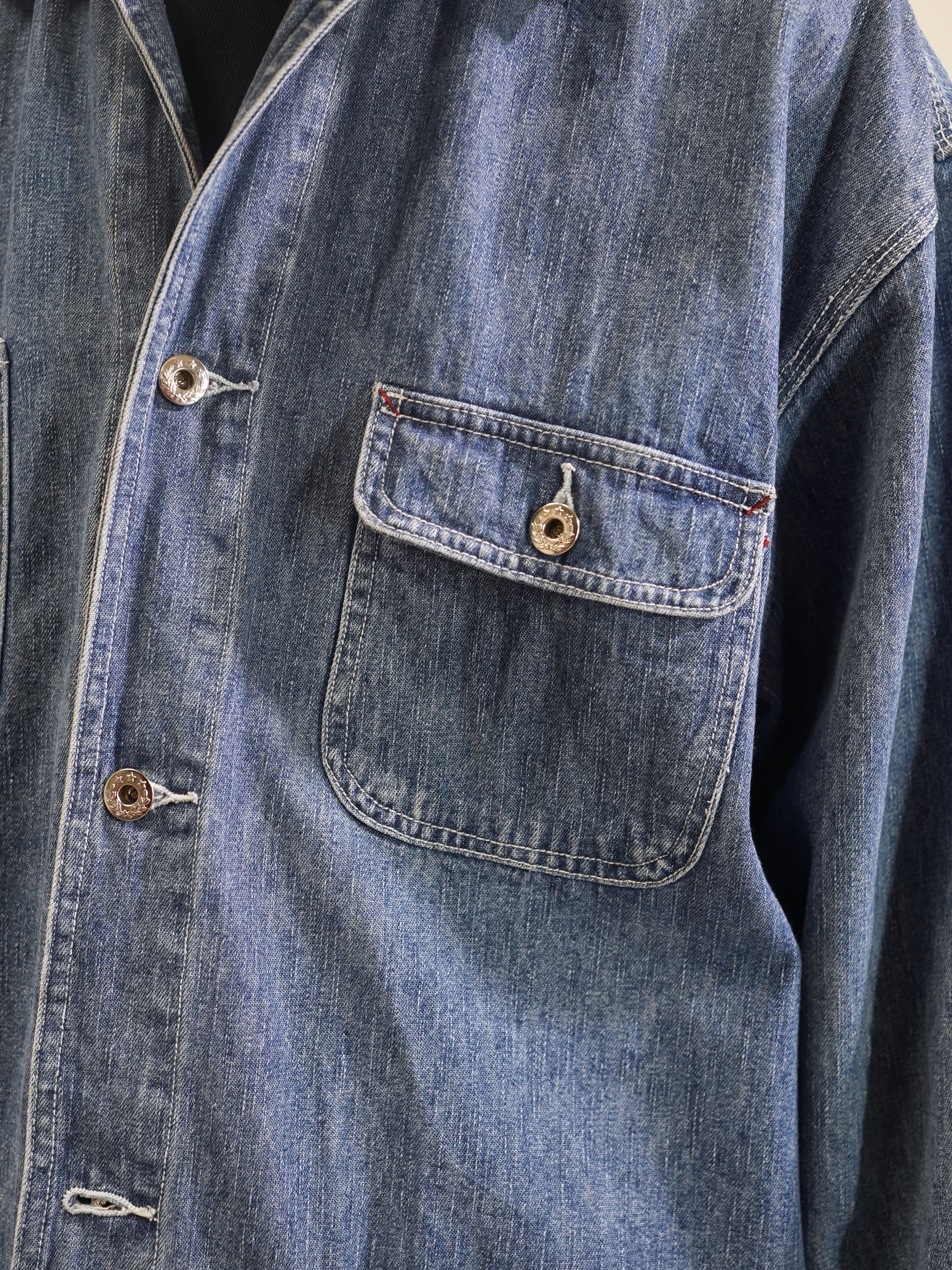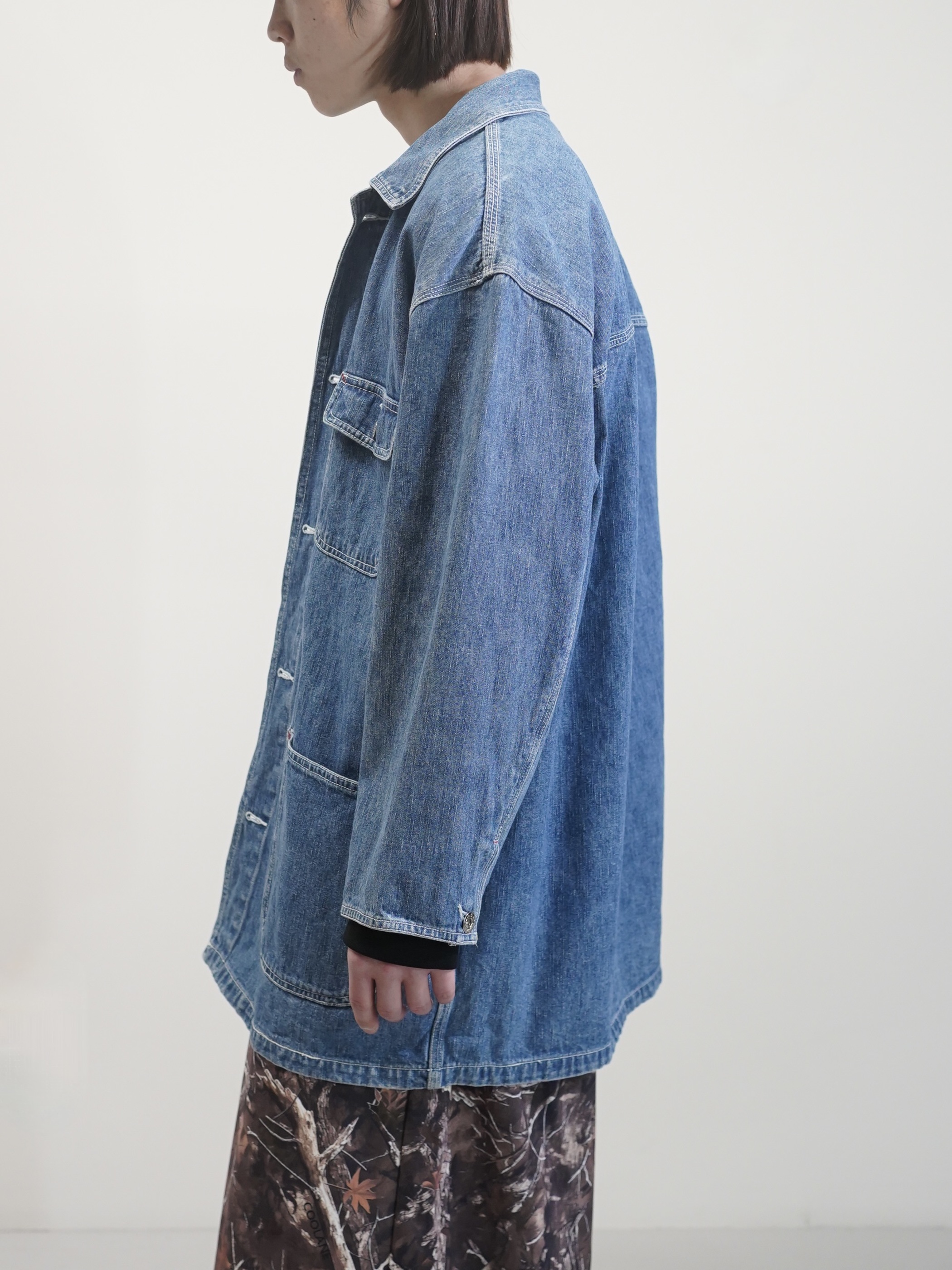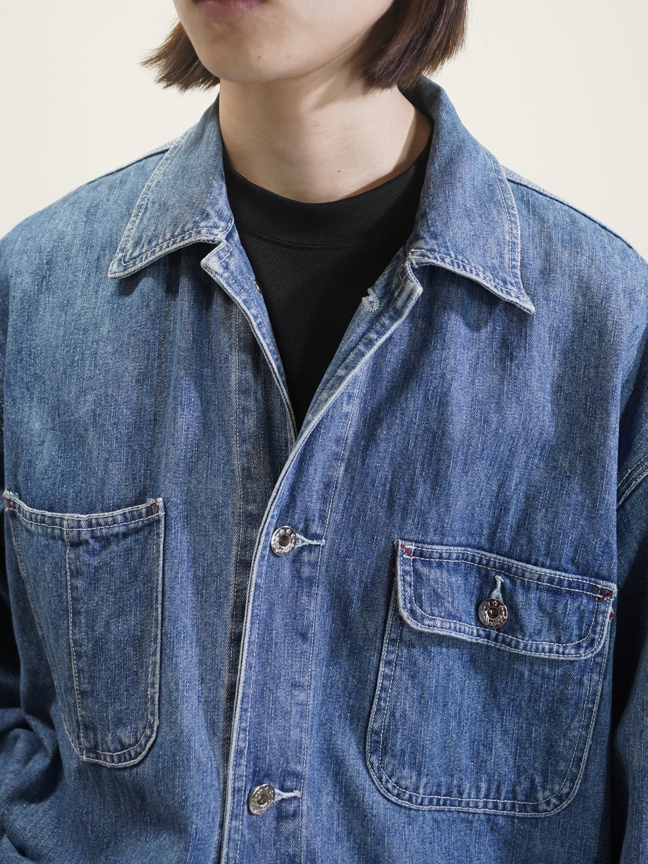 軽くて柔らかいデニム生地のカバーオールジャケット。