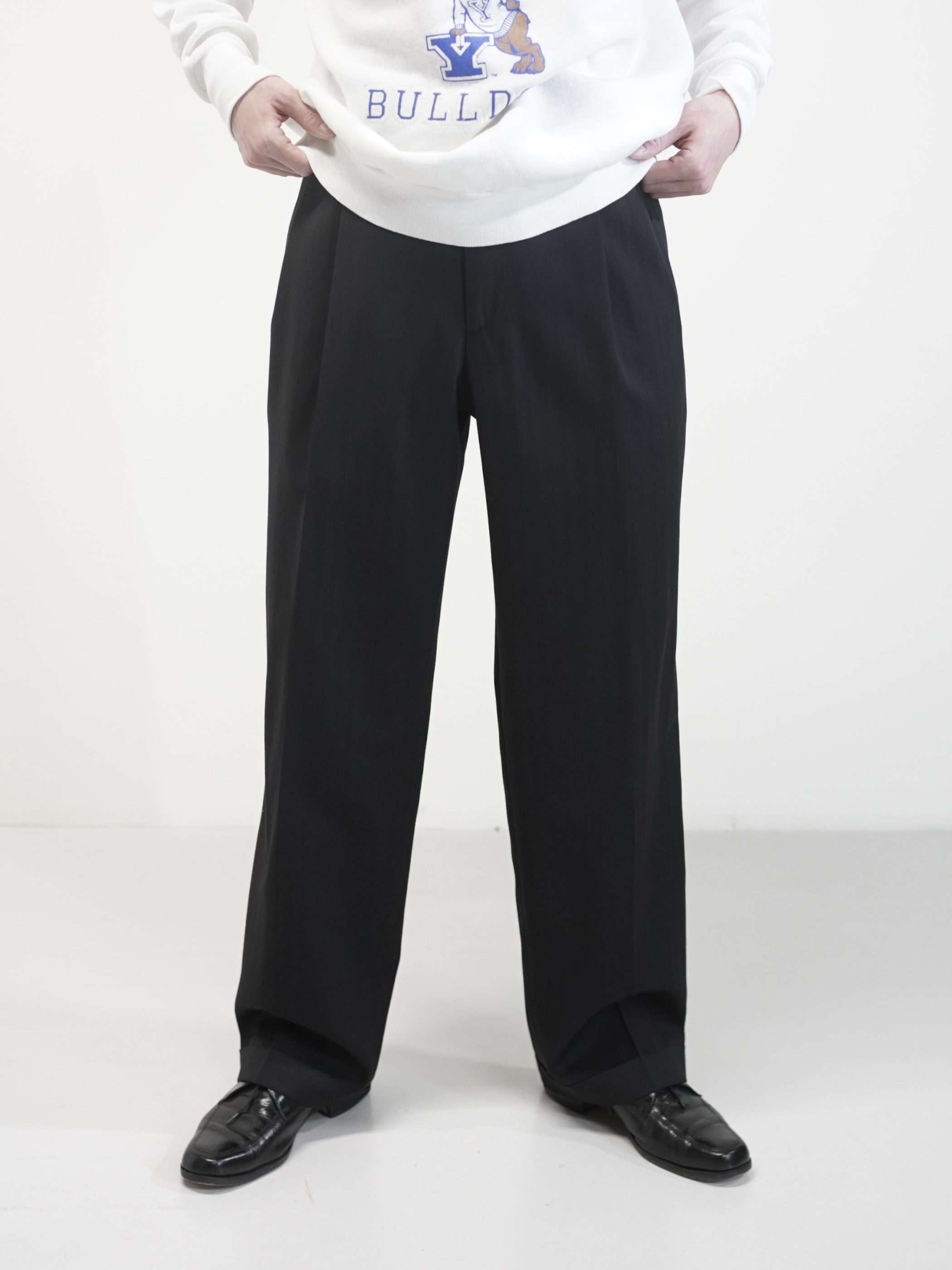 ・1990's MODA UOMO Herringbone stripe 2tuck dress trousers / Made in Italy