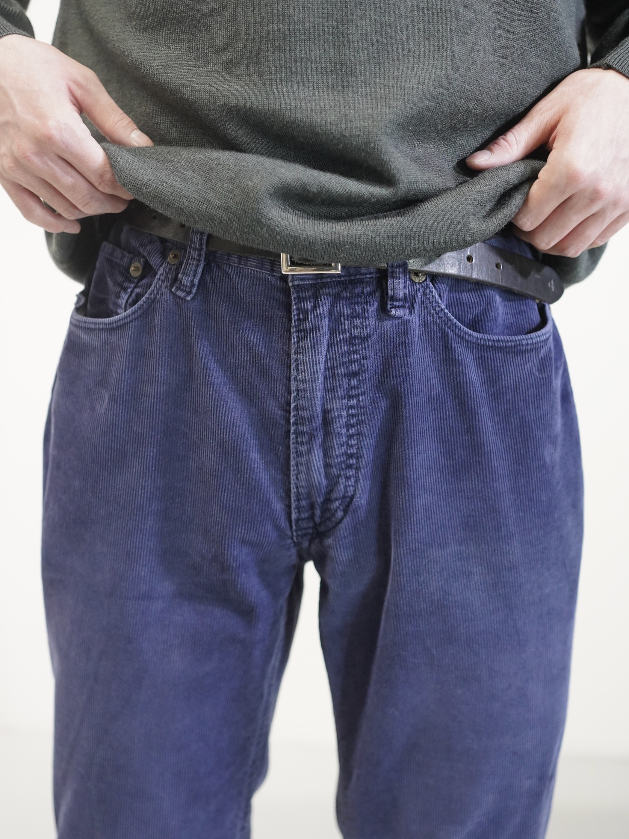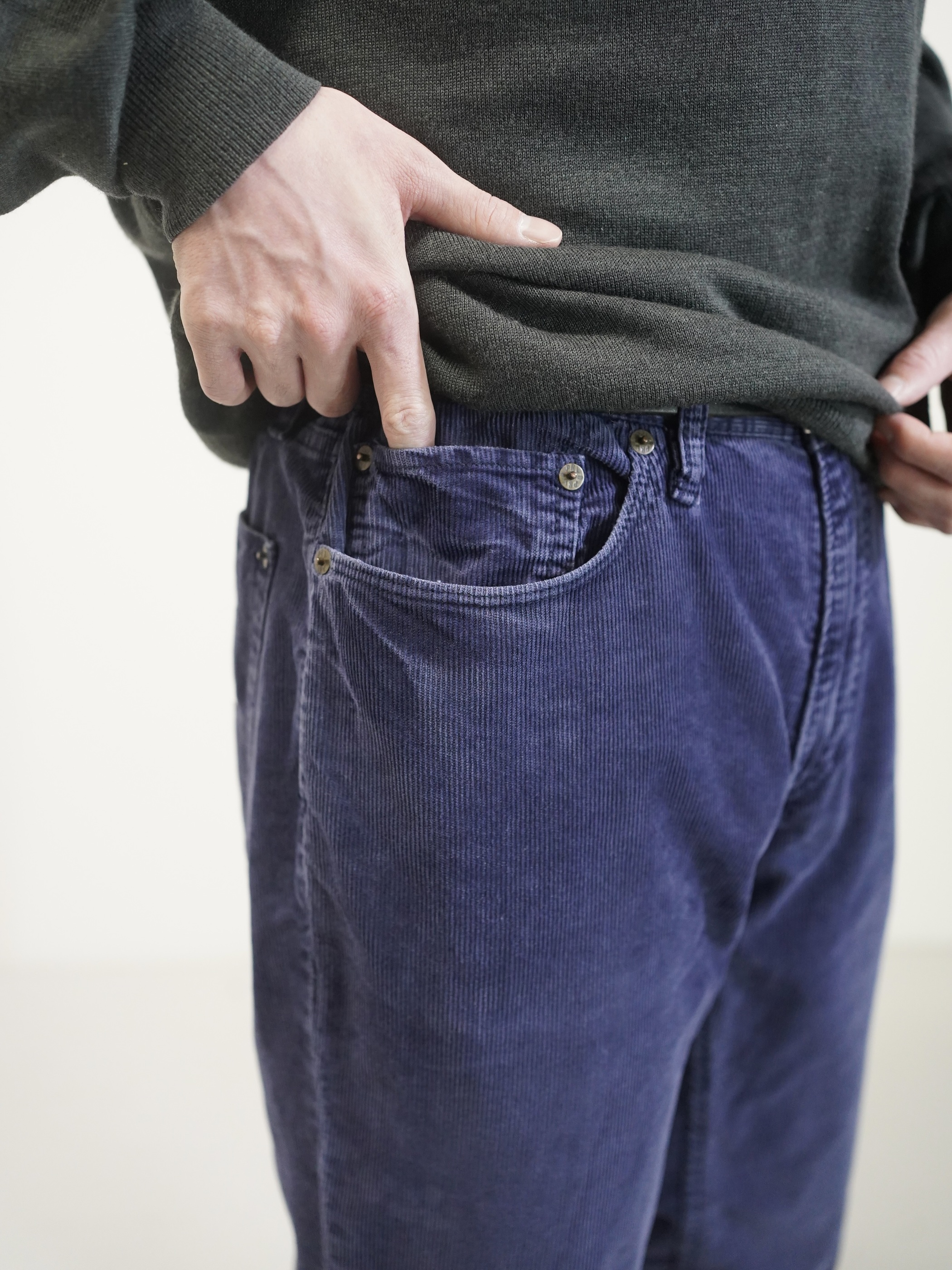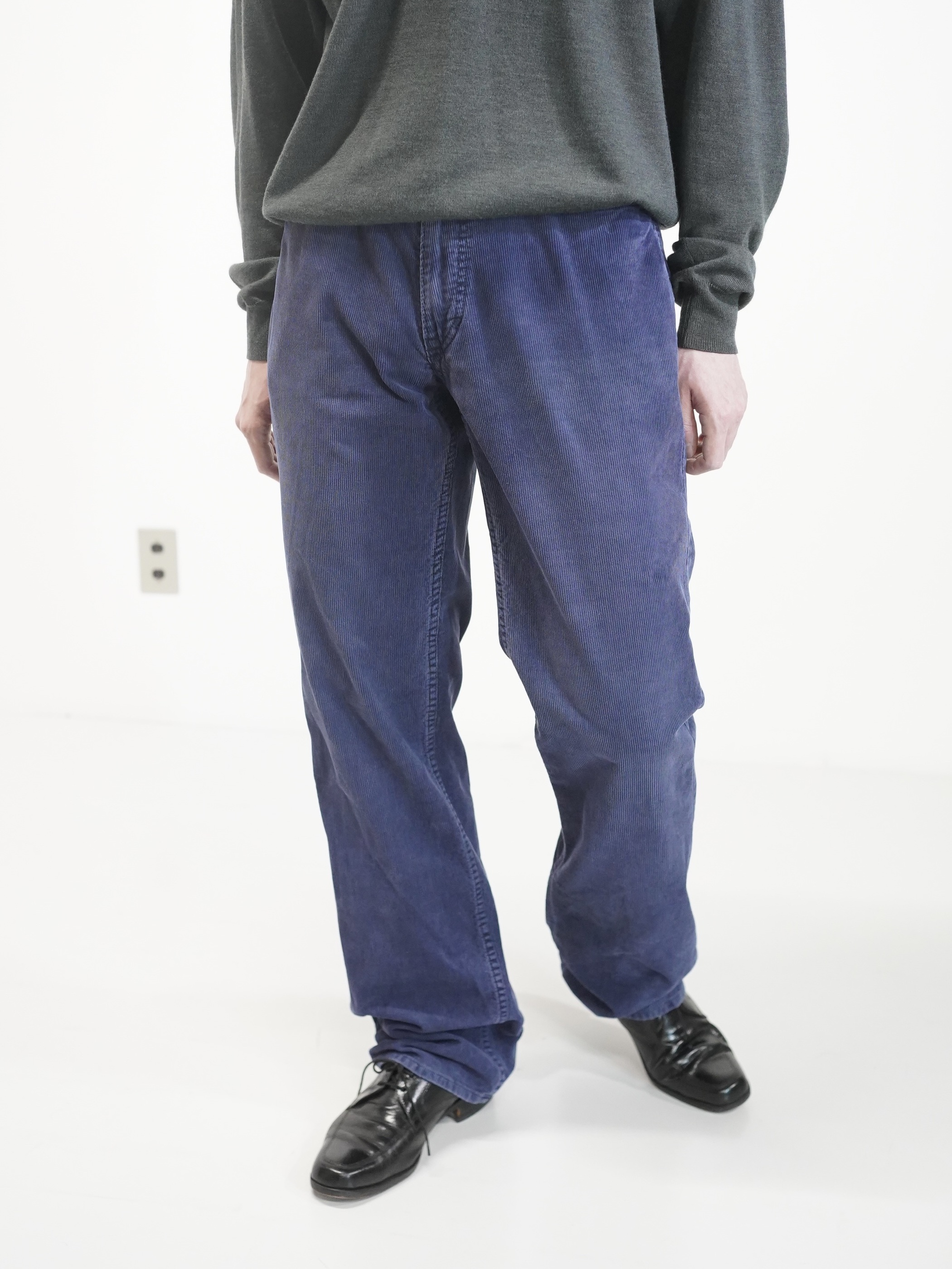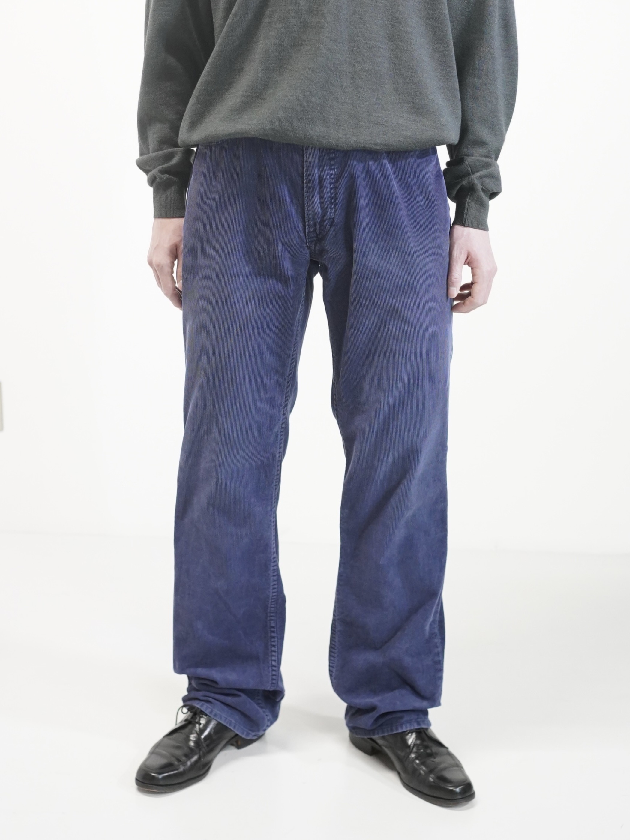履き込まれたブルーの細畝コーデュロイ。