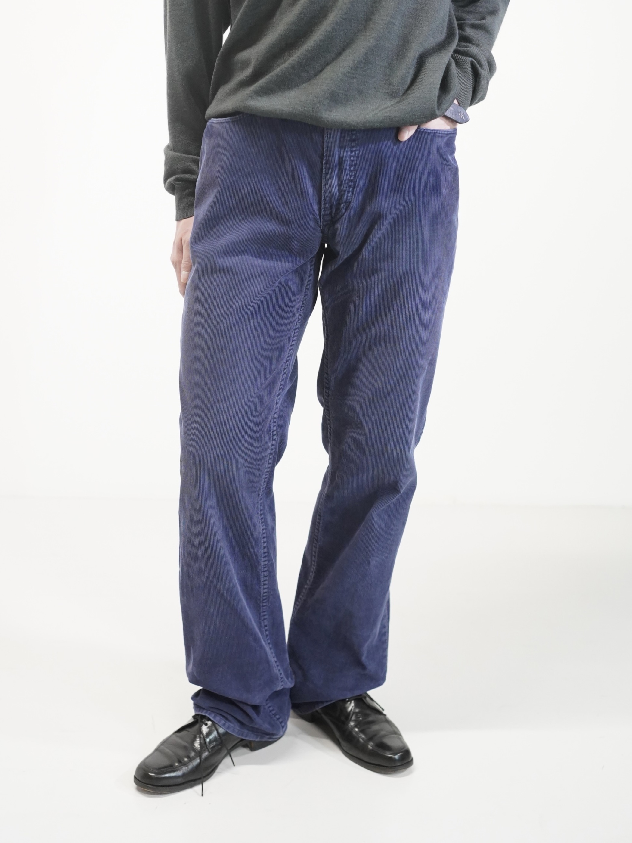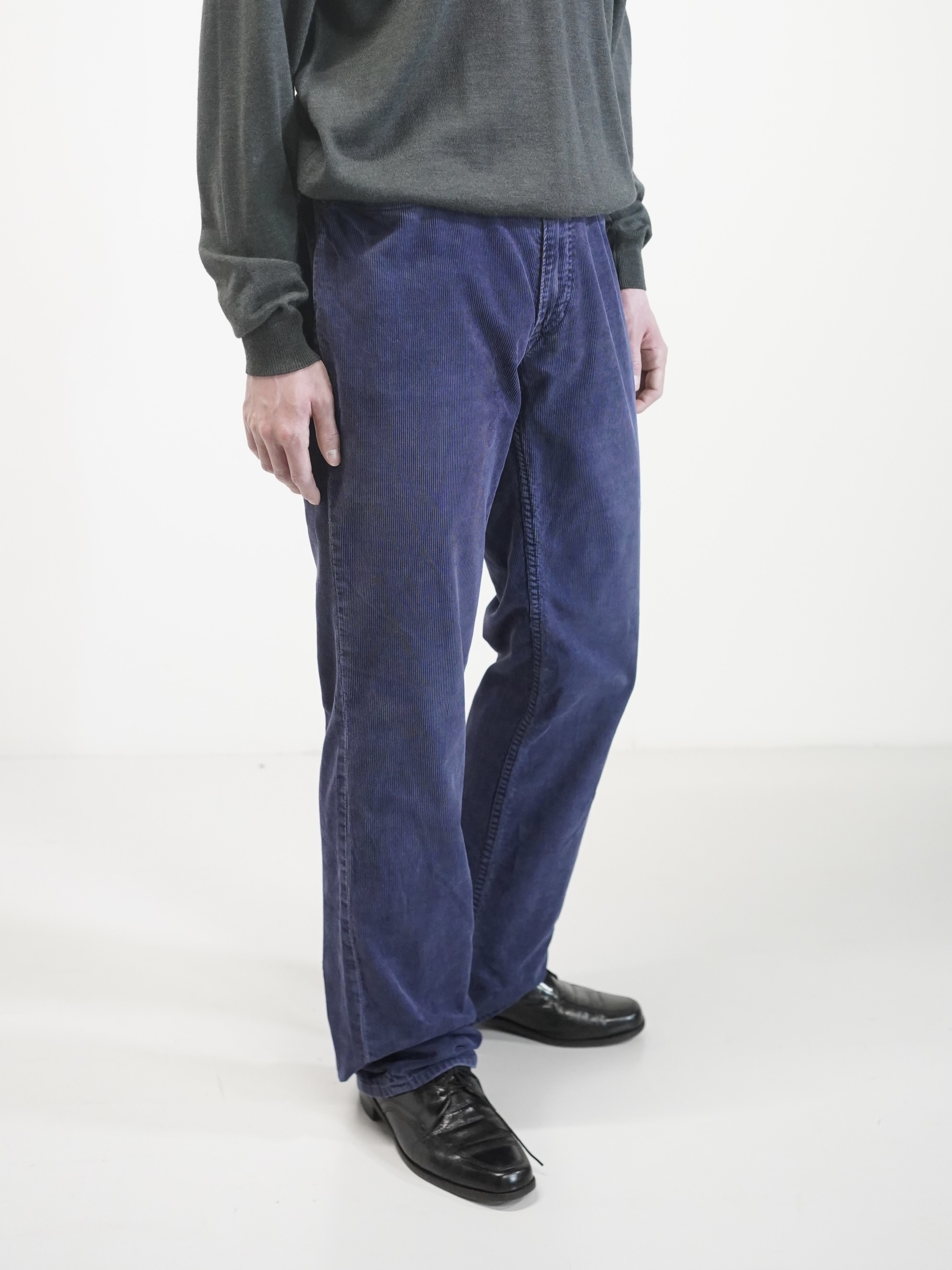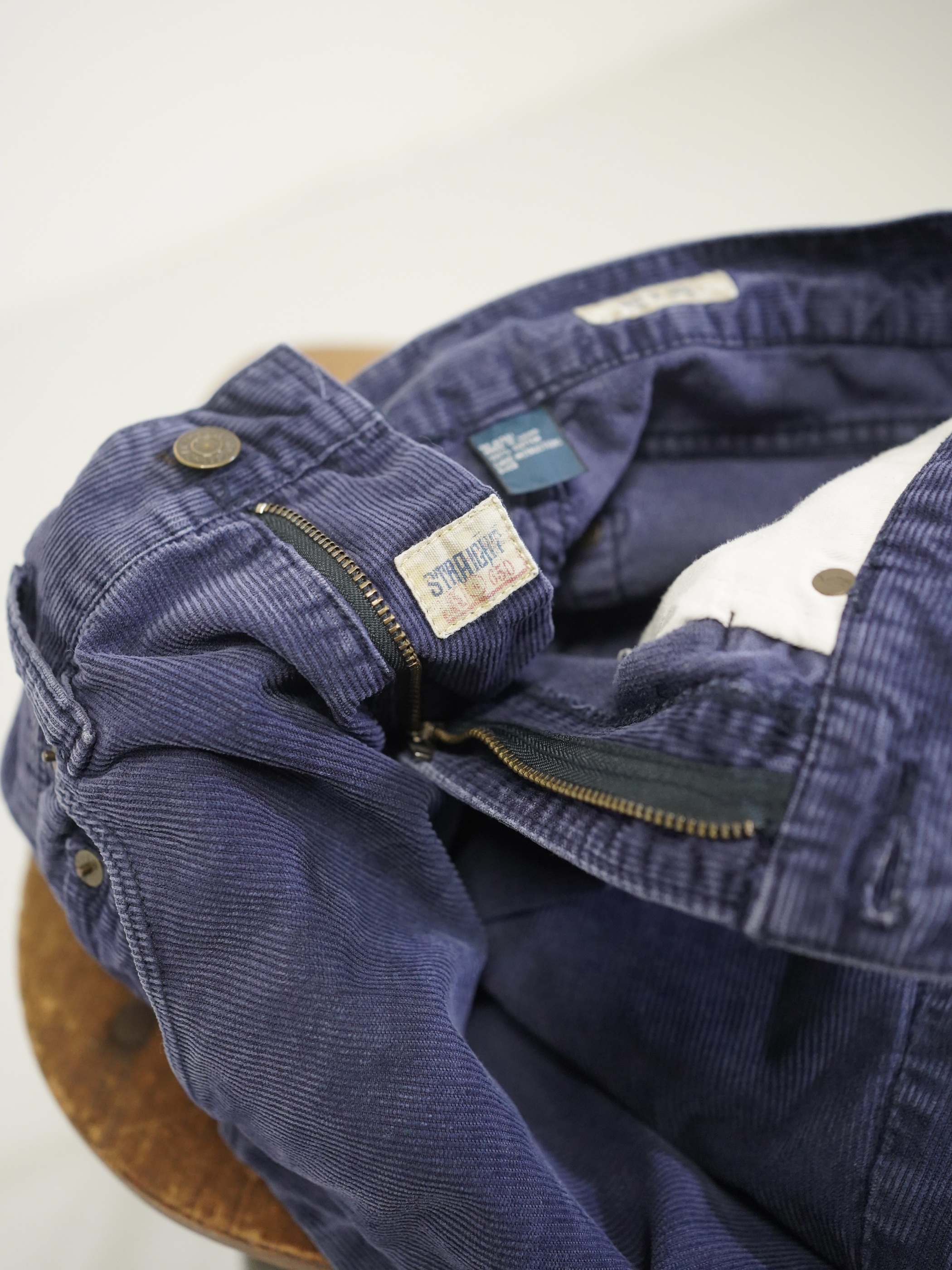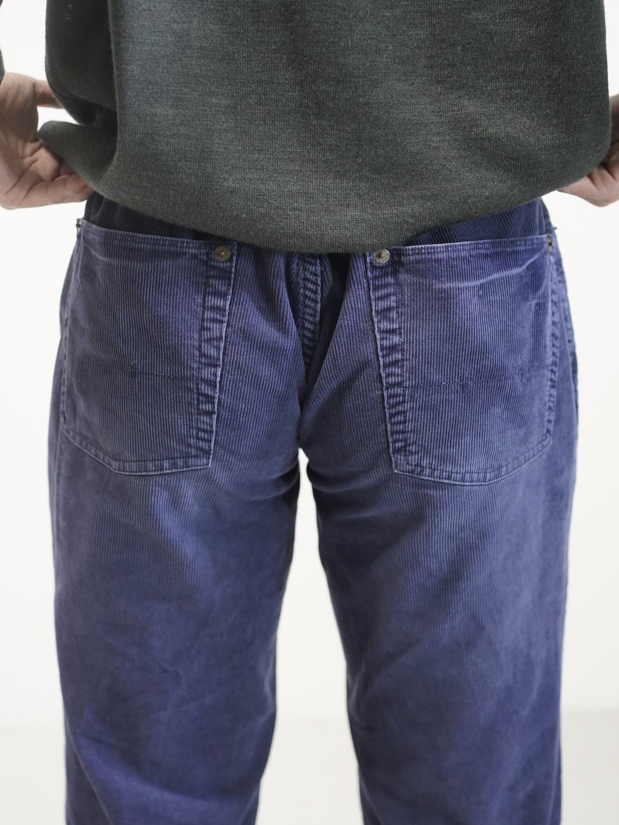 履き込まれたブルーの細畝コーデュロイ。