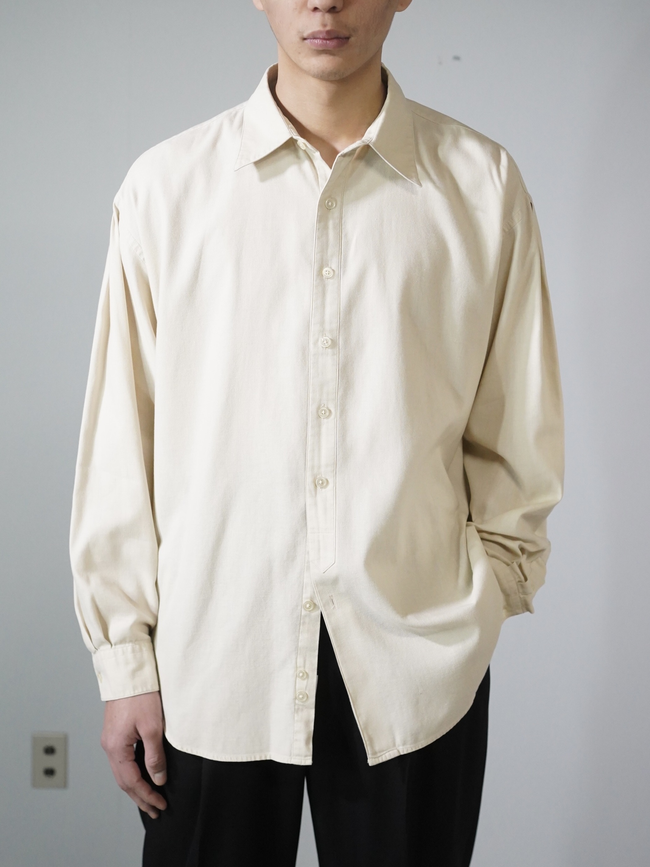 ・1990's PERRY ELLIS imported fabric cotton classic front shirt / Made in U.S.A