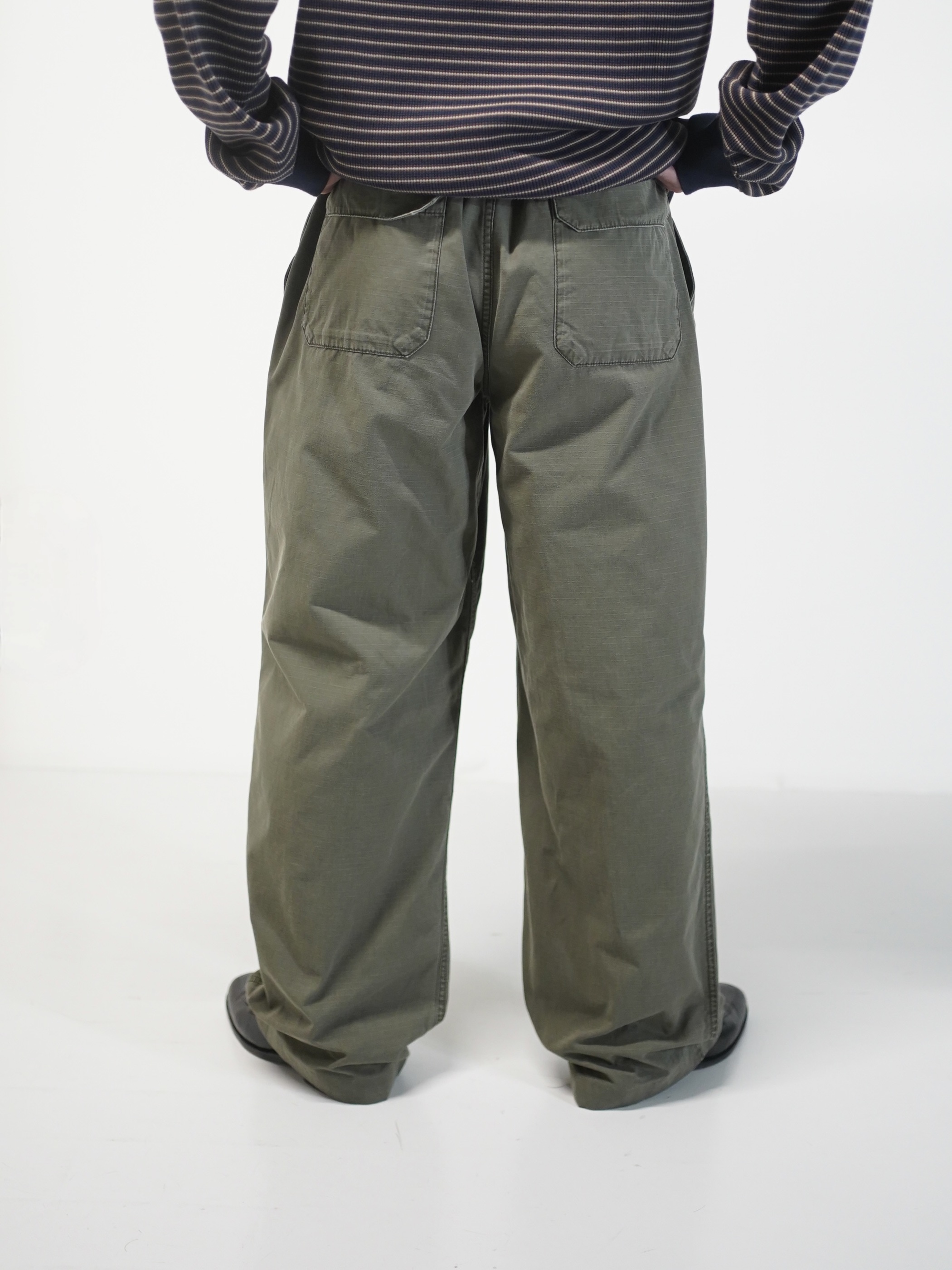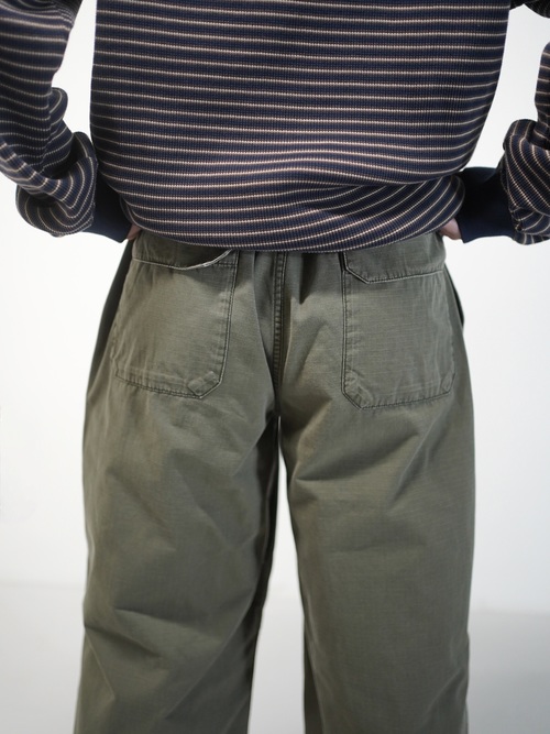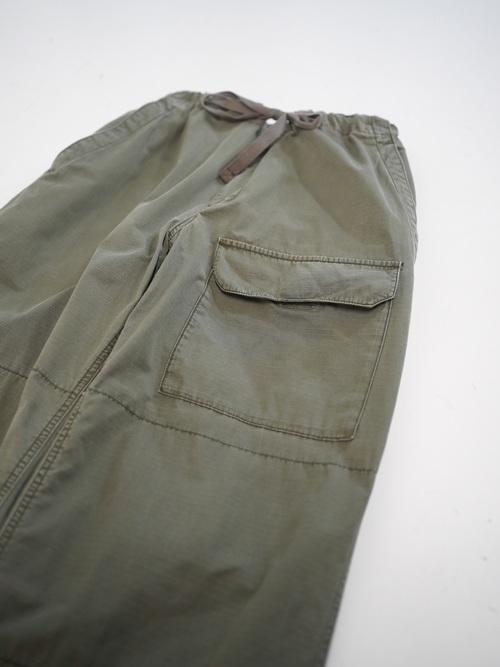 軽やかな生地にワイドシルエットで現代に馴染むミリタリーモチーフ。
