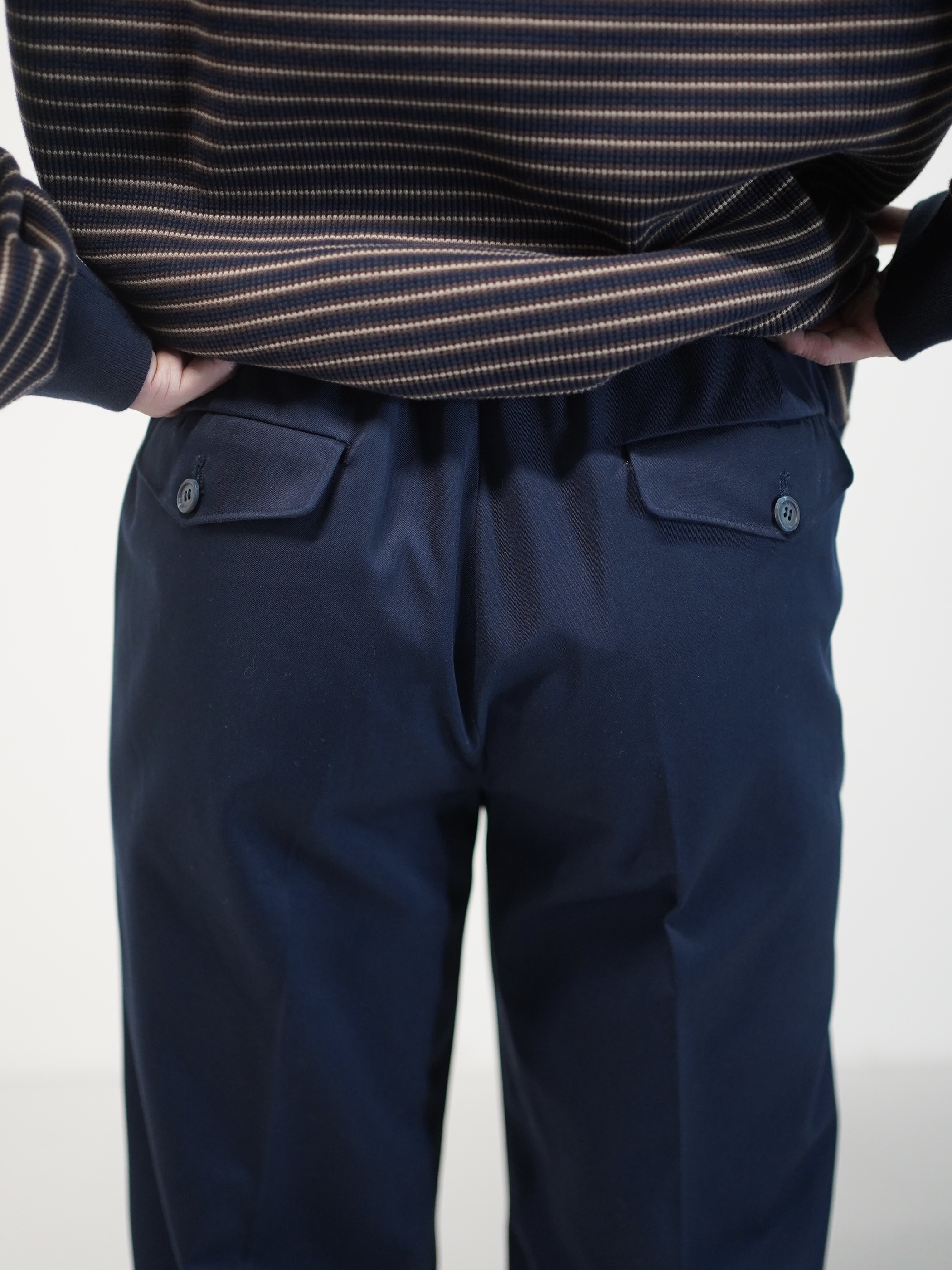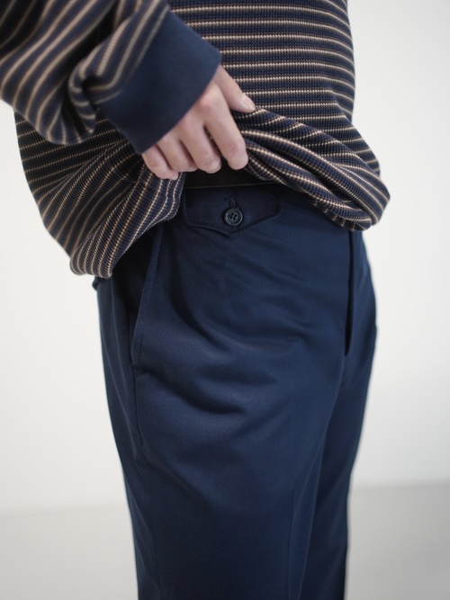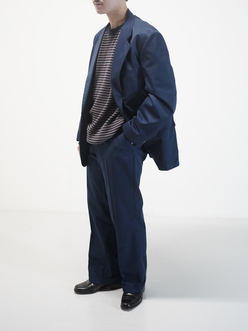 長時間の移動でも崩れにくい生地感であり、着用していくことでエイジングも期待できる生地。