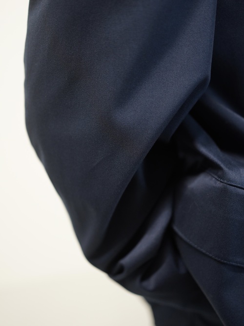 コットンの落ち着いた表情に、ポリエステルの軽さと復元性。
