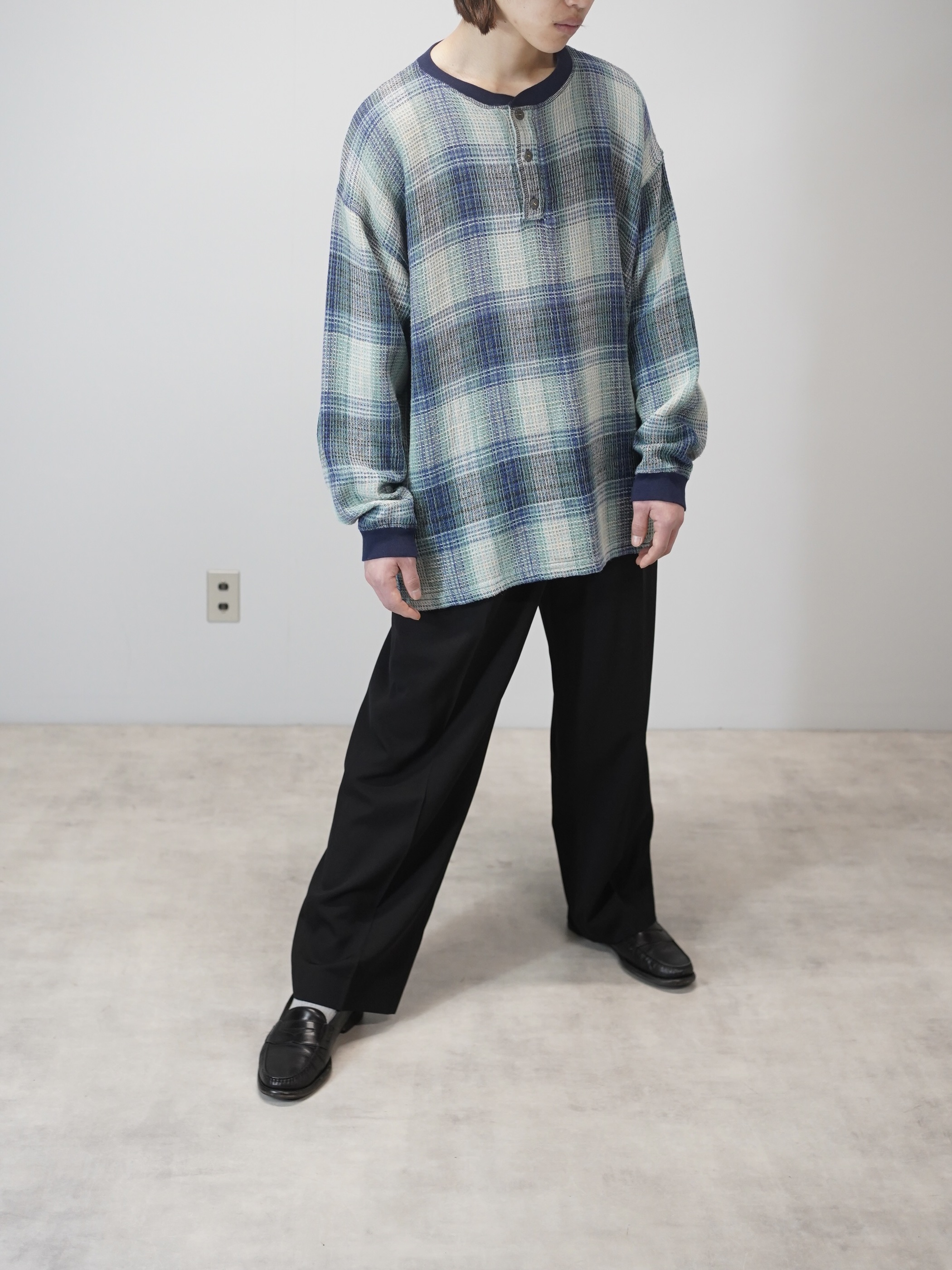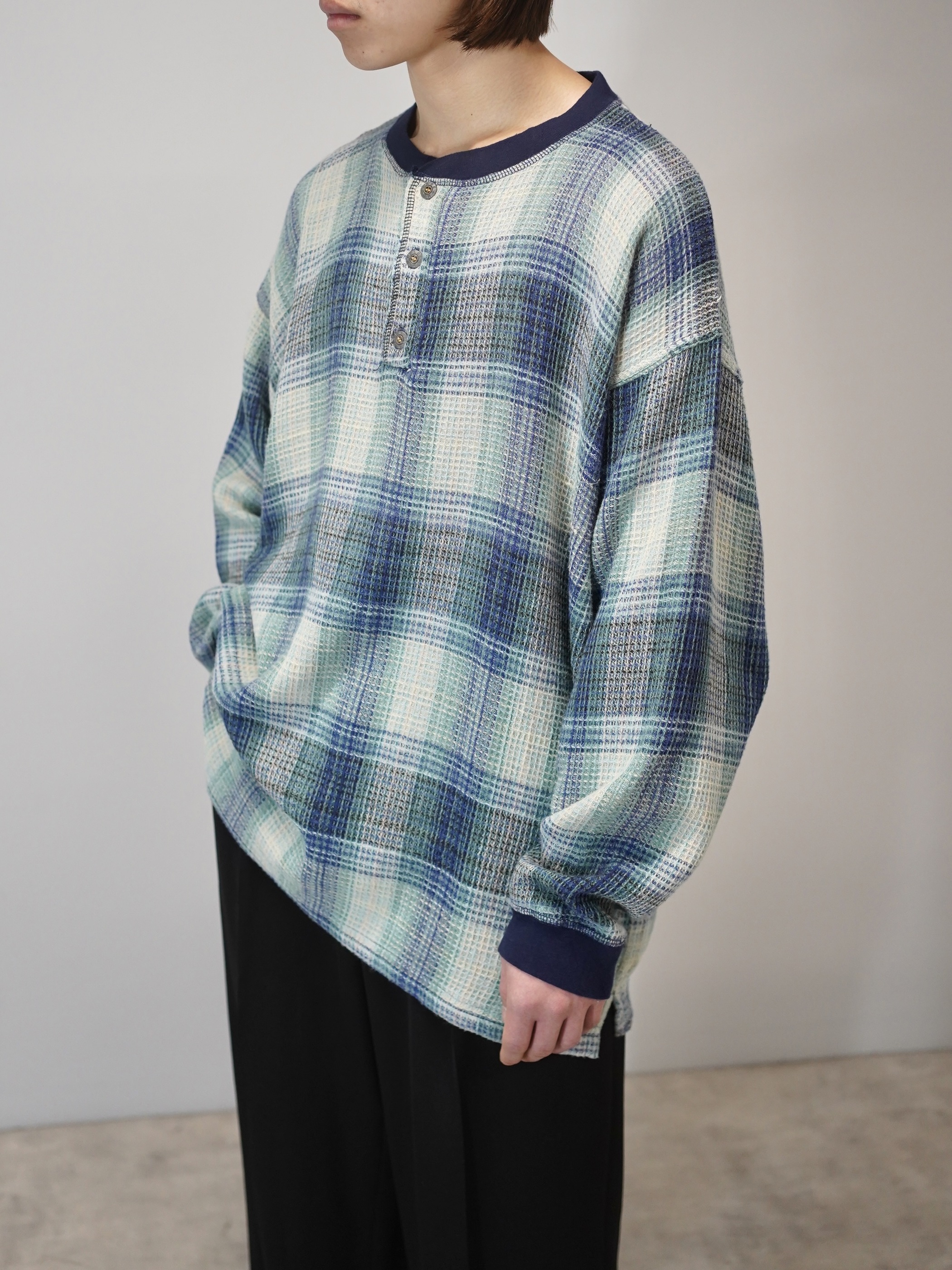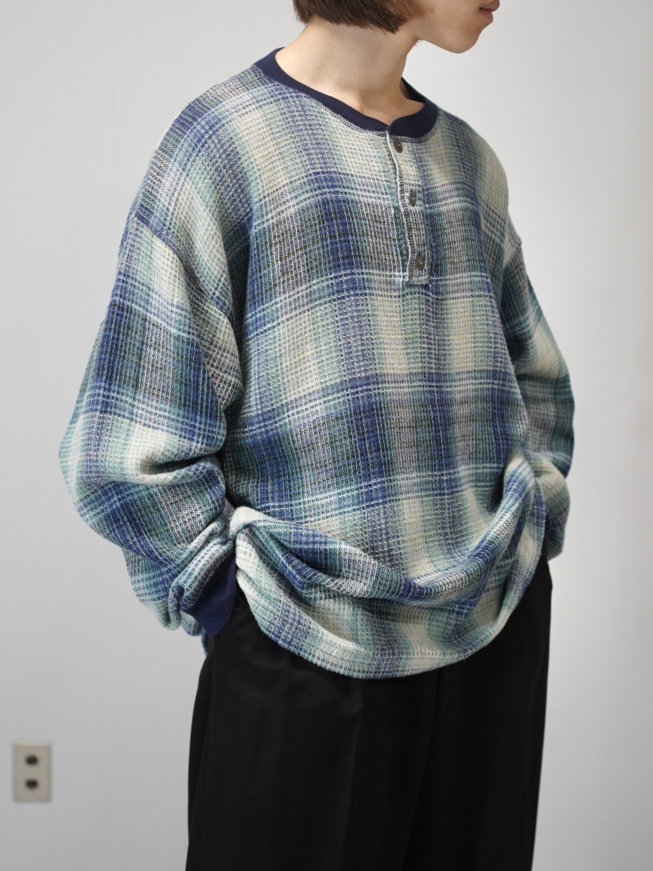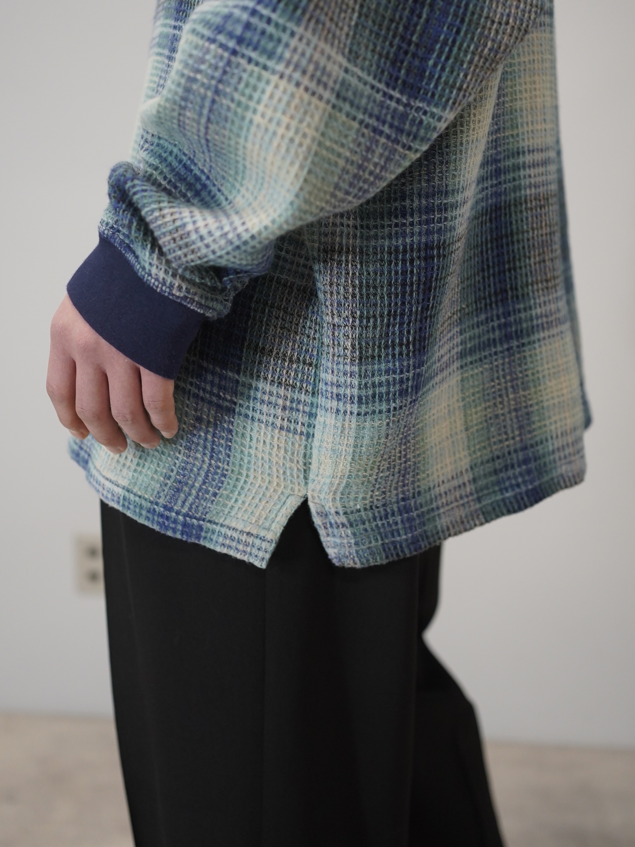 プルオーバーでオンブレチェックというのも新鮮(シャツやシェルトップスが多い印象)ですし、この手の生地でネパール製となるとエスニック嗜好に偏りそうなところ、そういう訳でもない。カジュアル映えする良い落とし所です。
