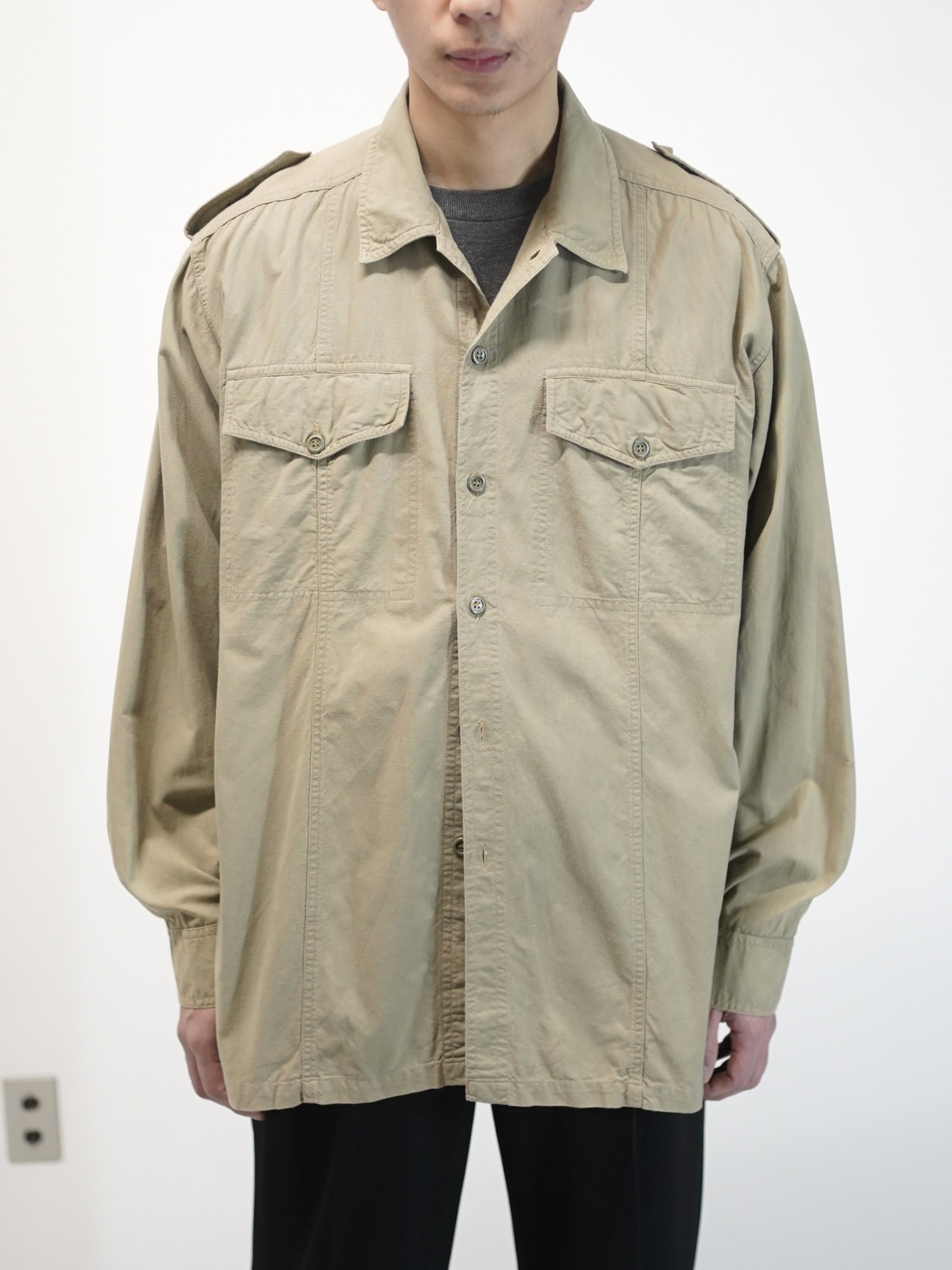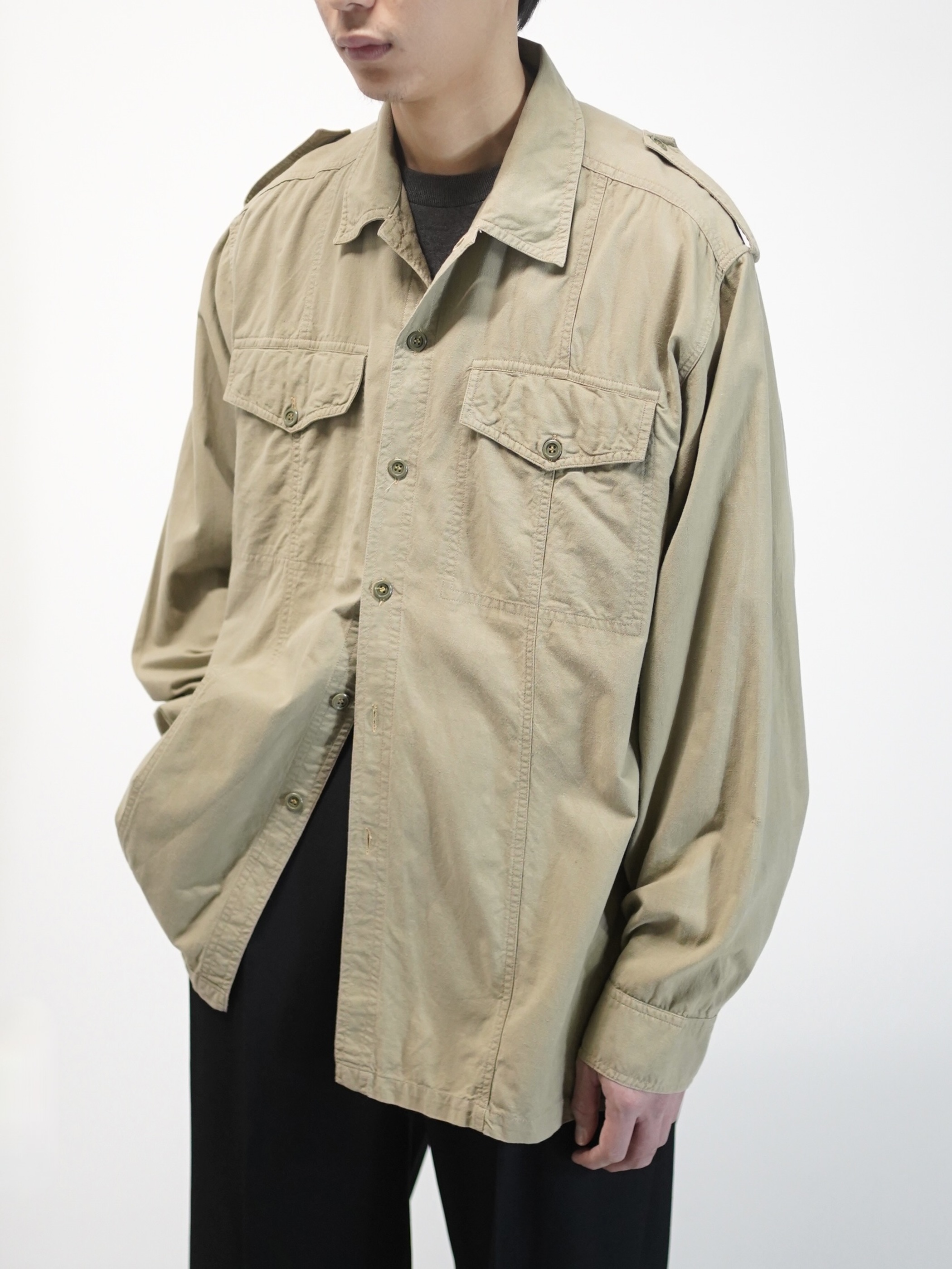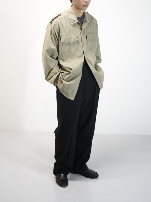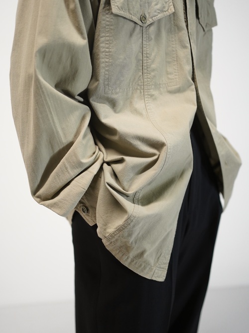 本来はサファリ由来のディテールを残しながらも装うというより、纏う感覚に近いシャツ。