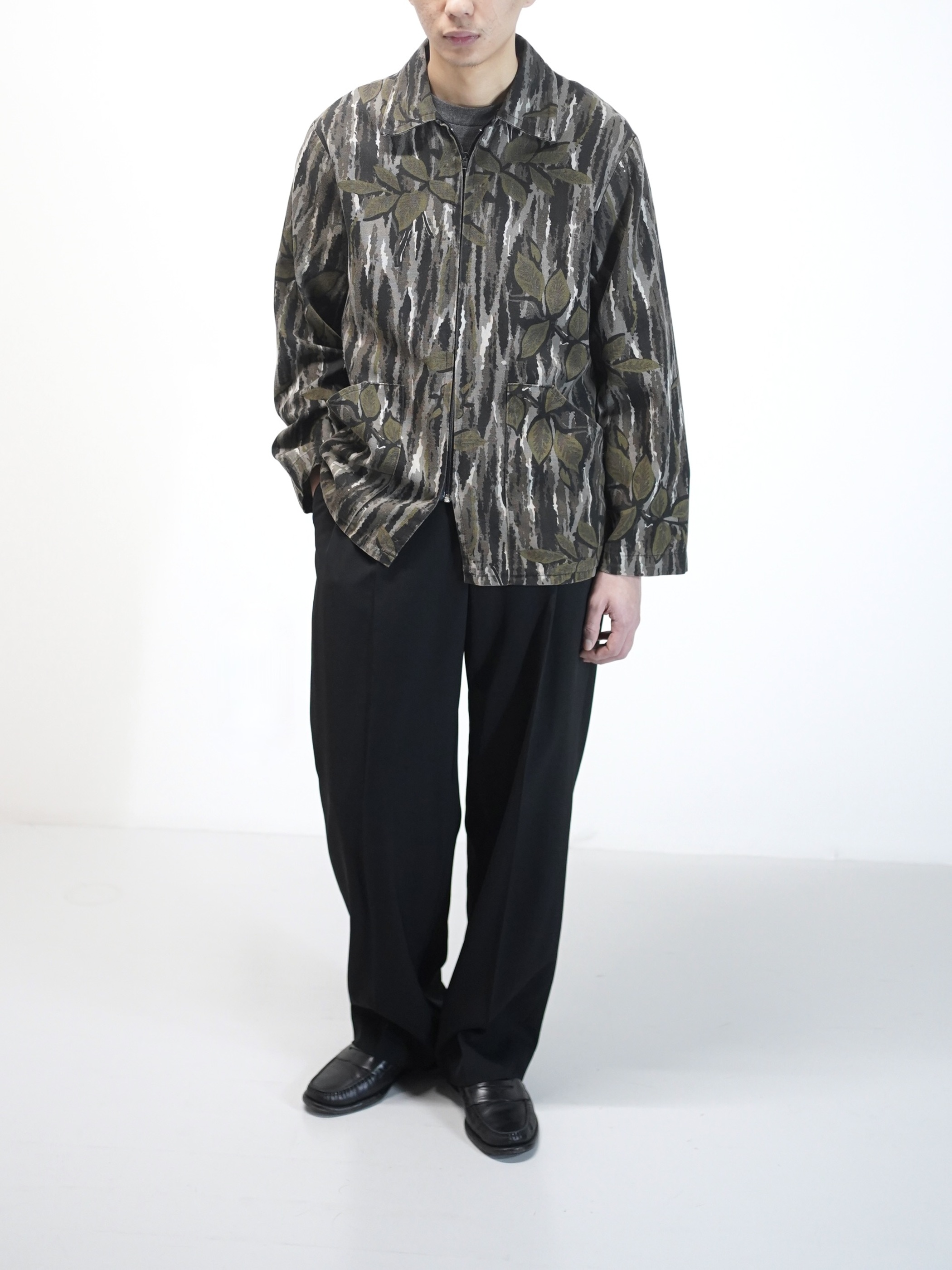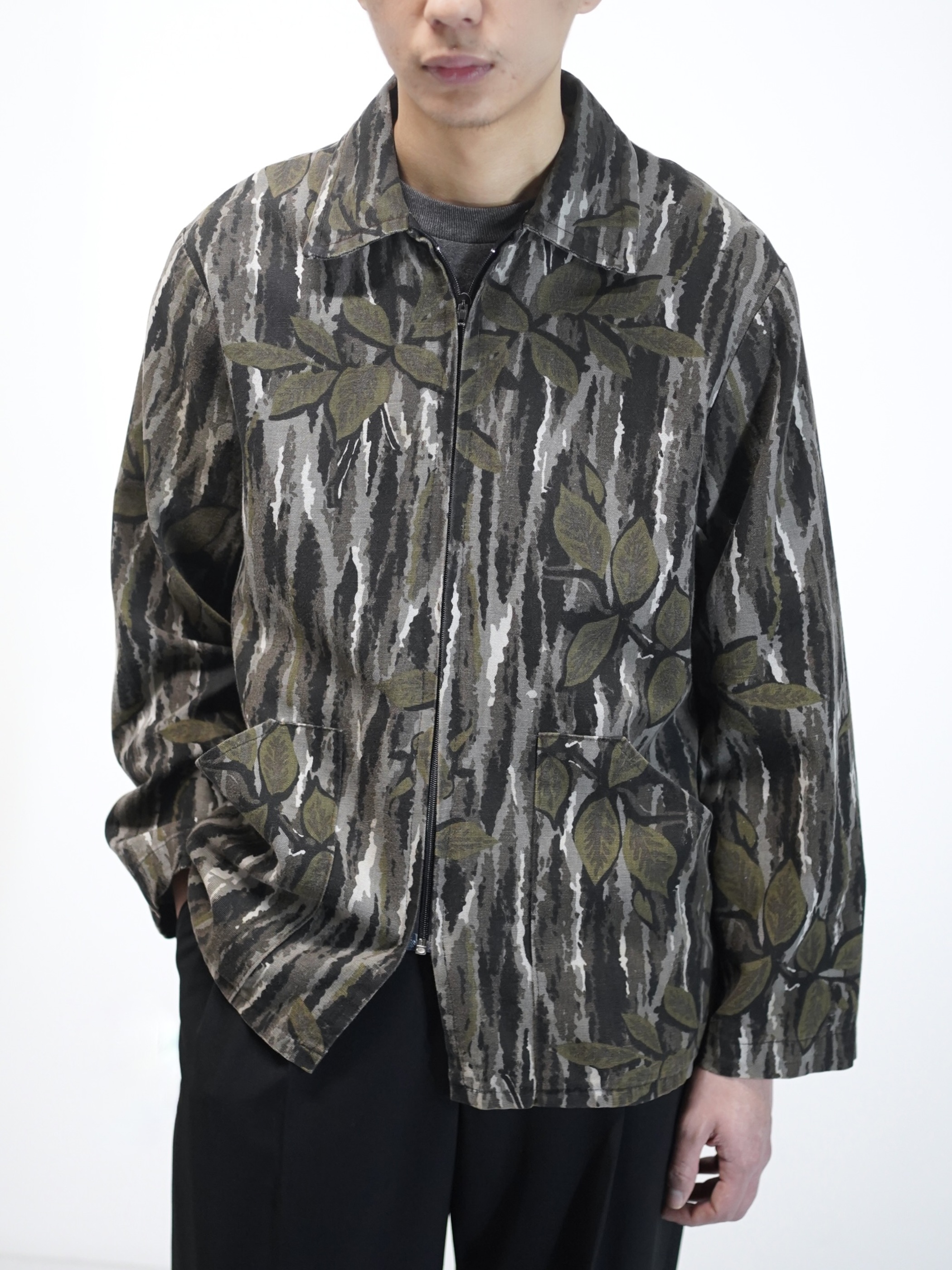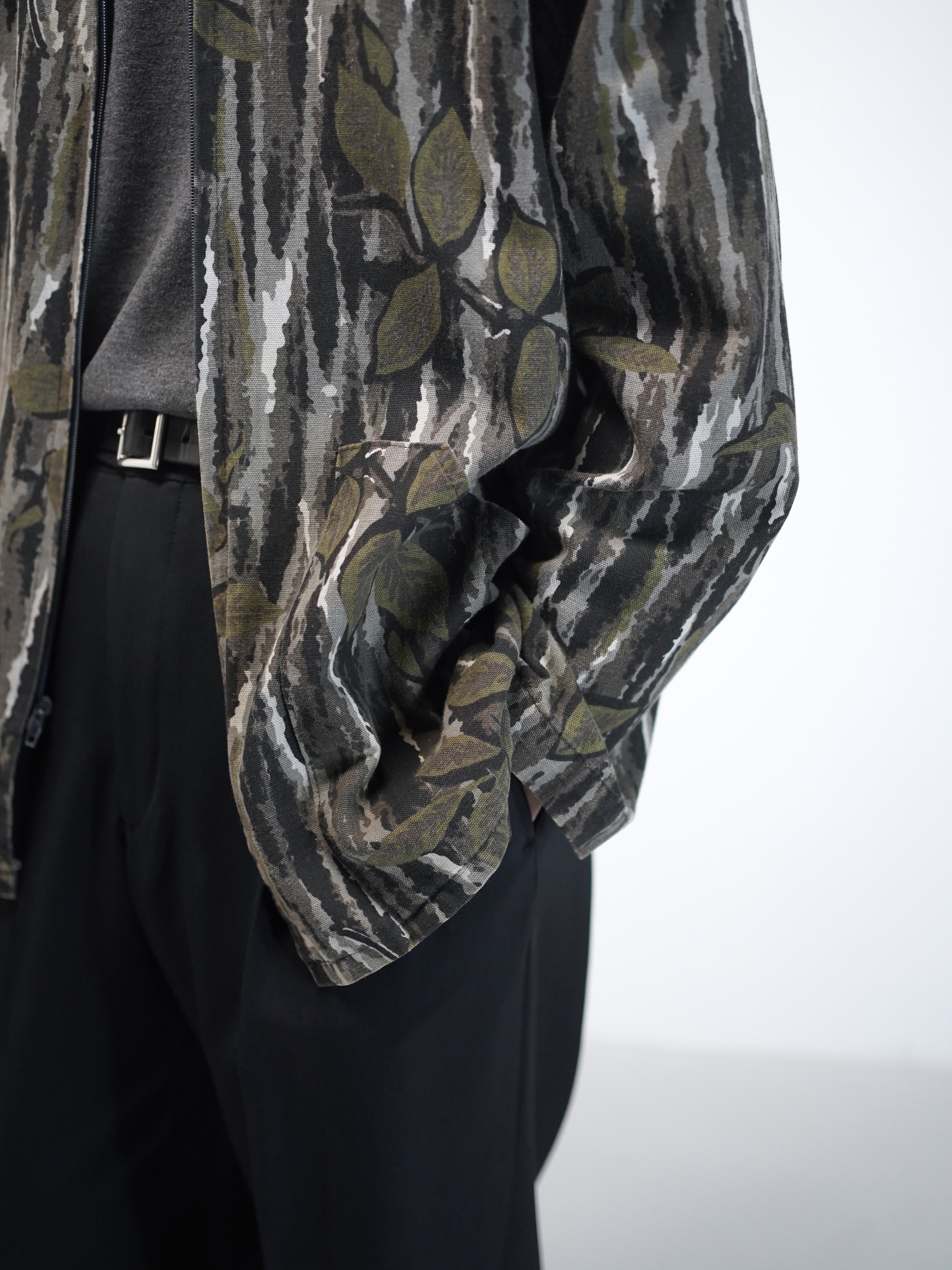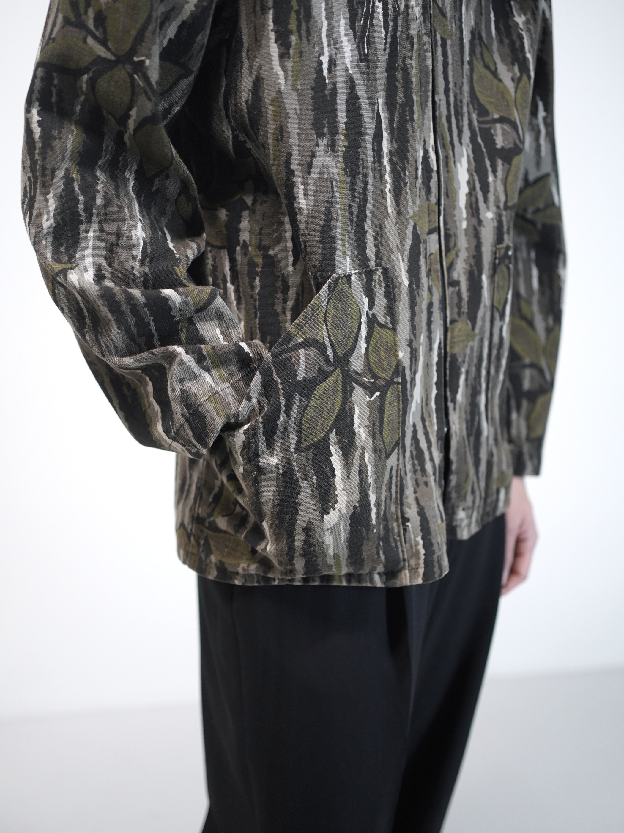 カモフラージュを思わせる配色でありながら、軍物とは異なるどこか抽象的なパターン。