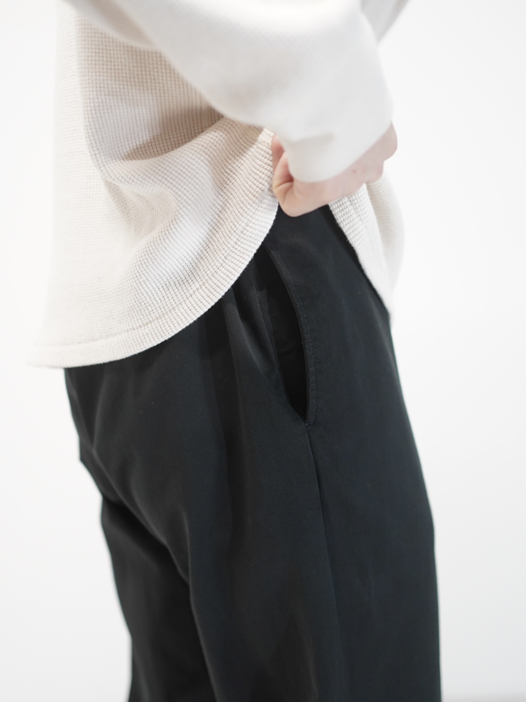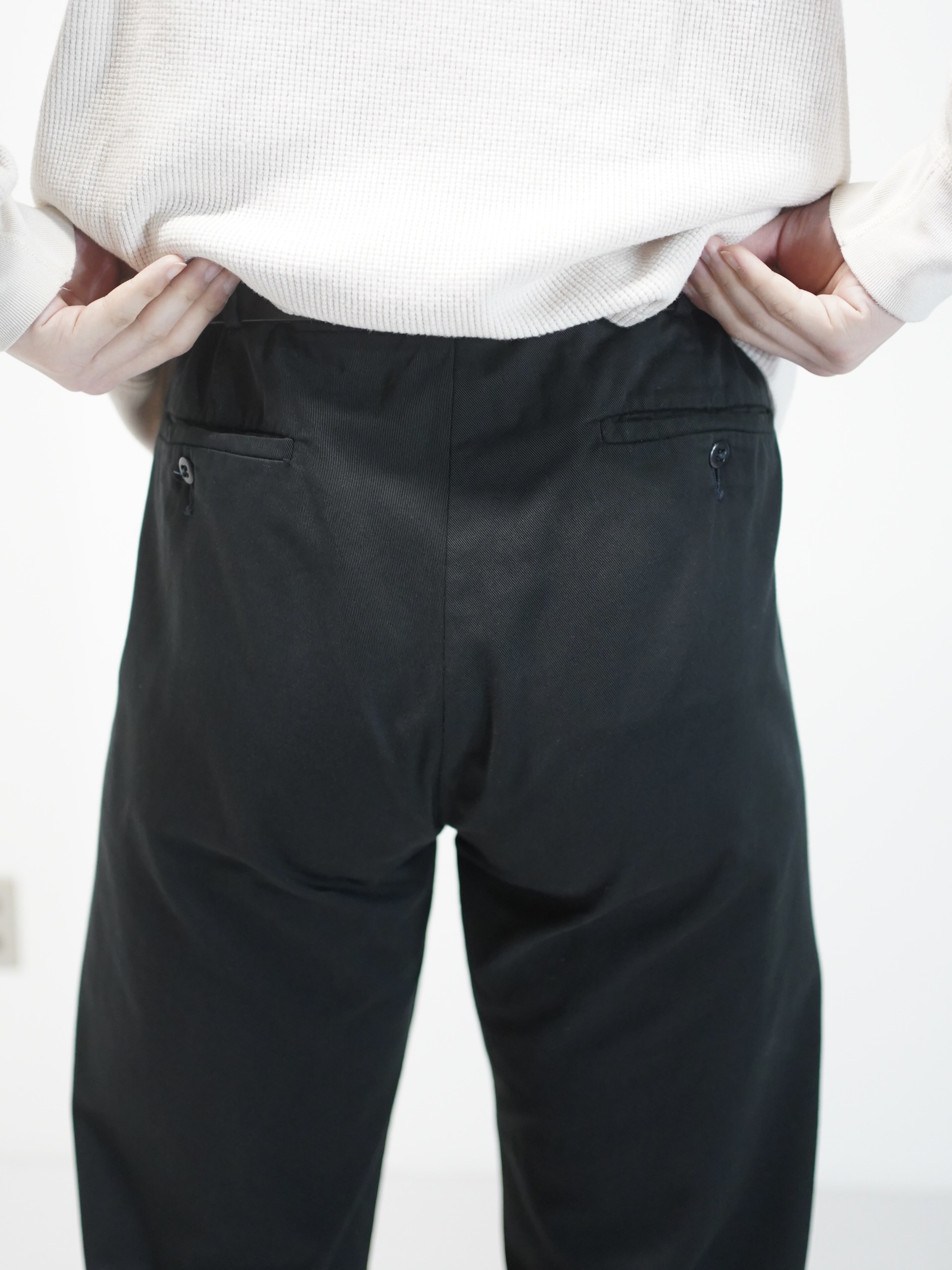 40’s〜50’sのアメリカンドレストラウザーズや、英国由来のテーラードトラウザーズの型を、コットン素材で踏襲した一本。