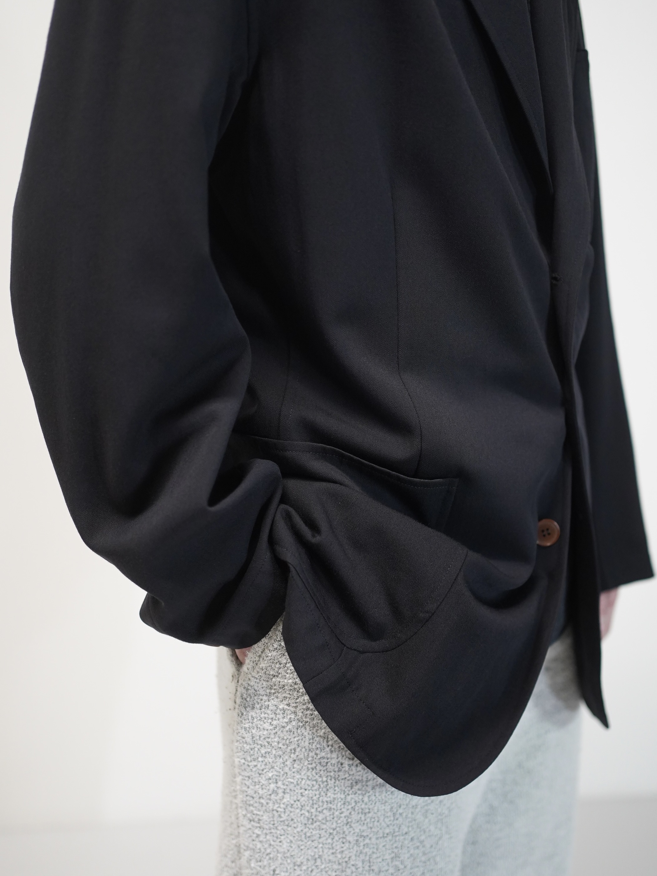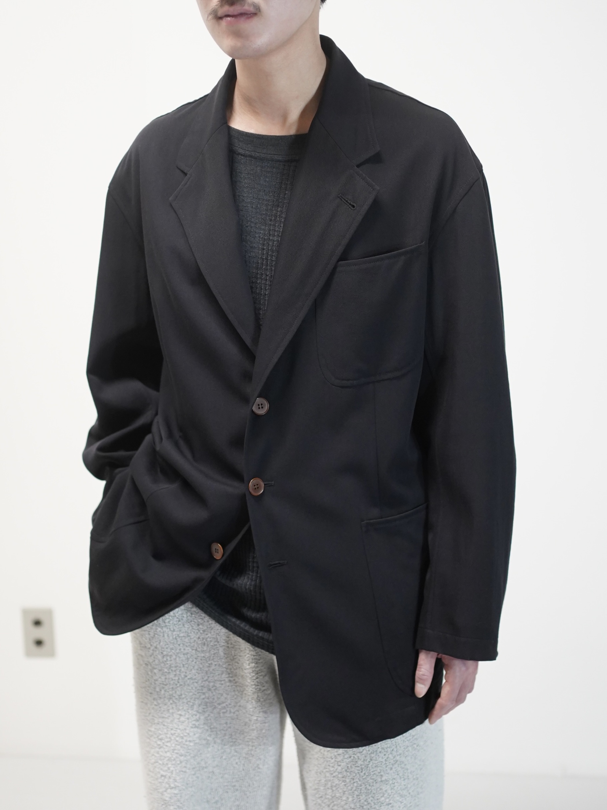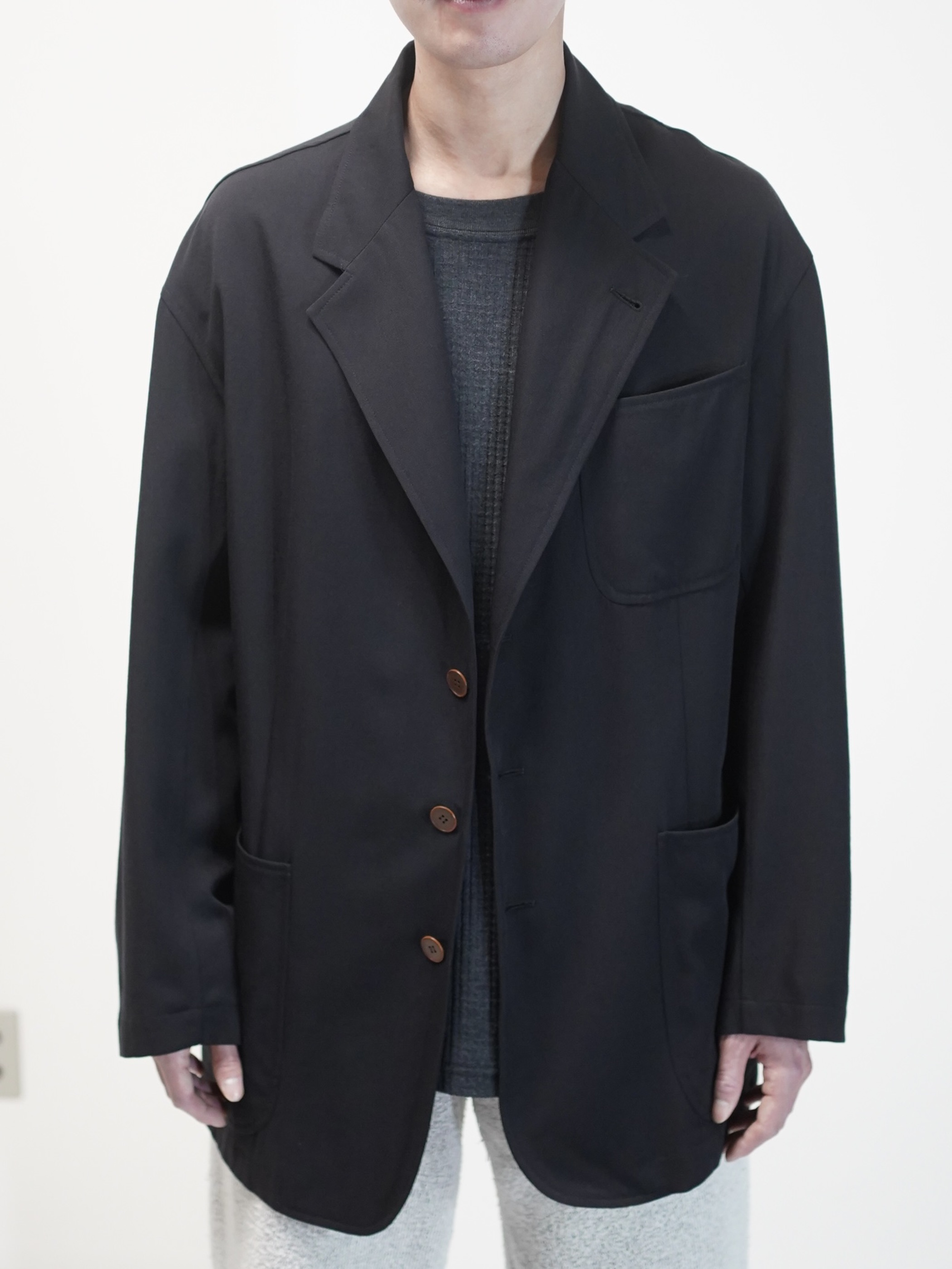 テーラードと名付けましたが、3B・パッチポケット・やや長めの着丈。