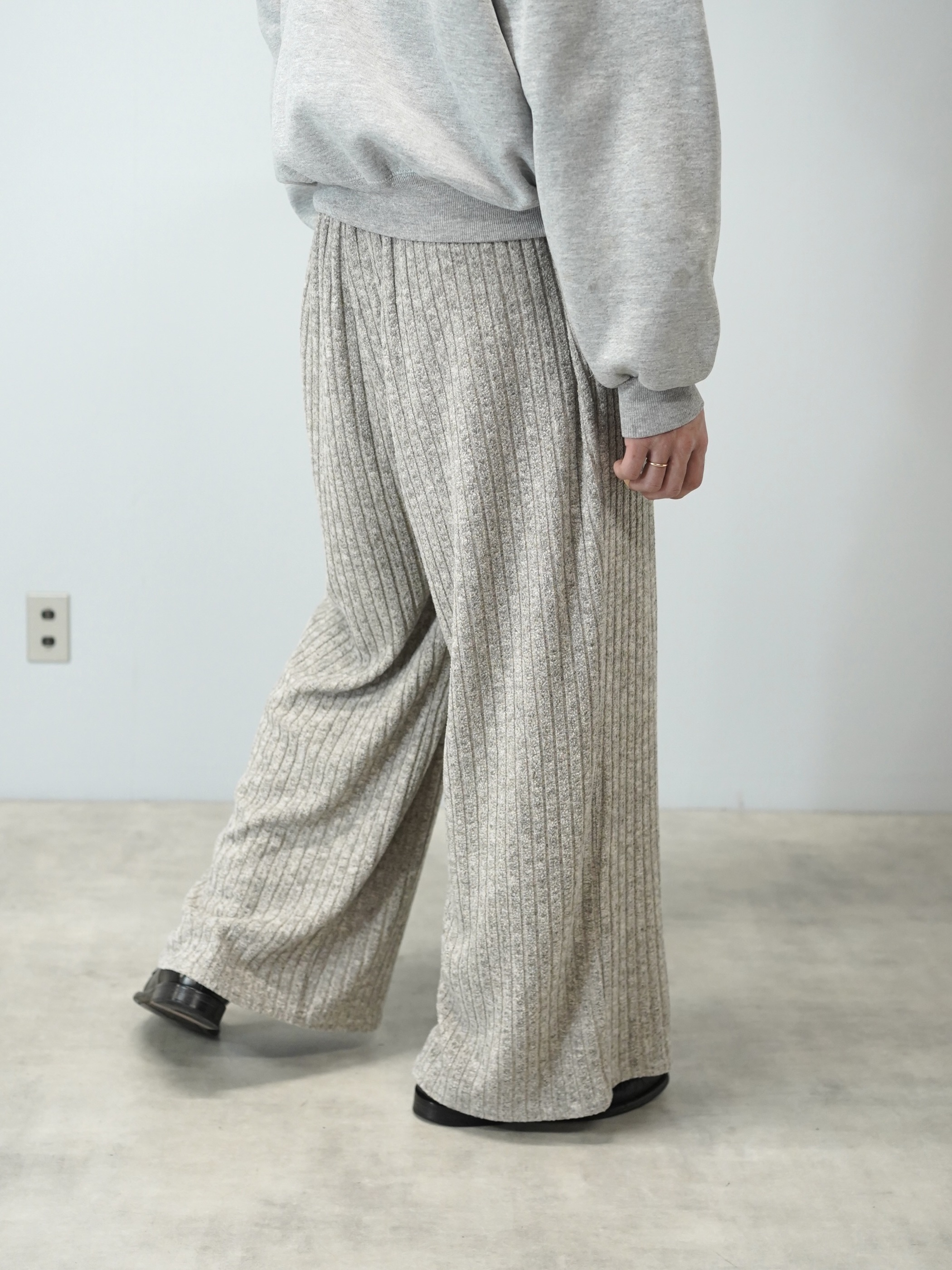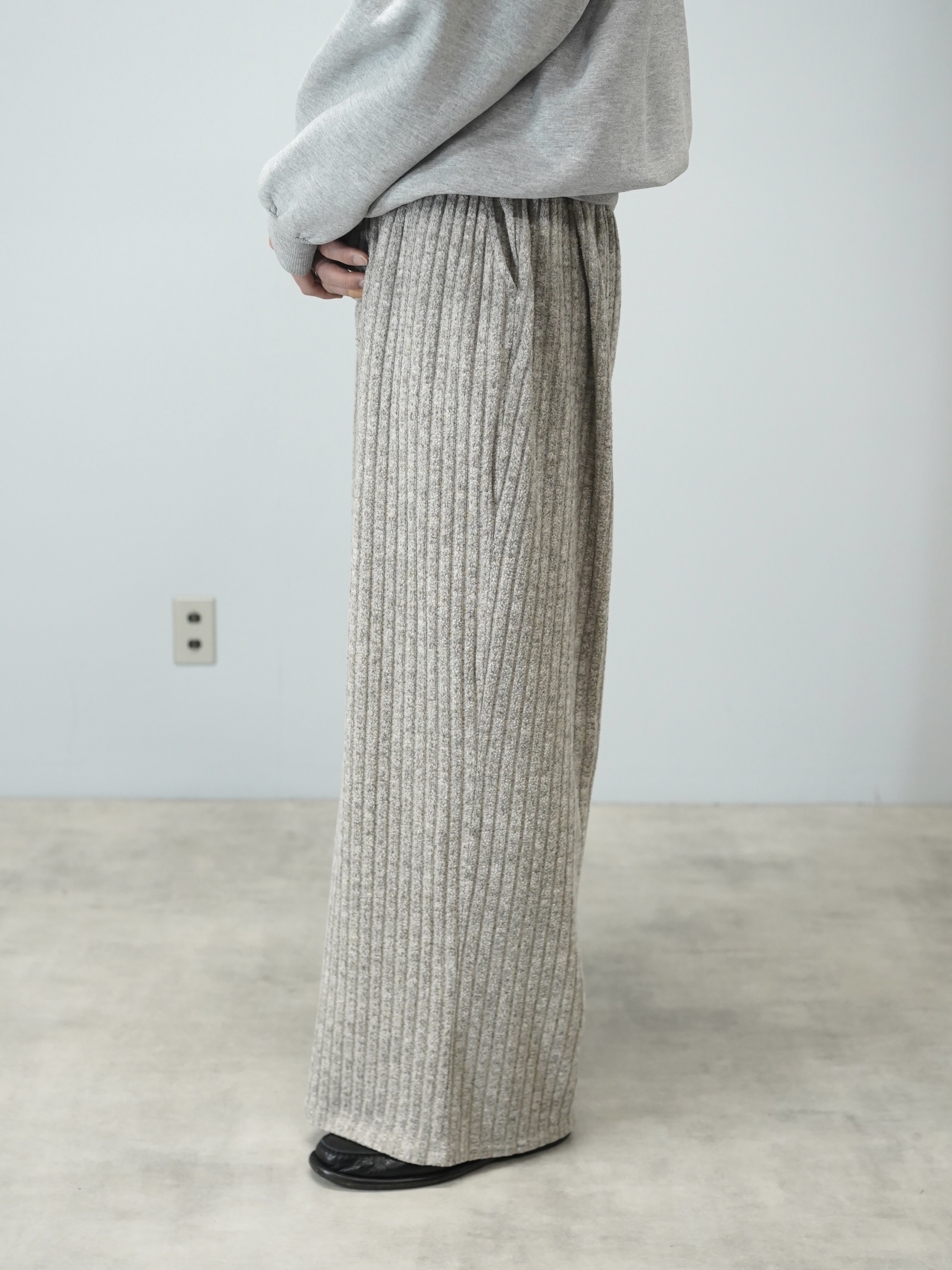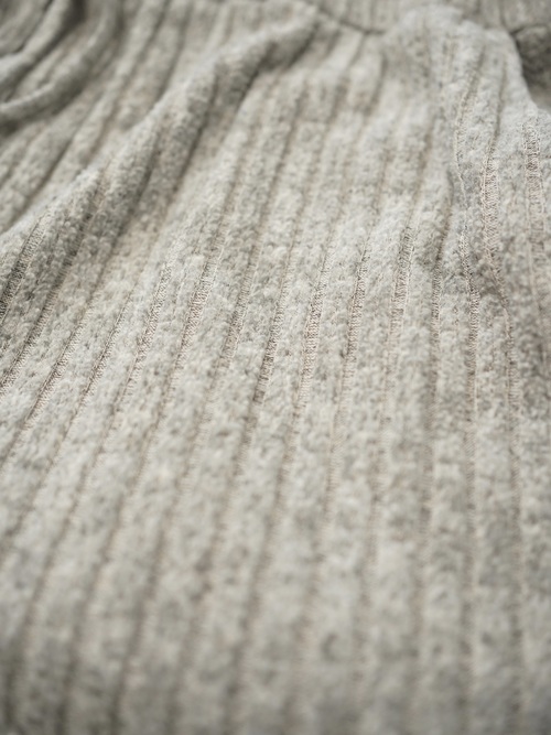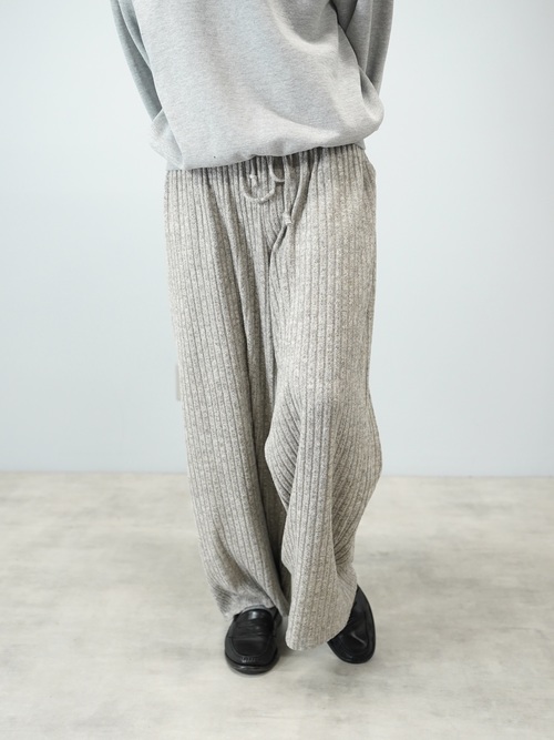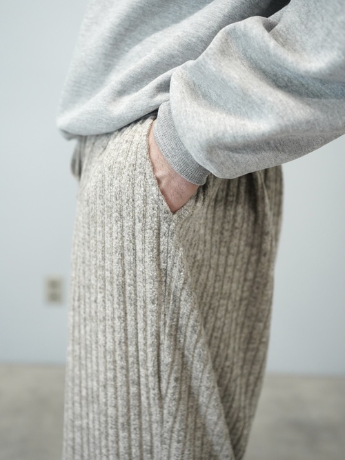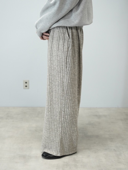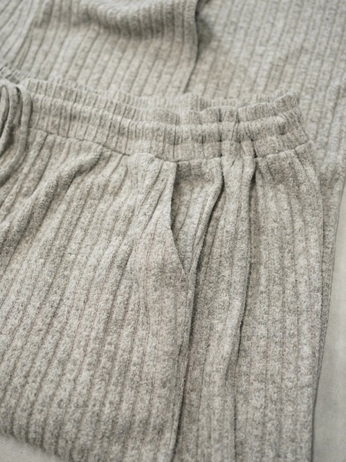 柔らかい色味のワイド・ニッティングパンツ。