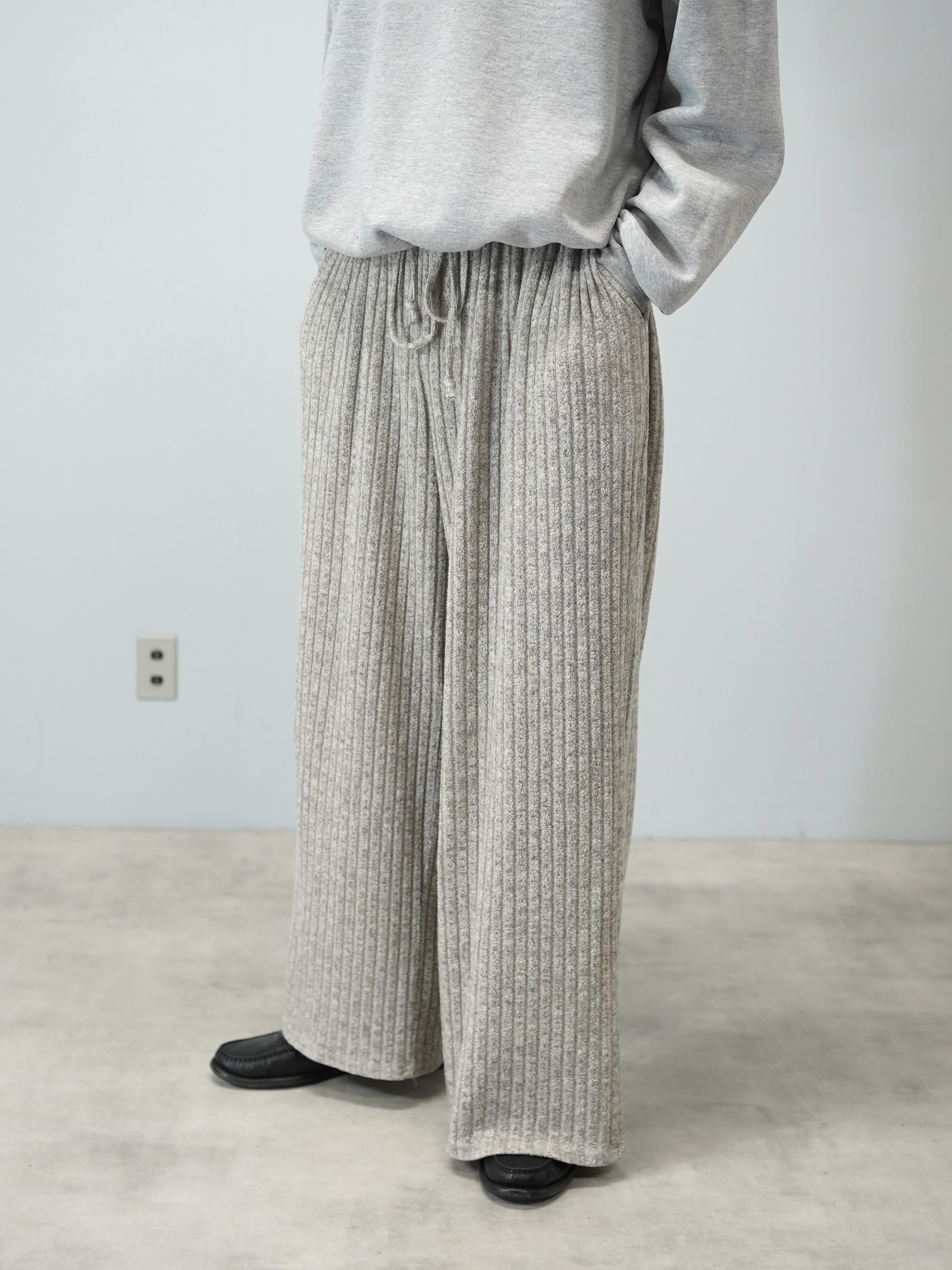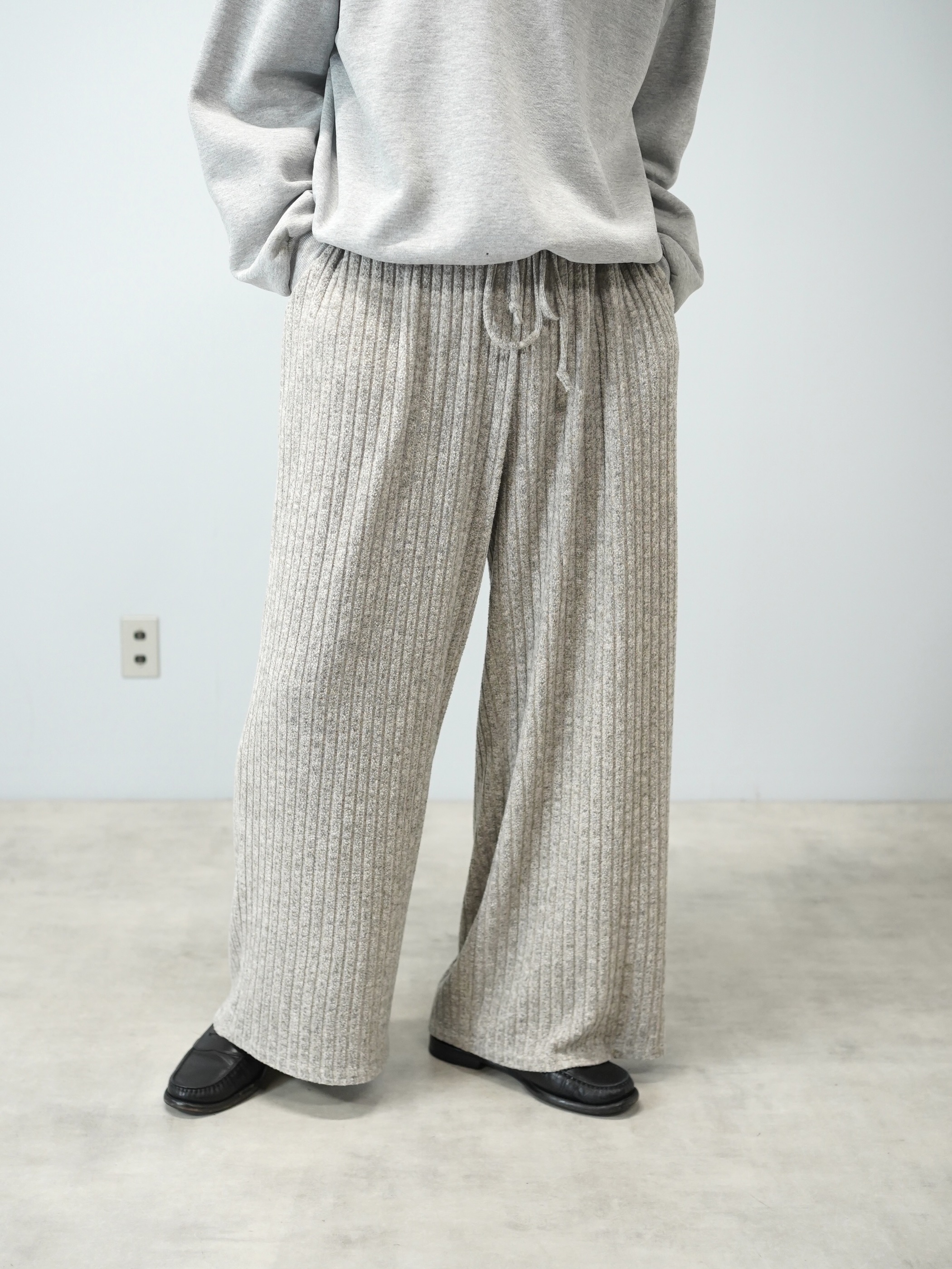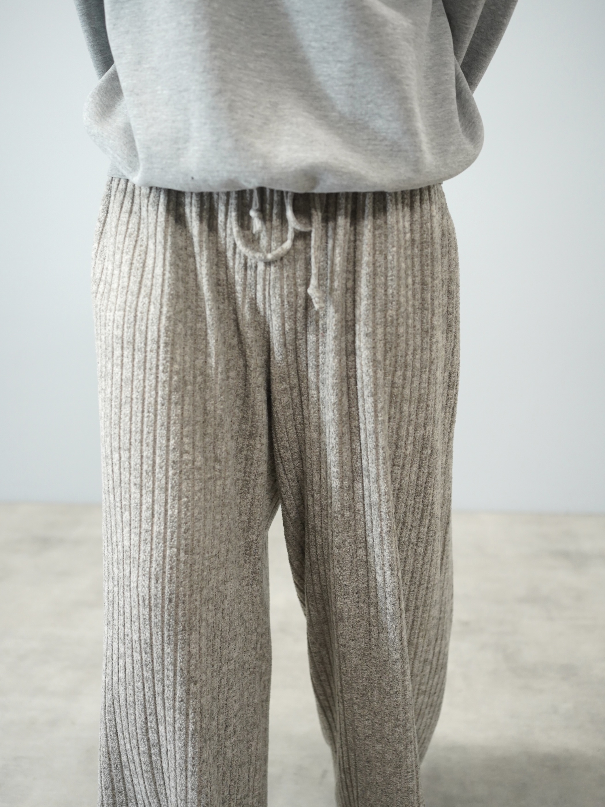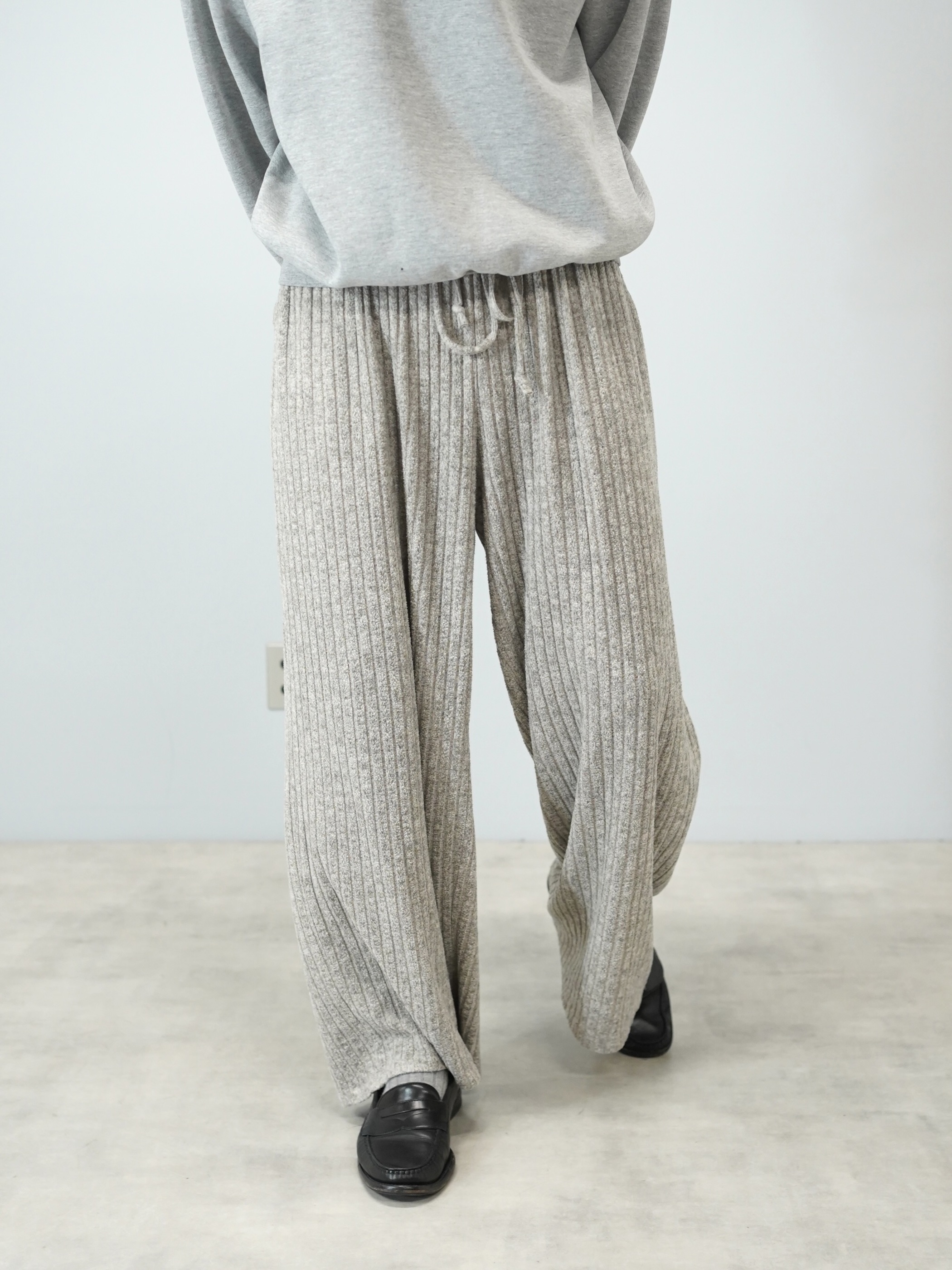 柔らかい色味のワイド・ニッティングパンツ。