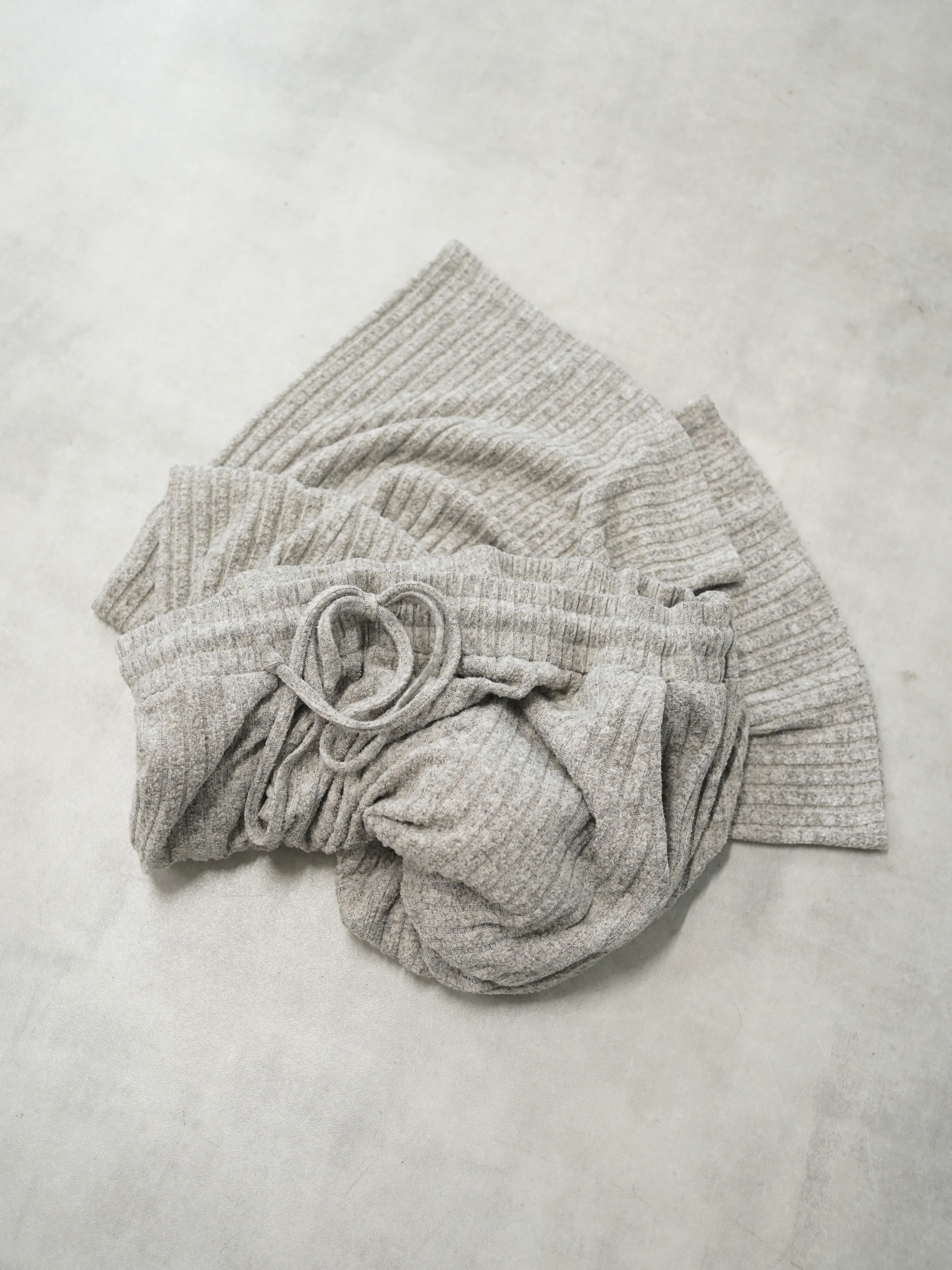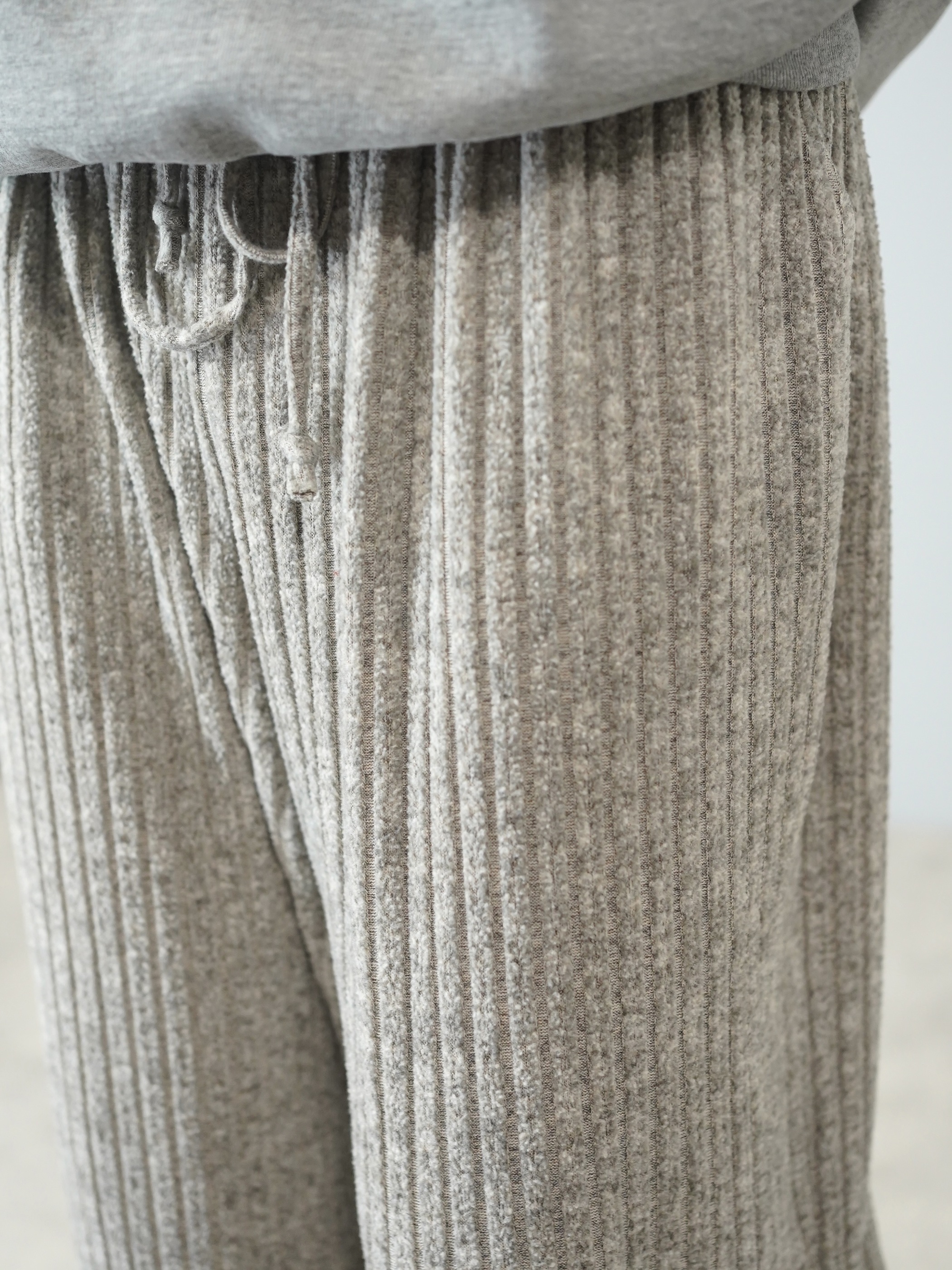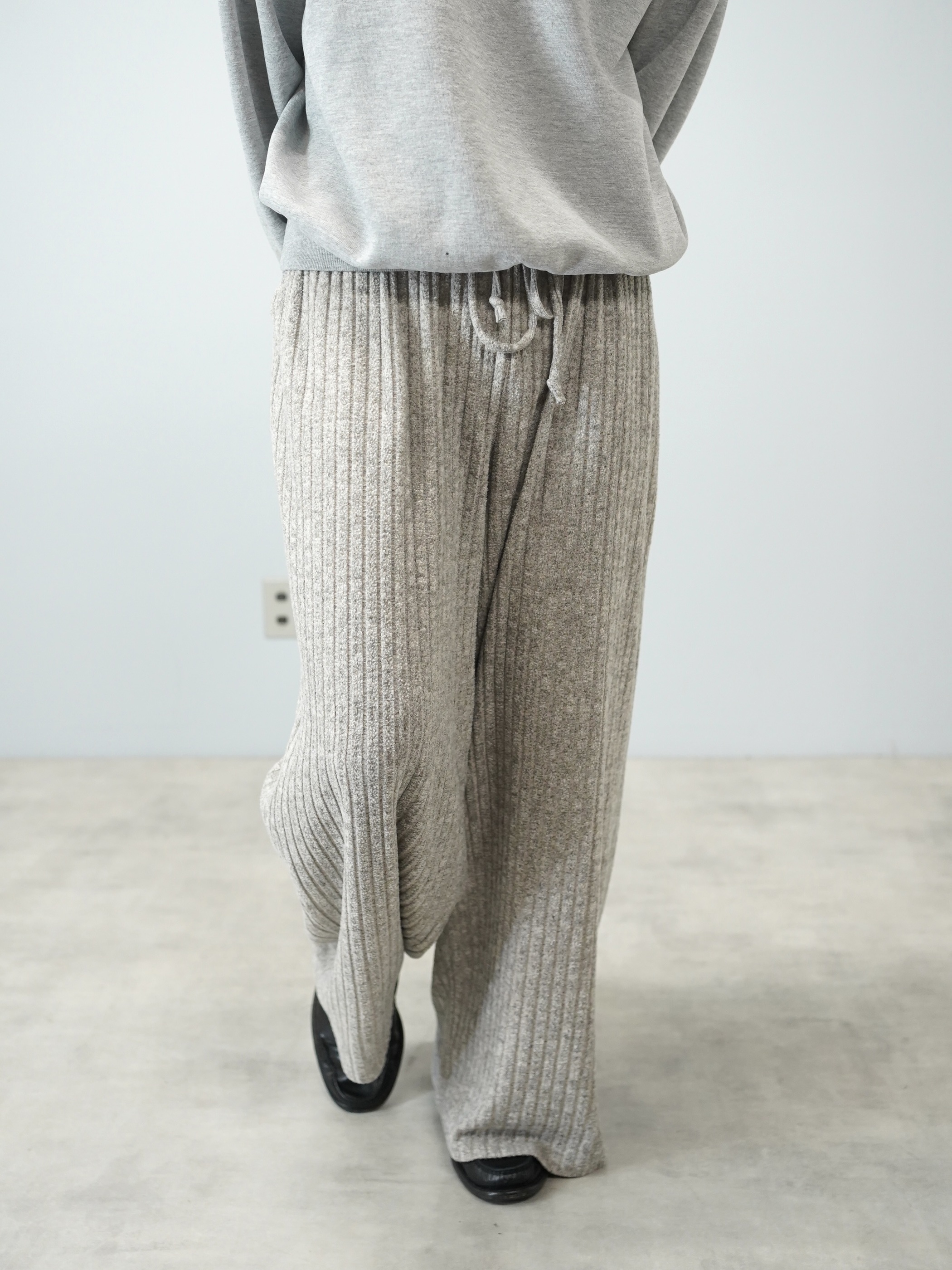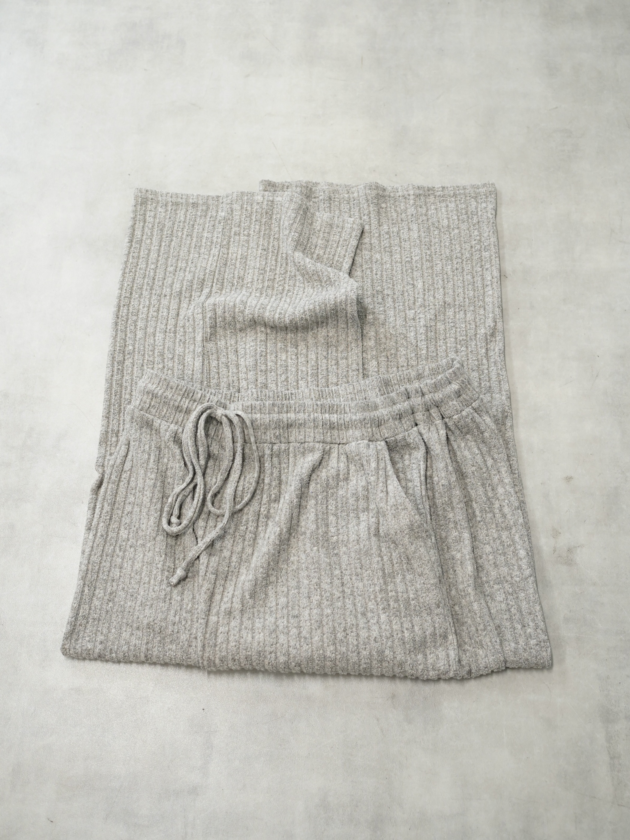 柔らかい色味のワイド・ニッティングパンツ。