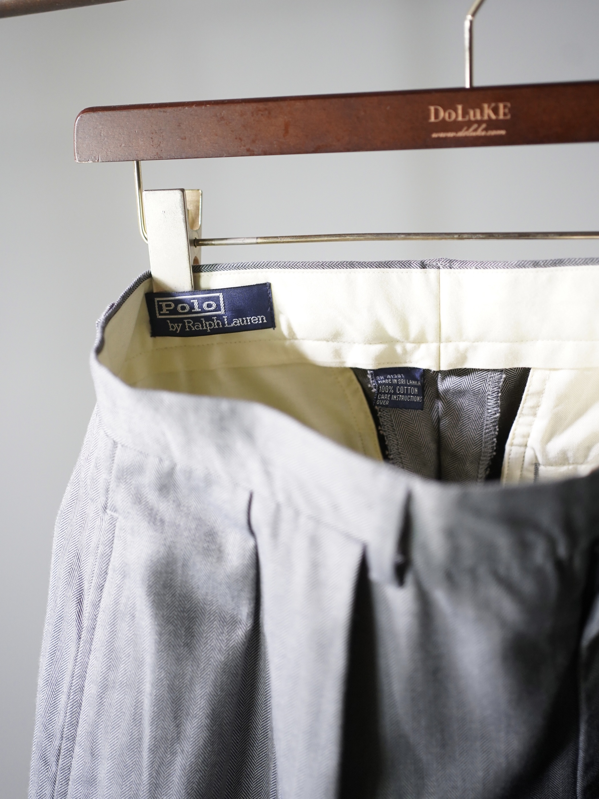 1990's Polo by Ralph Lauren 2-intuck herringbone cotton slacks