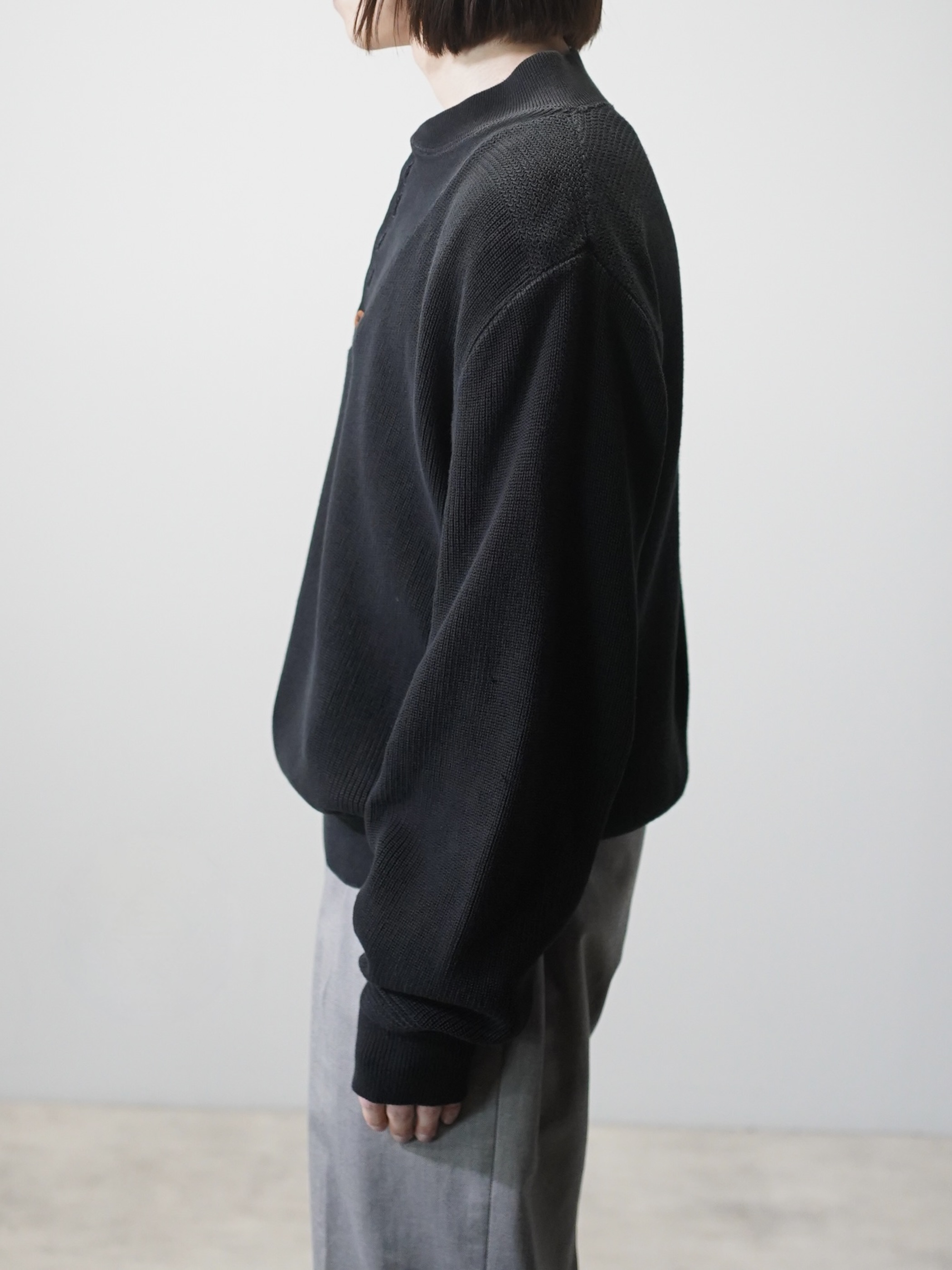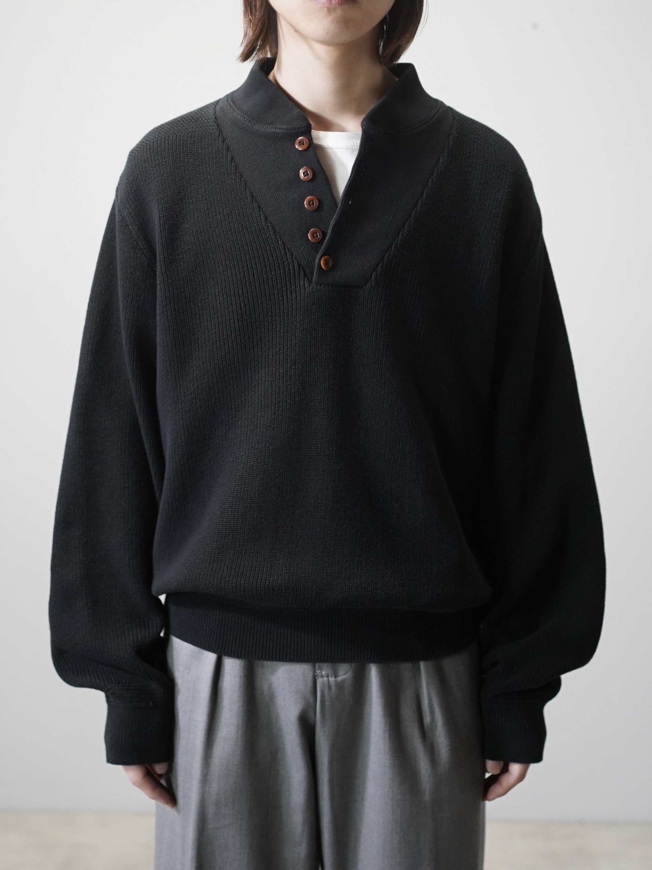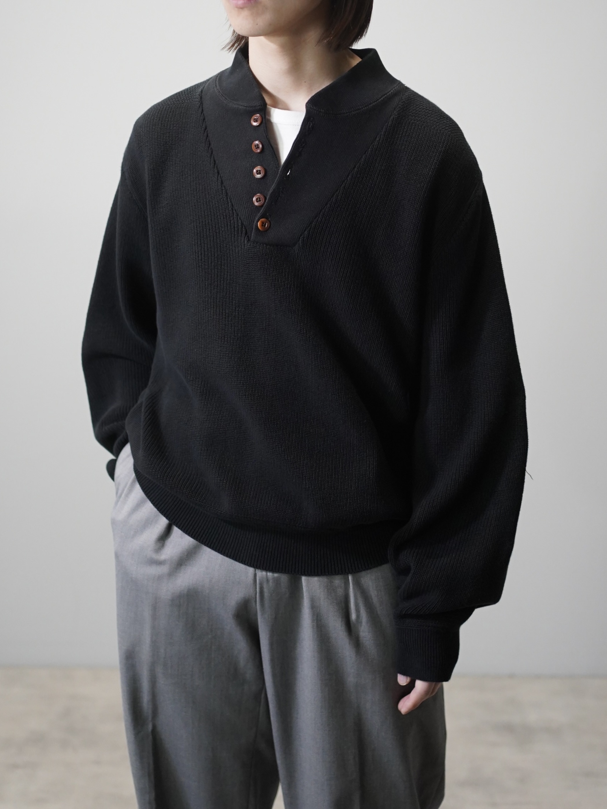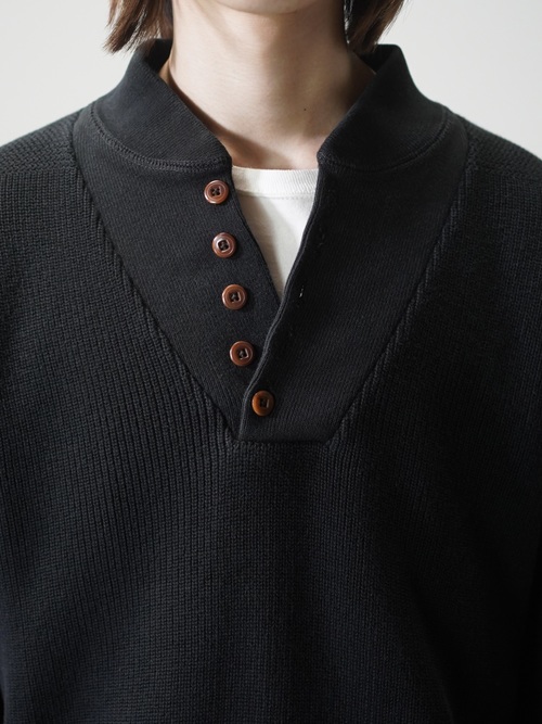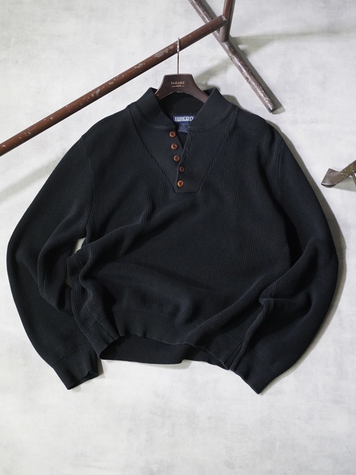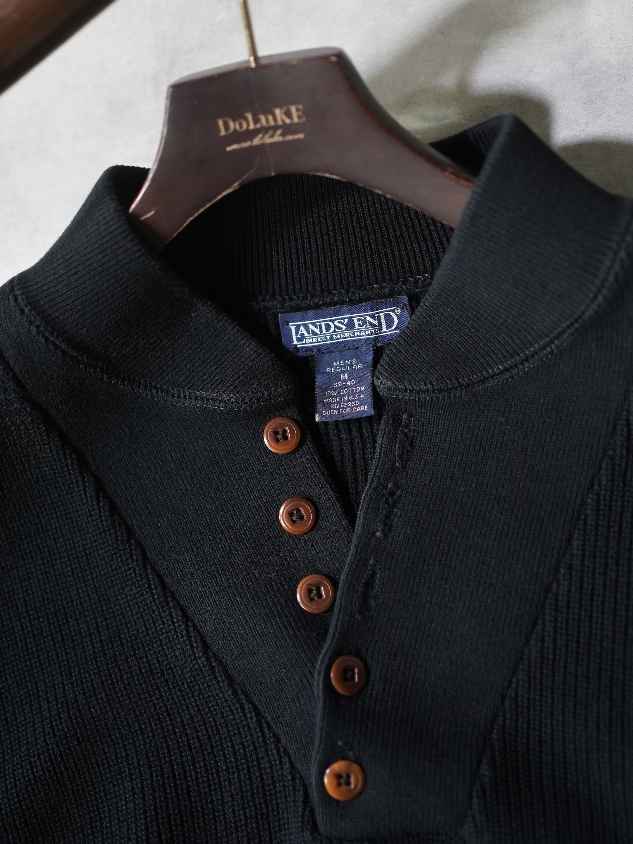 LANDS'END 5-button henley-neck cotton knit sweater/Made in USA