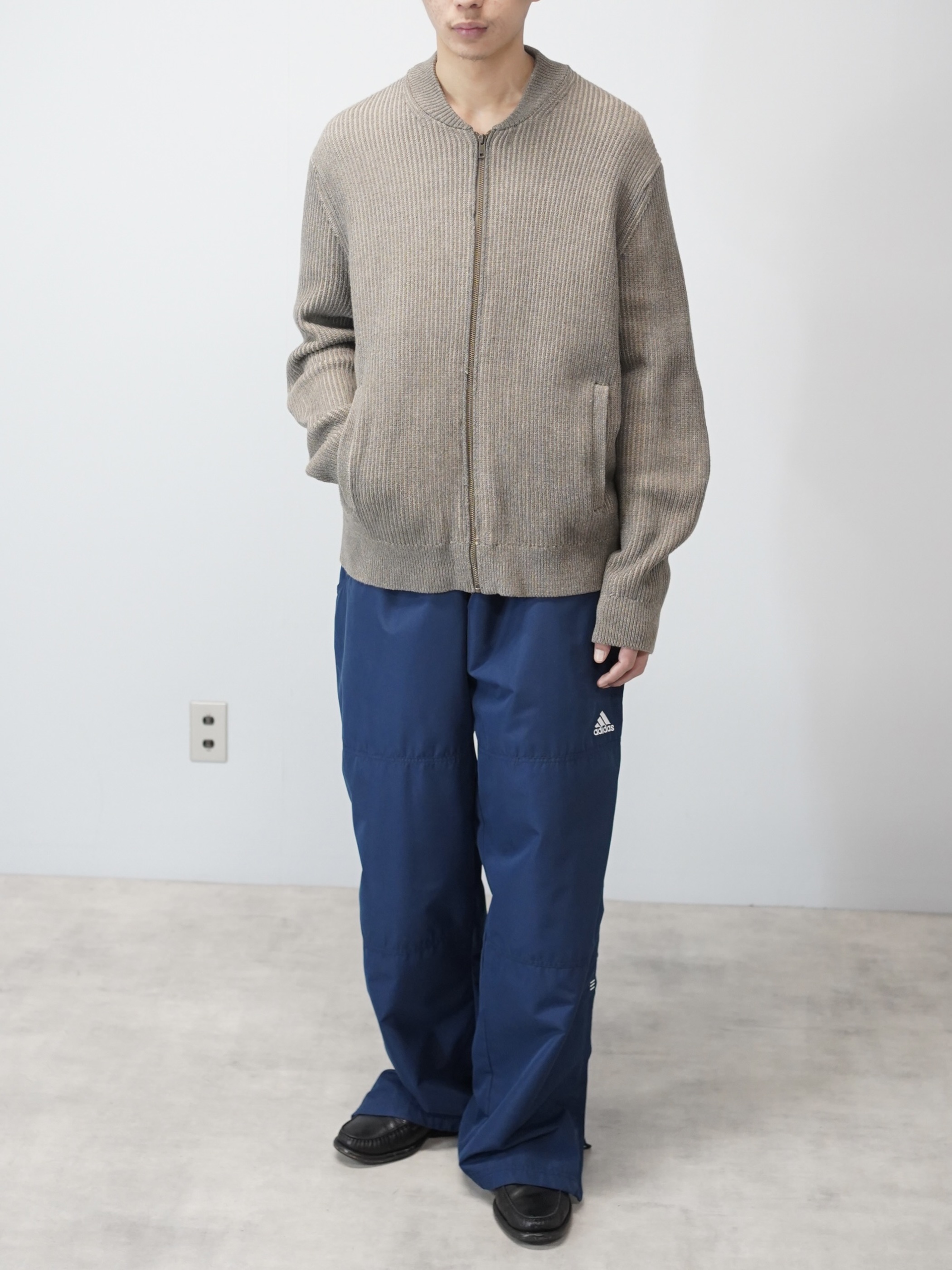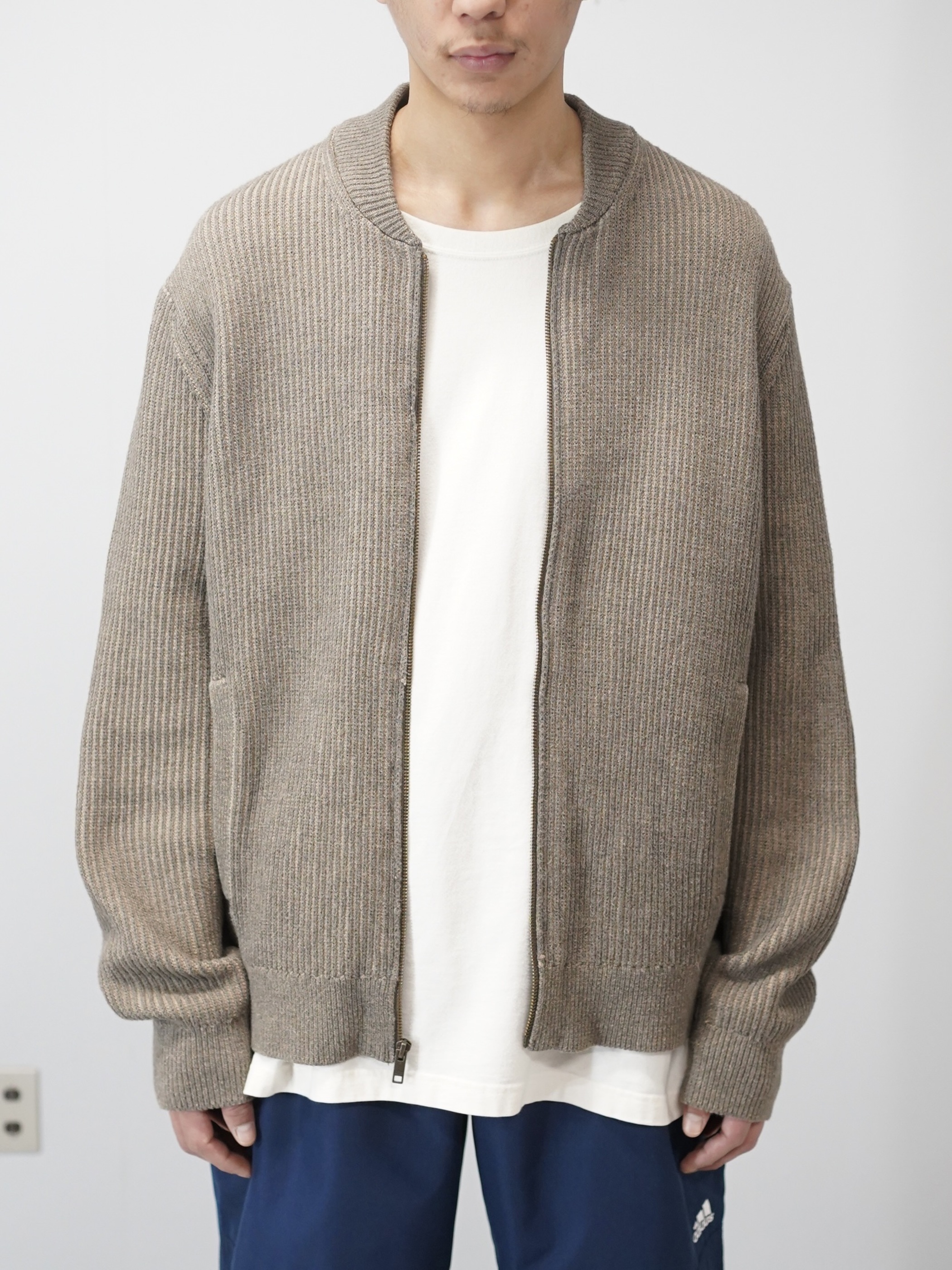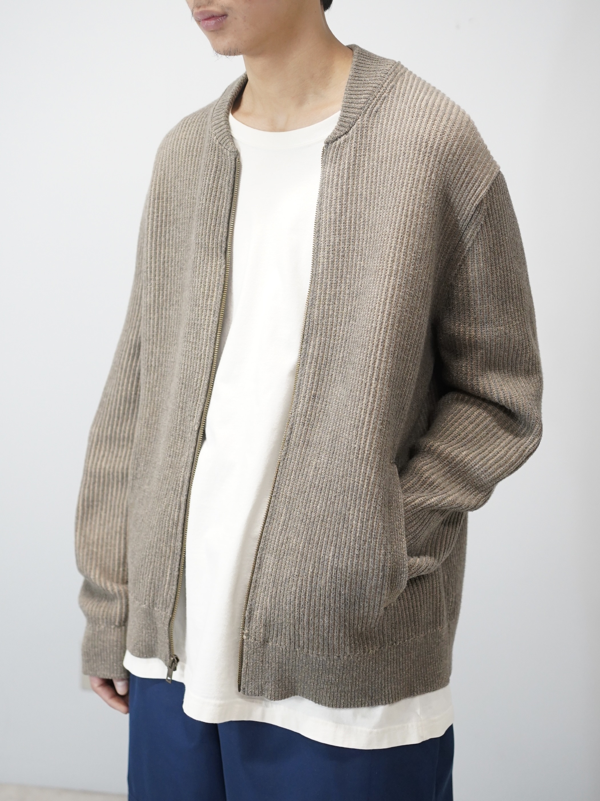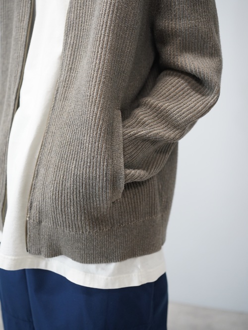フロントはジップ仕様で、カーディガンの軽さと、ブルゾンのような輪郭。