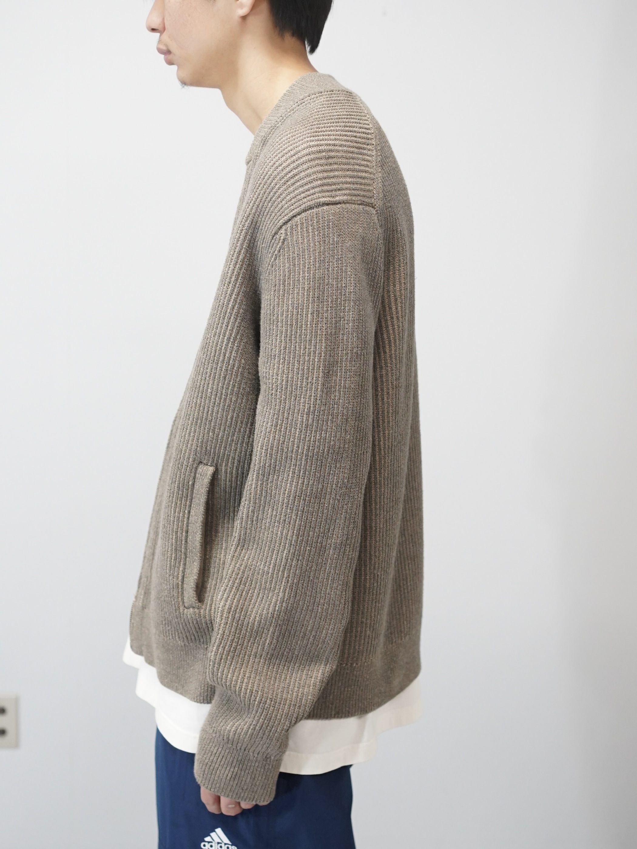 Tシャツの上に一枚羽織るだけでも成立する、ニットとアウターの中間地点。