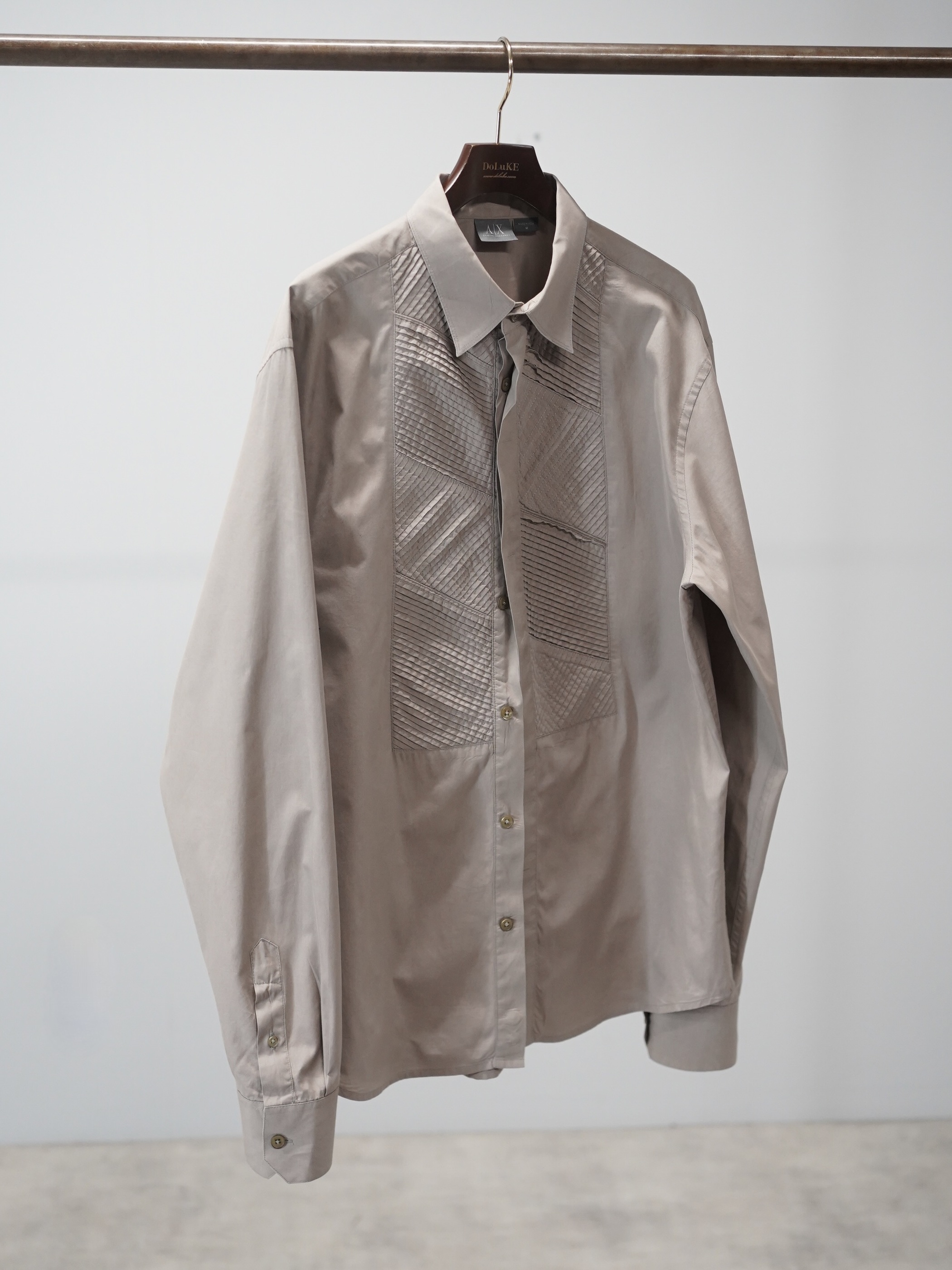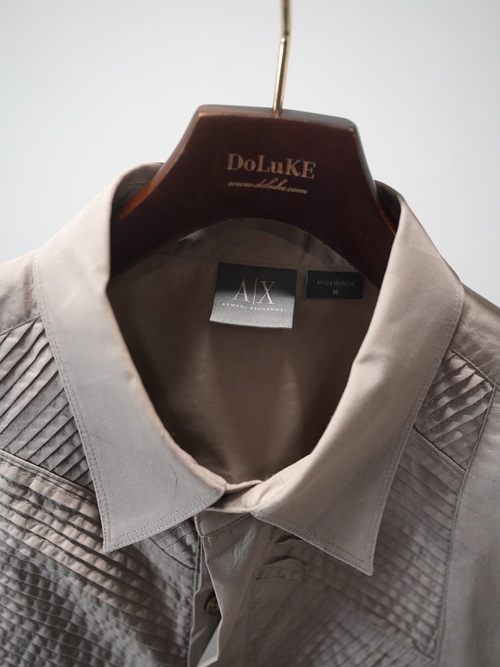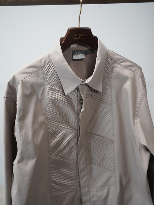 ・00's ARMANI EXCHANGE 比翼 Pintuck design cotton L/S shirt / Made in India