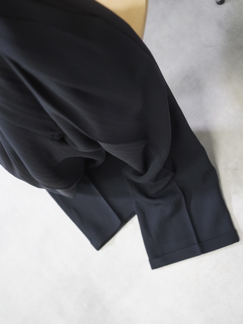 ボックスタックにドレープ豊かな織り生地、サラッとしていてとろみも持ち合わせた色気のあるテクスチャ。