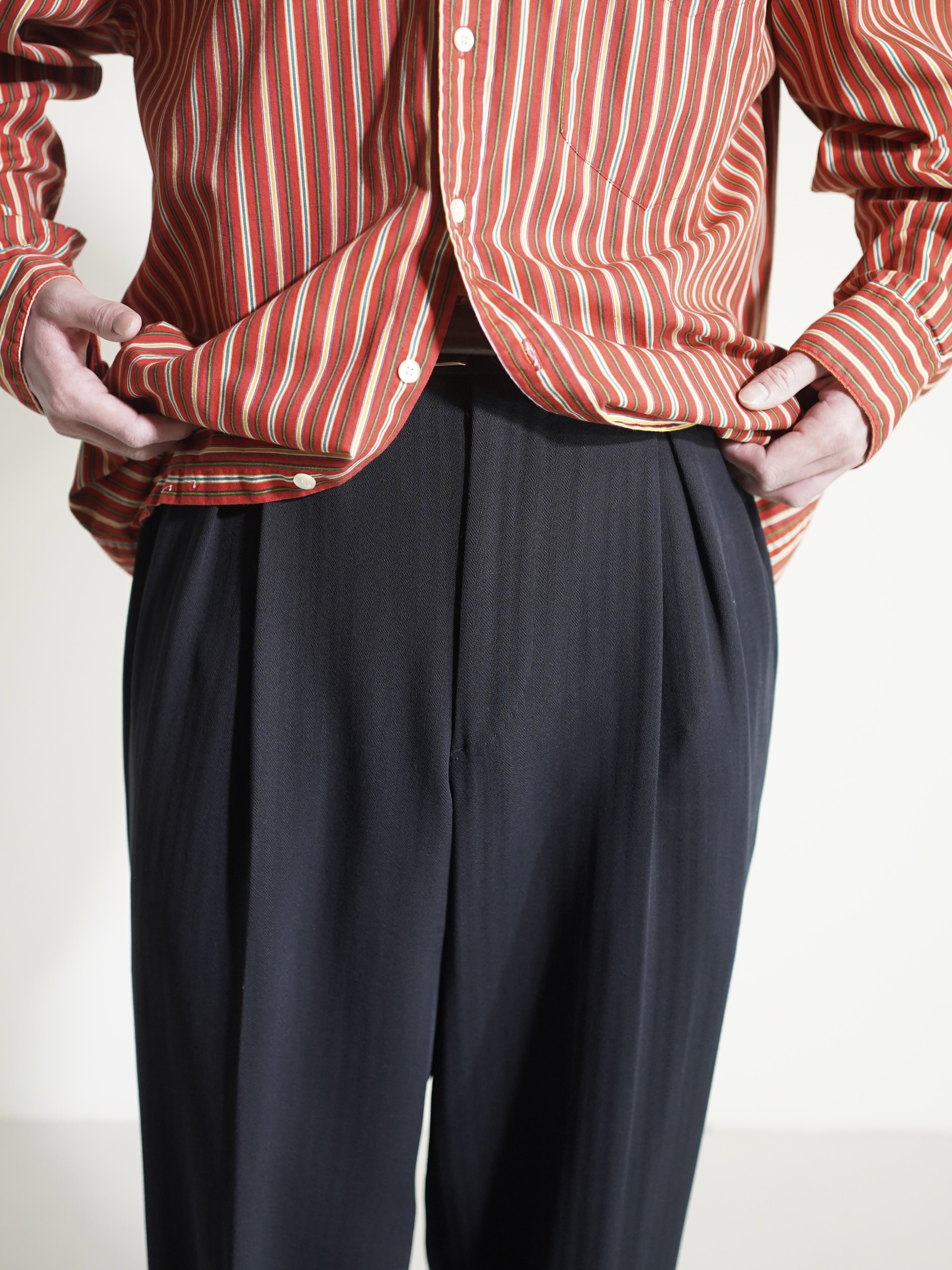 極めて個人的な、でも自信を持って言える、恐らくアルマーニ、かそこらのラグジュアリーブランドが製作したSet upの片割れで見つかったスラックスだと思います。