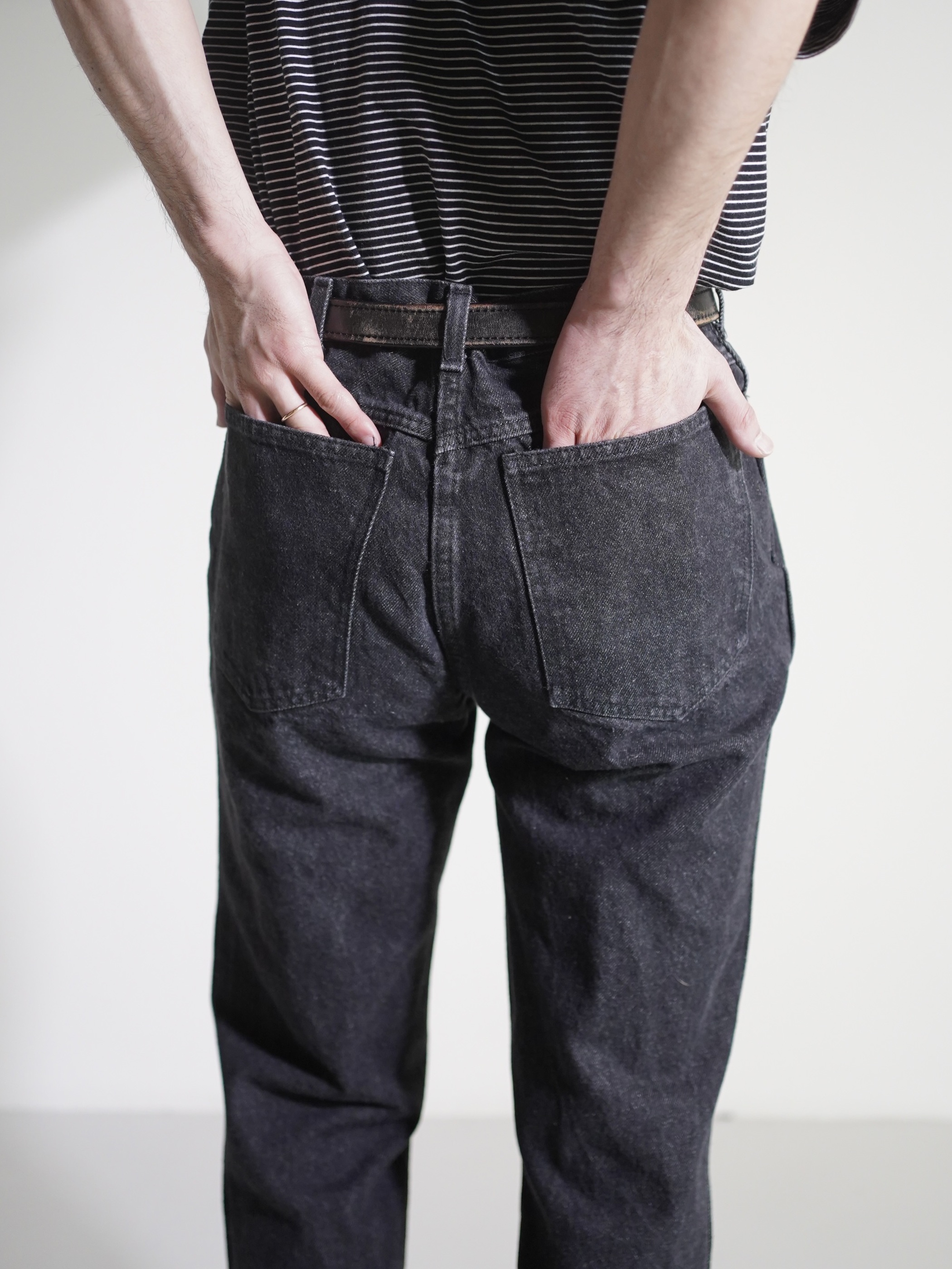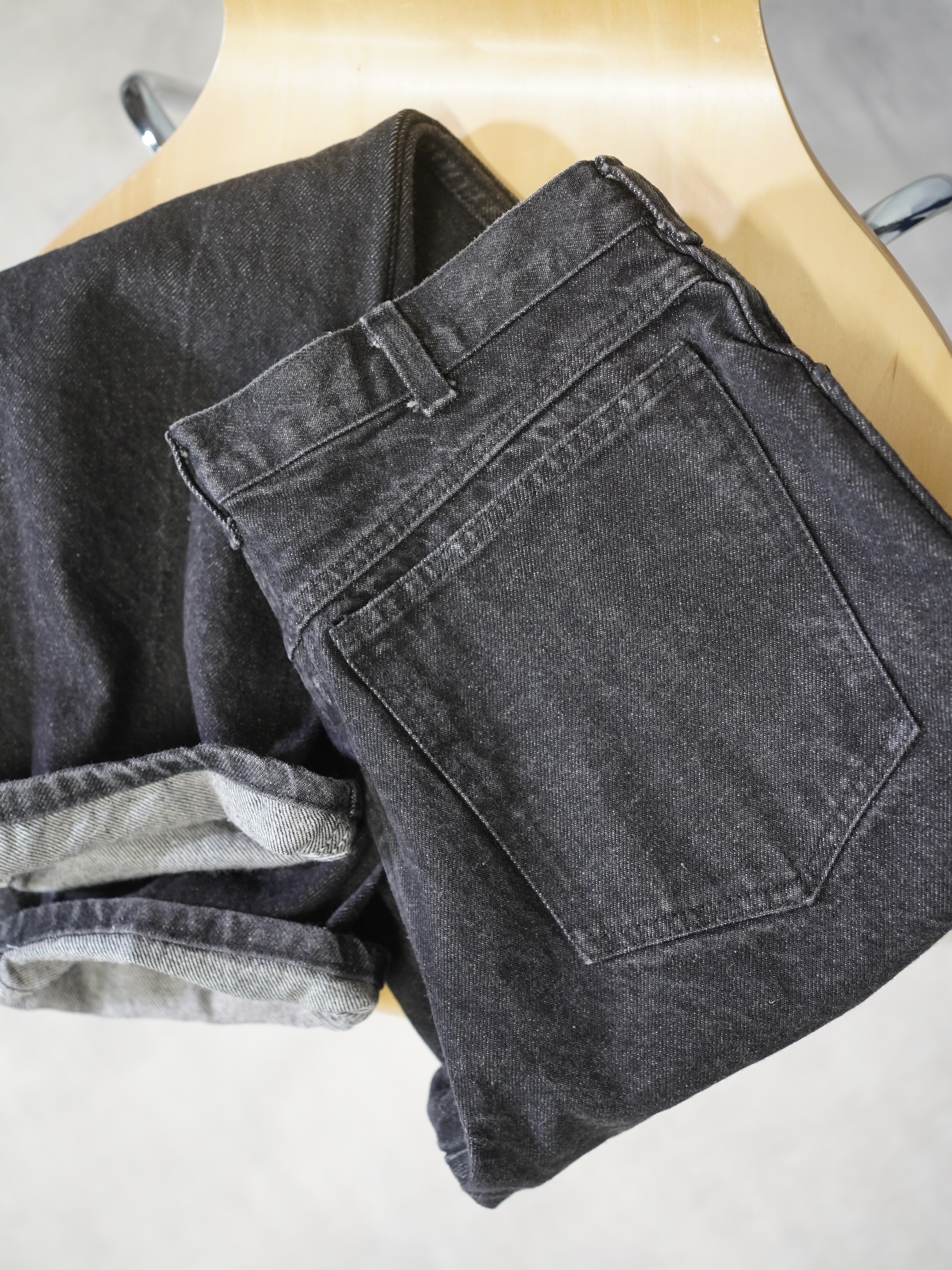 どこぞのストア系ブランドの、綺麗なストレート先染めブラックデニム。