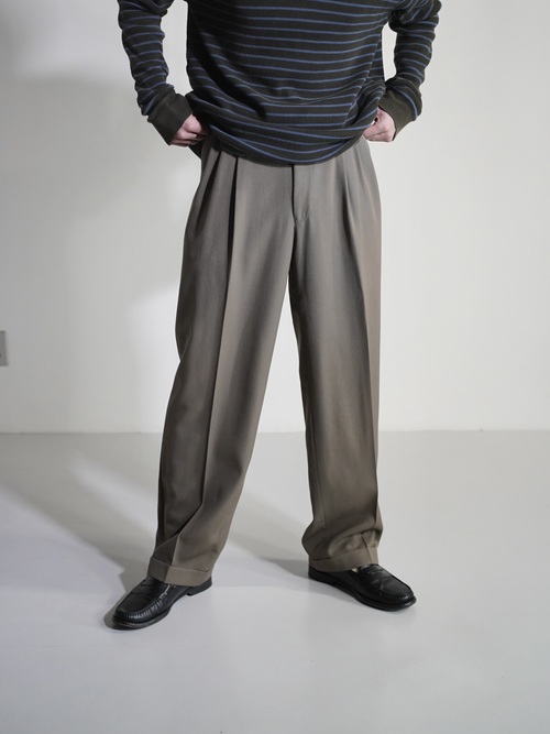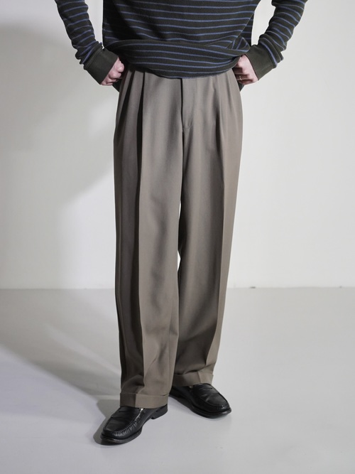 とろみのある3タックウールギャバジンスラックス。