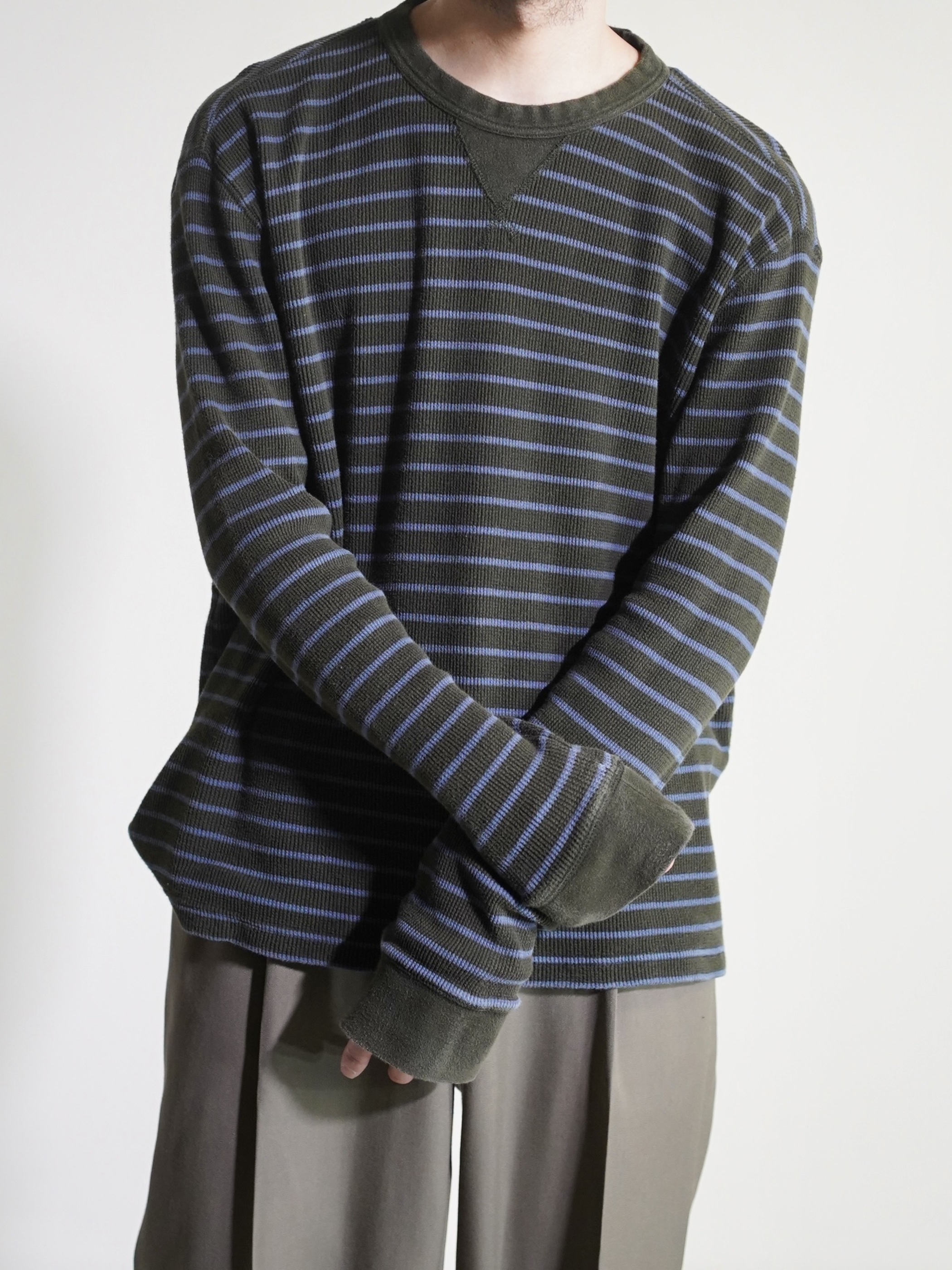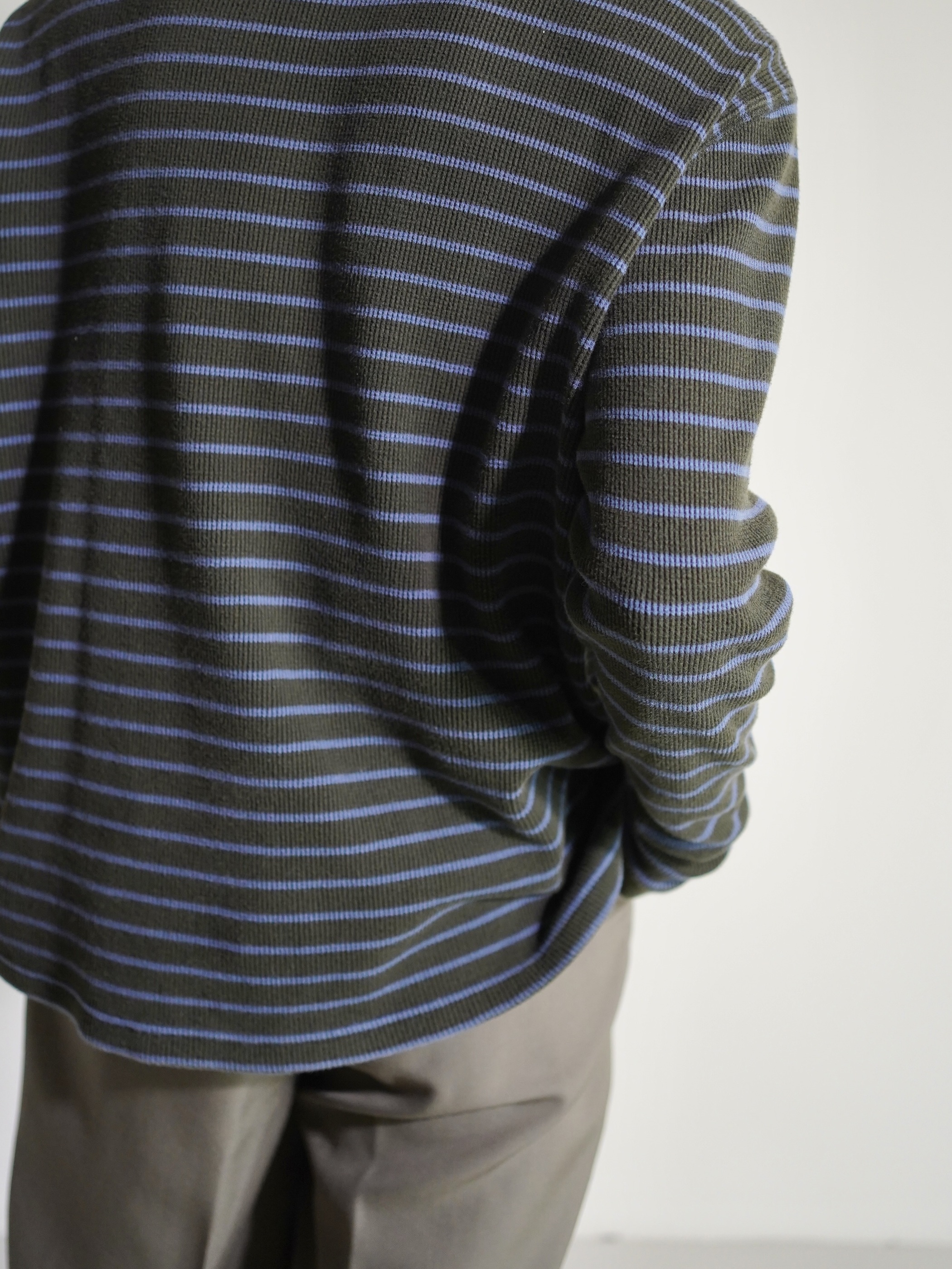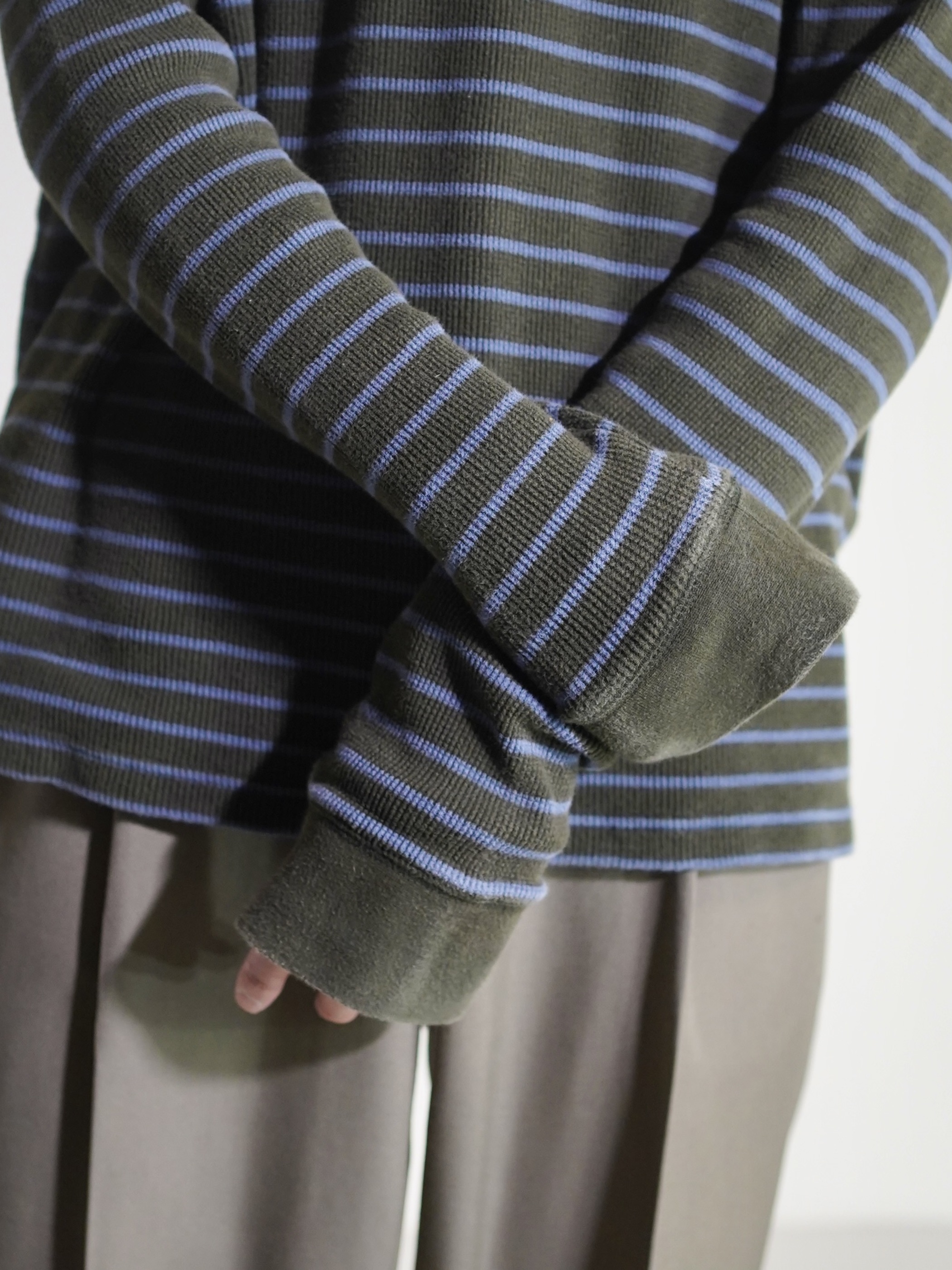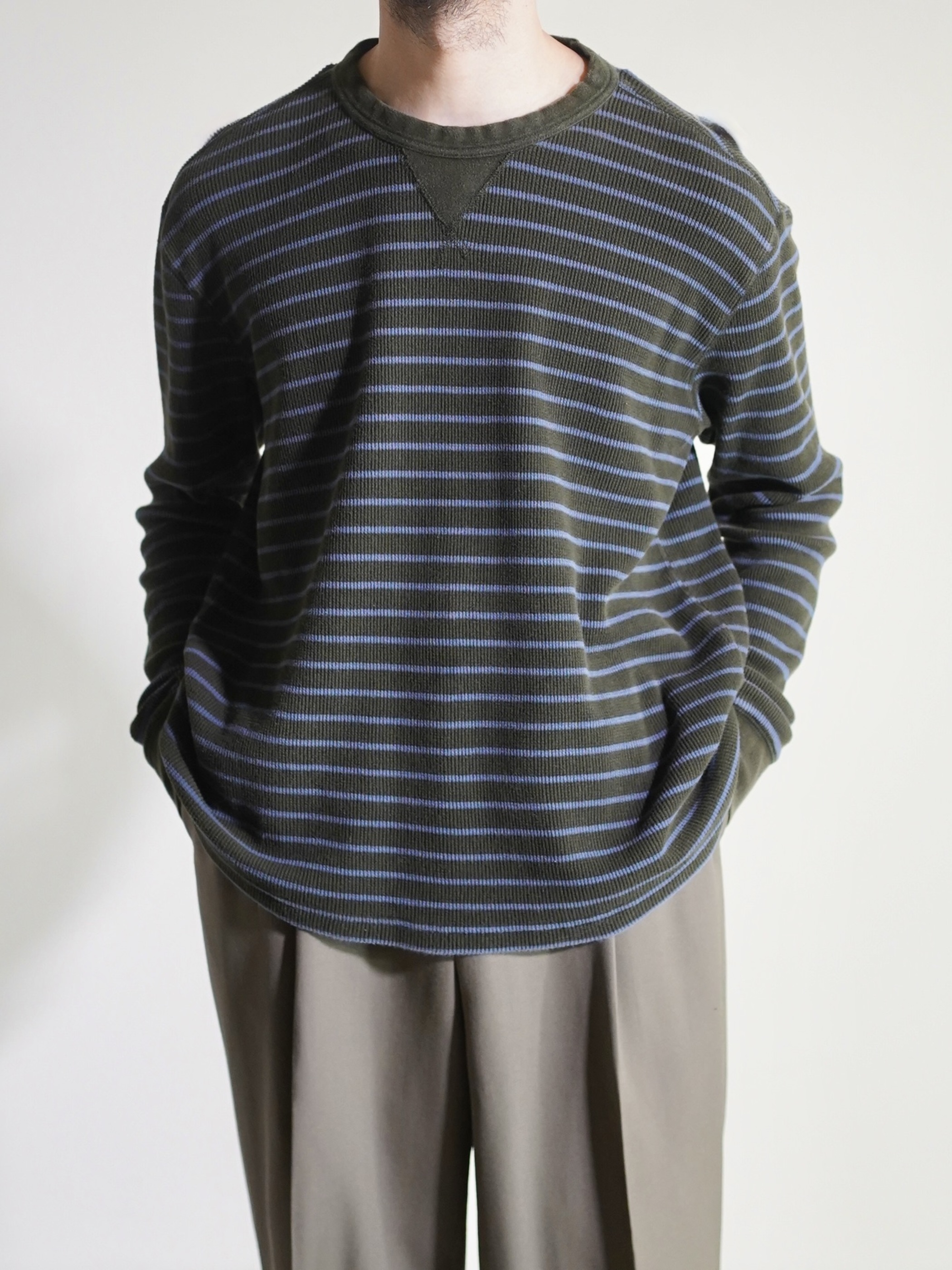 洒落すぎずに地味すぎないオリーブとブルーのボーダーサーマル。