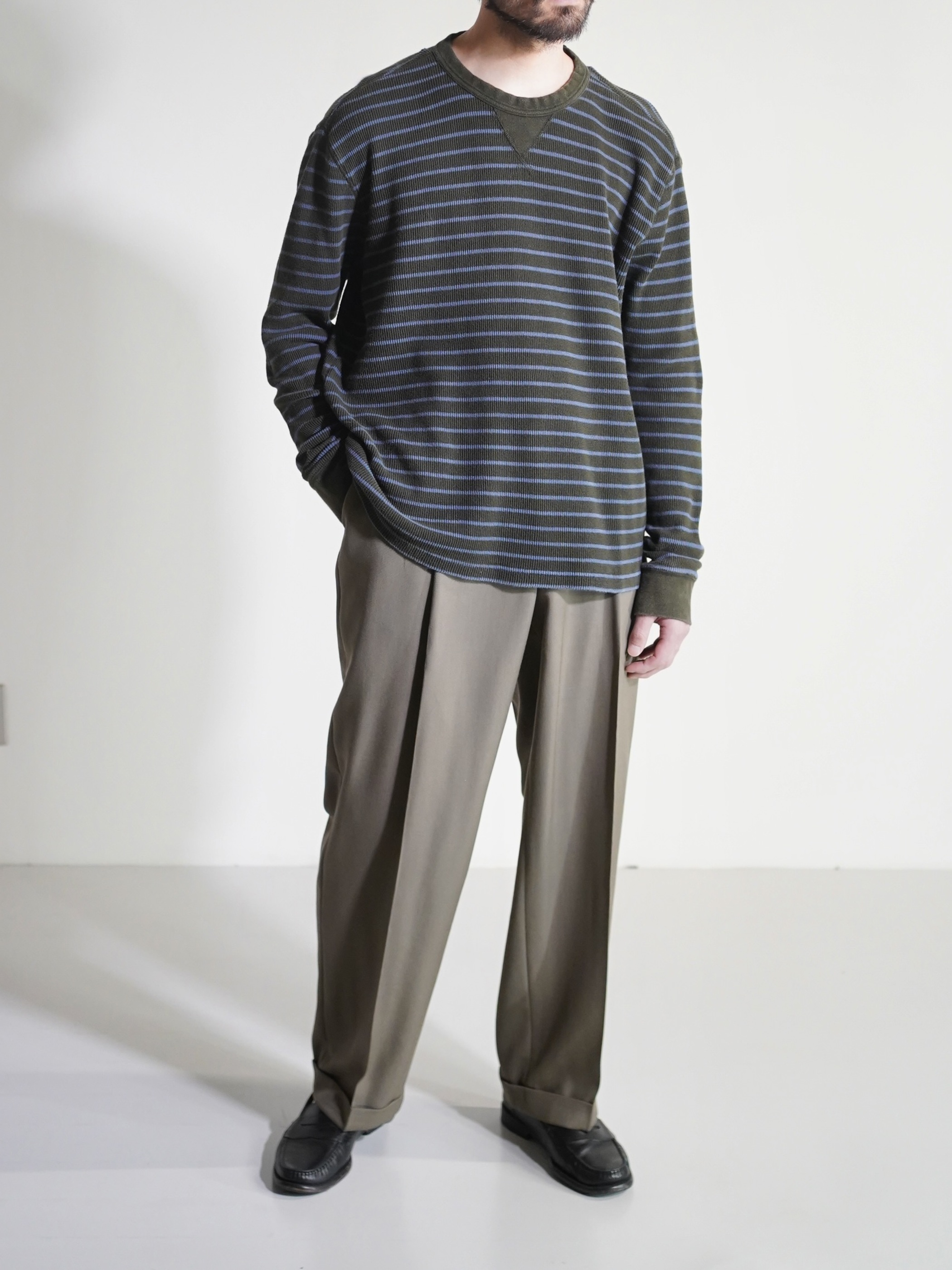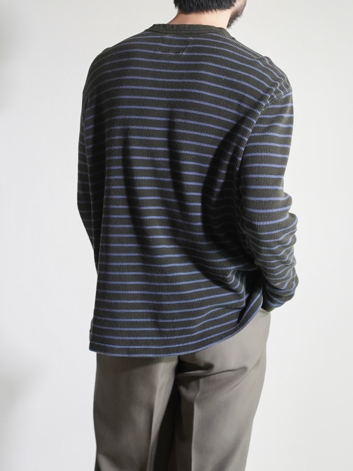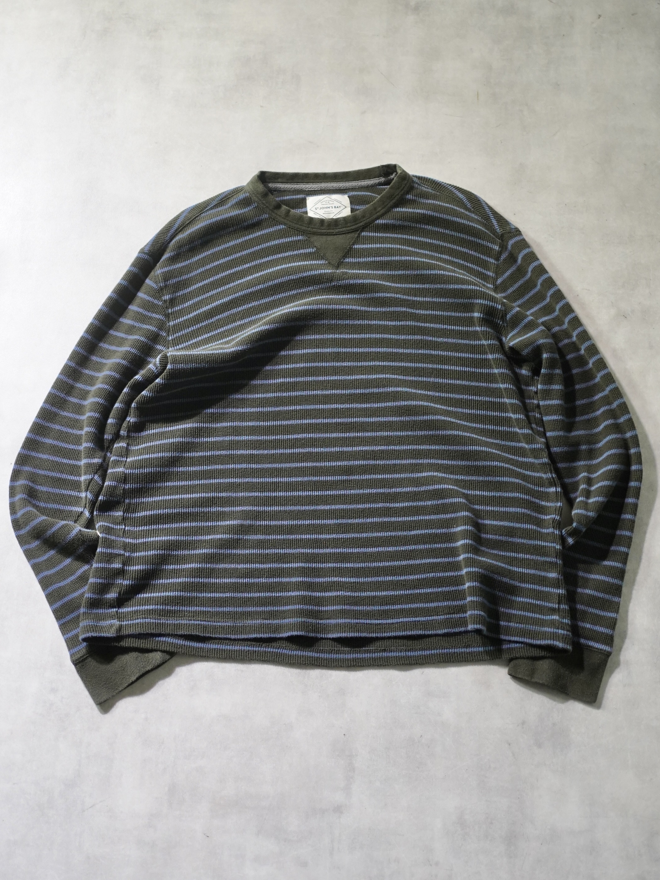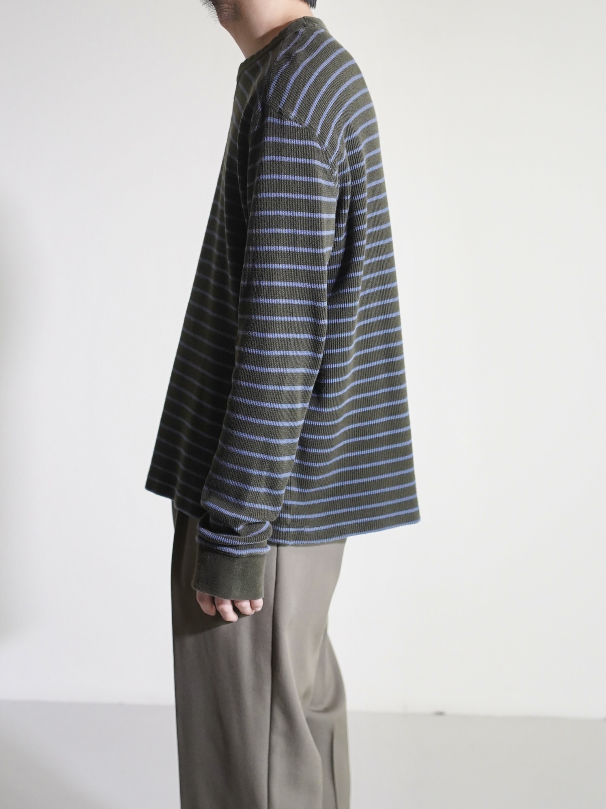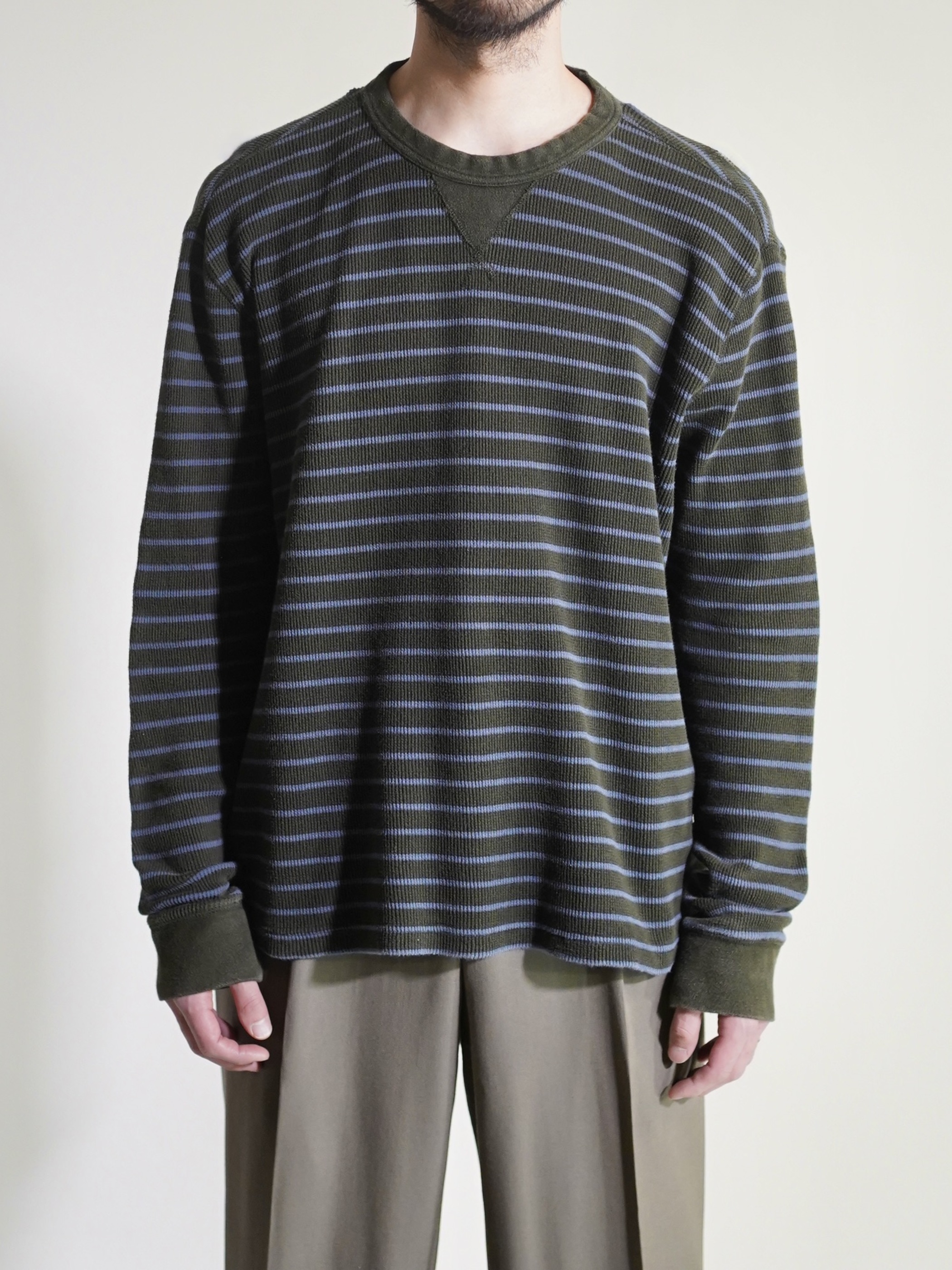 洒落すぎずに地味すぎないオリーブとブルーのボーダーサーマル。