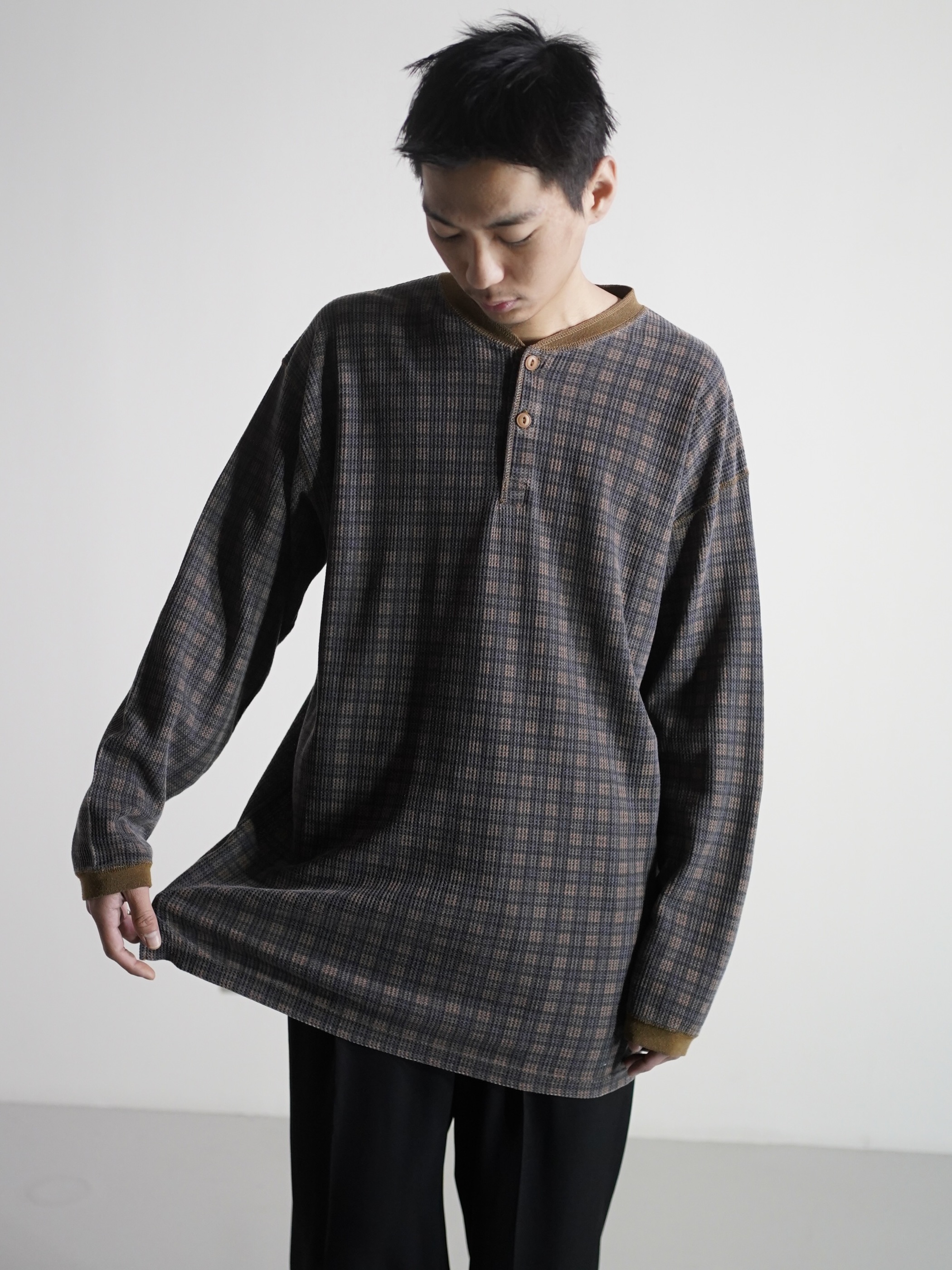 ・1990's~ BUGLE BOY Henry-neck check thermal cut sew