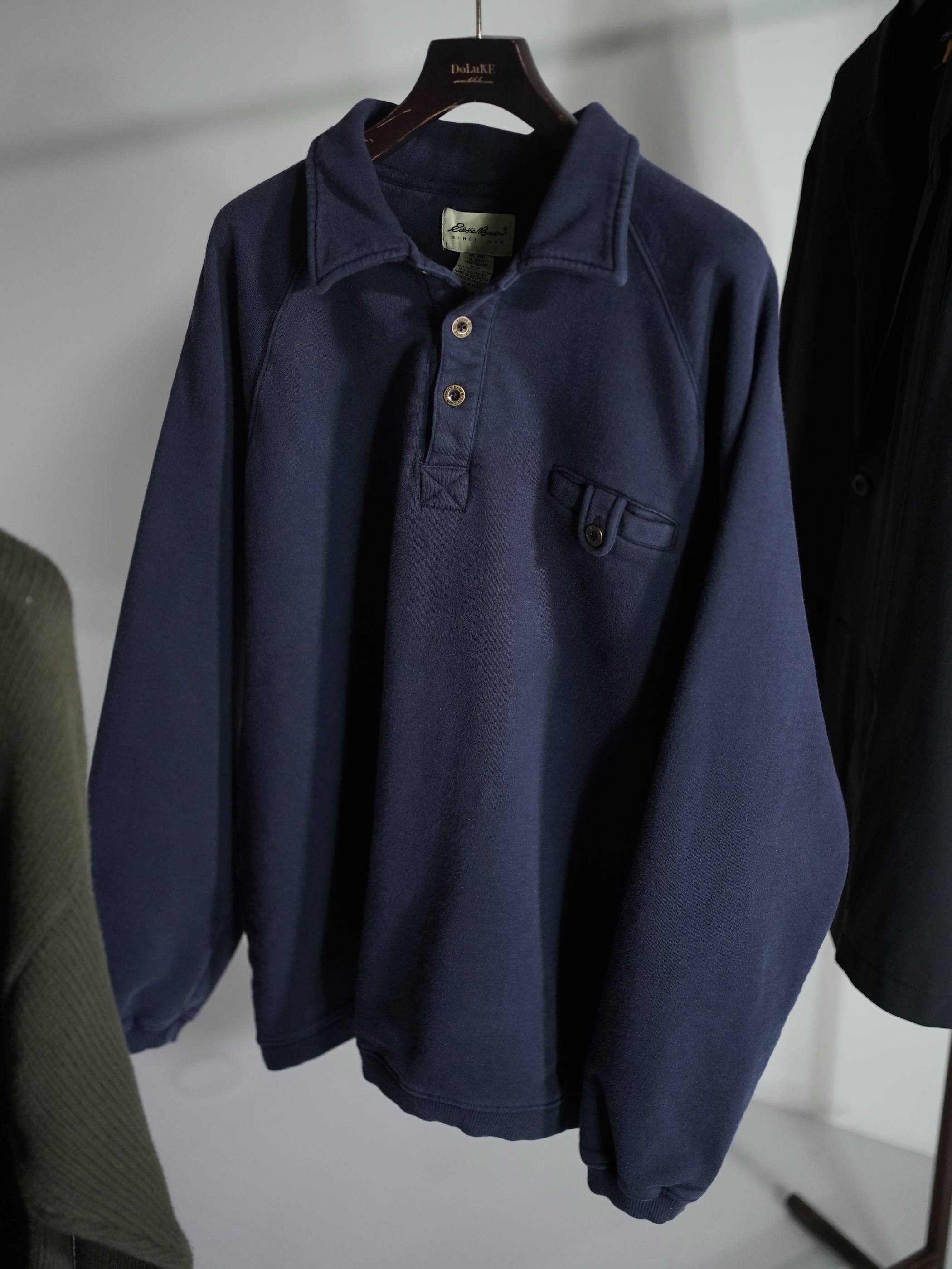 ・Eddie Bauer Raglan sleeve sweat polo shirt