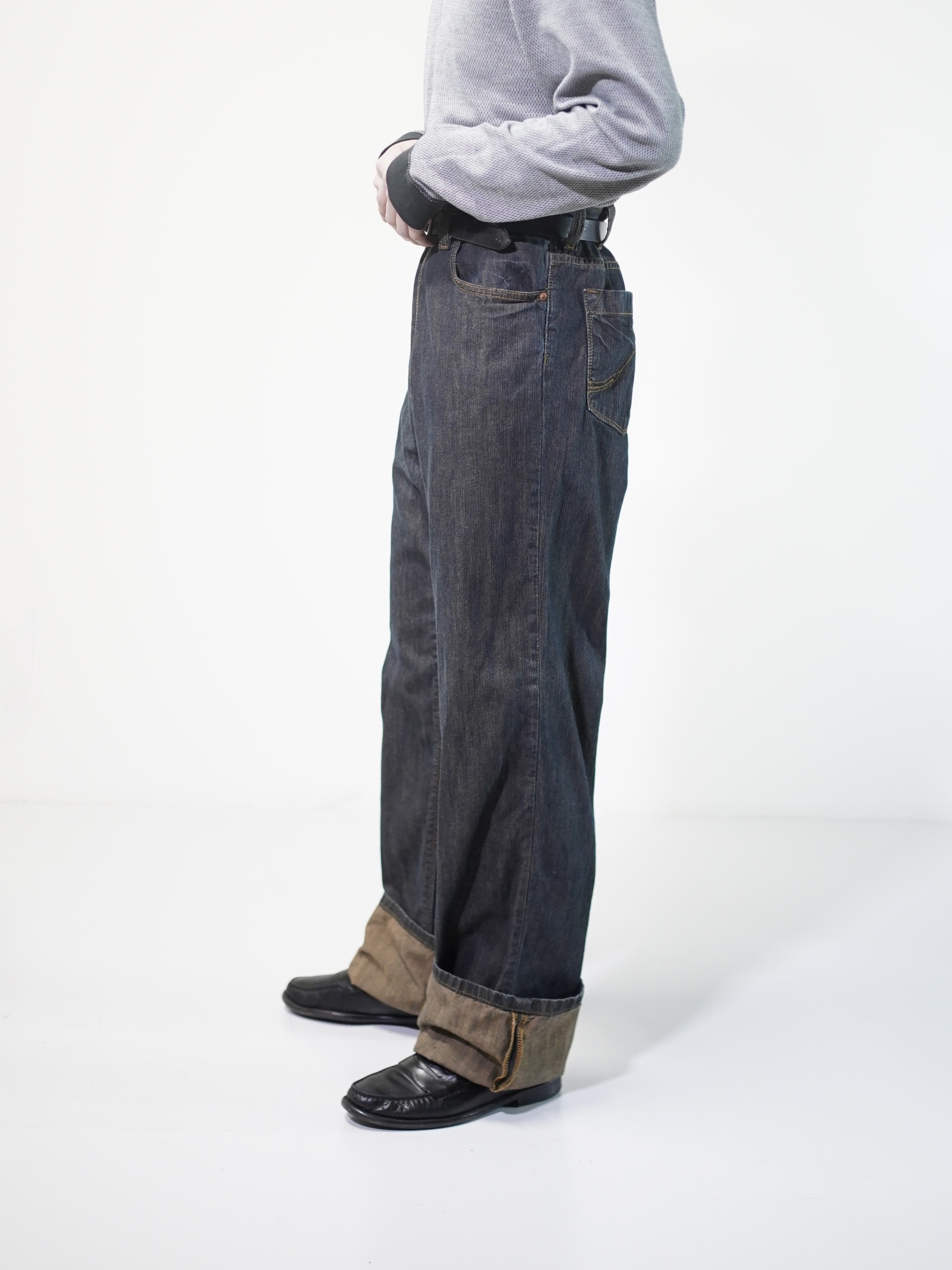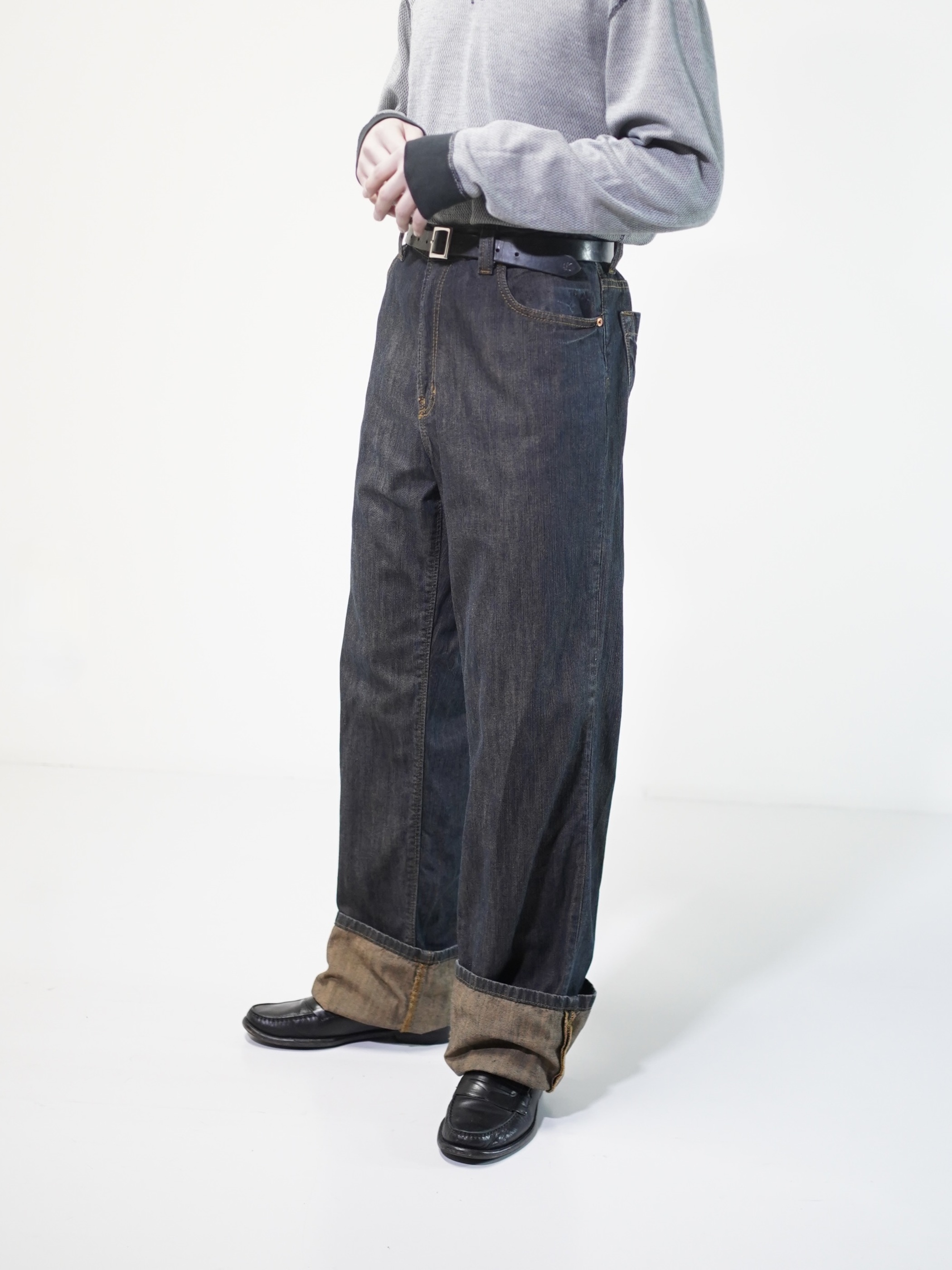 1990's DKNY golden-bobbin indigo wide denim pants/Made in Mexico