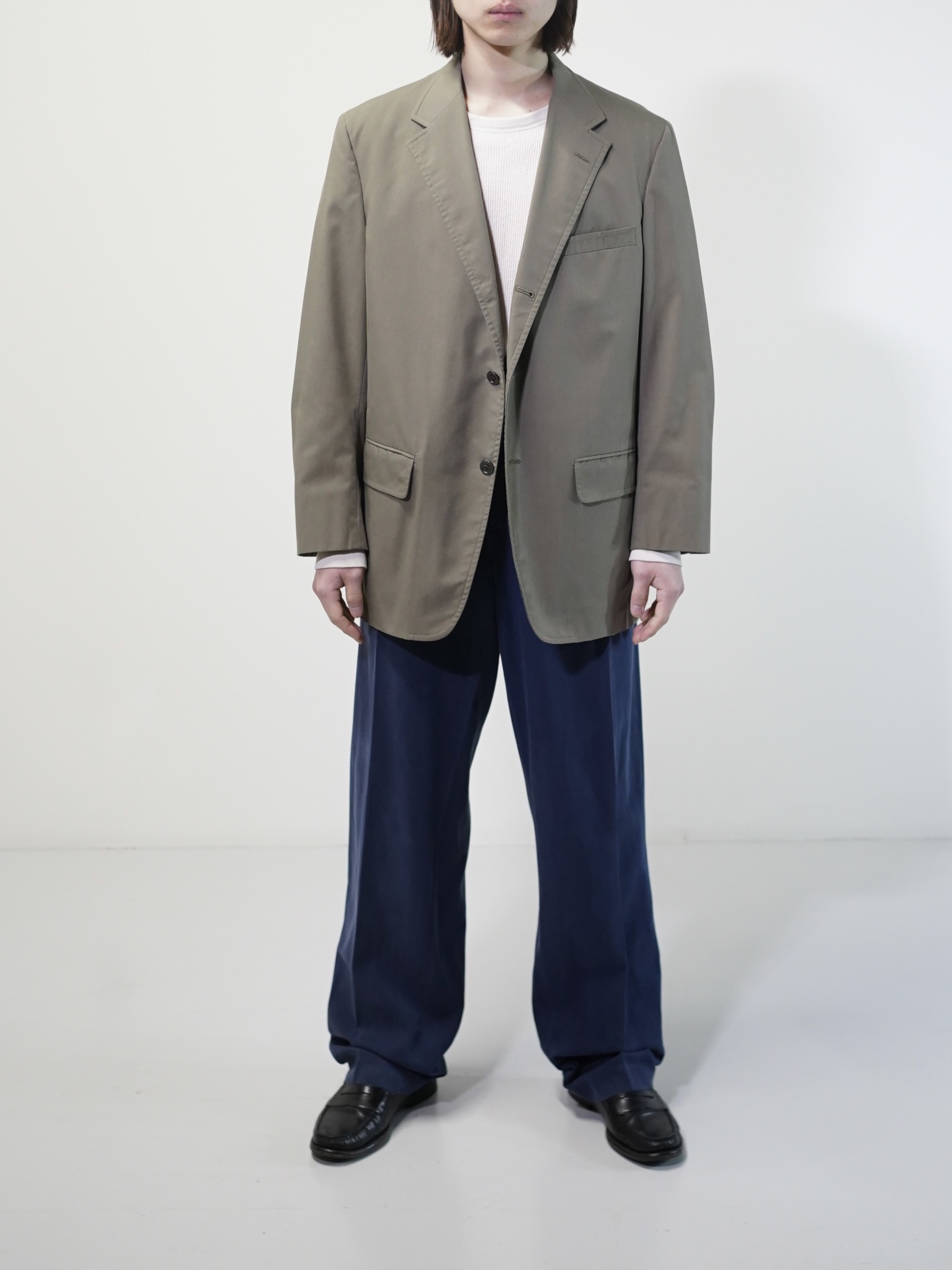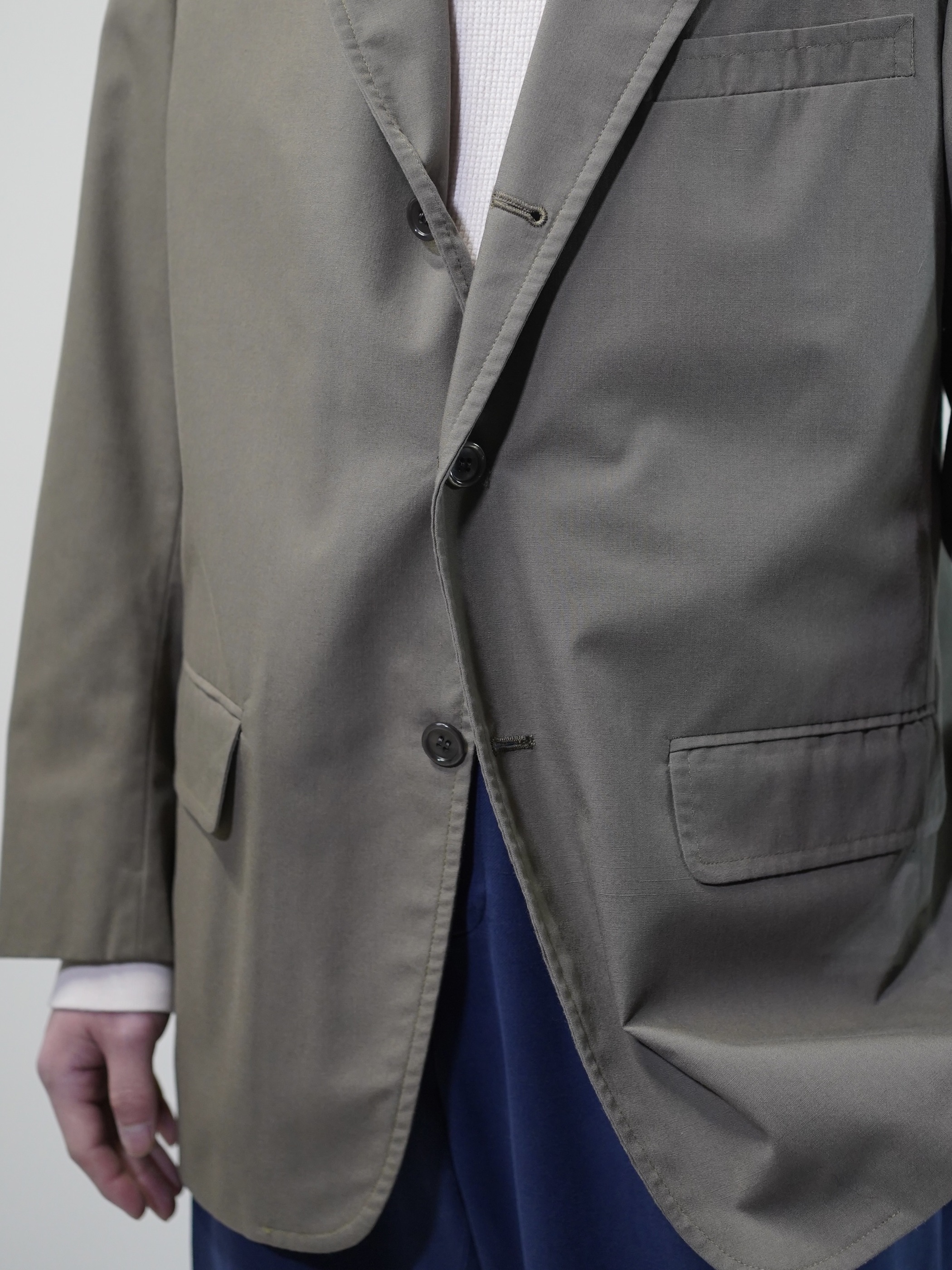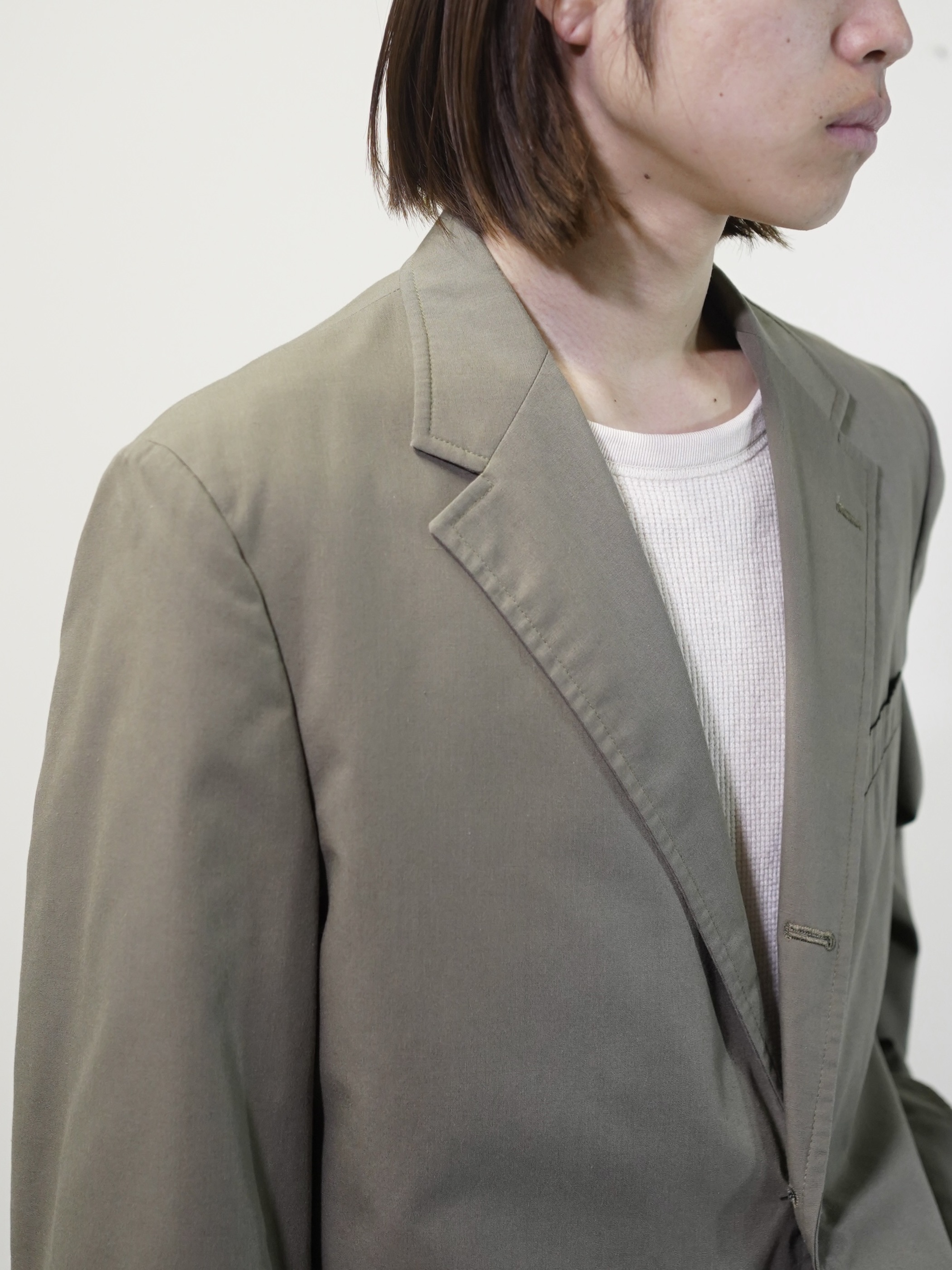 この生地の色の出かたも、テーラードジャケットの形にとてもハマるなーと思います。