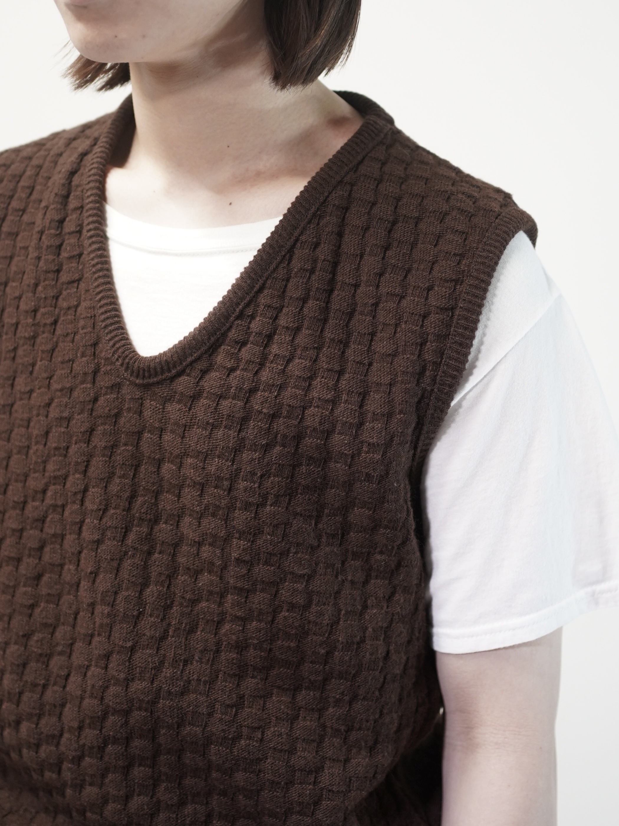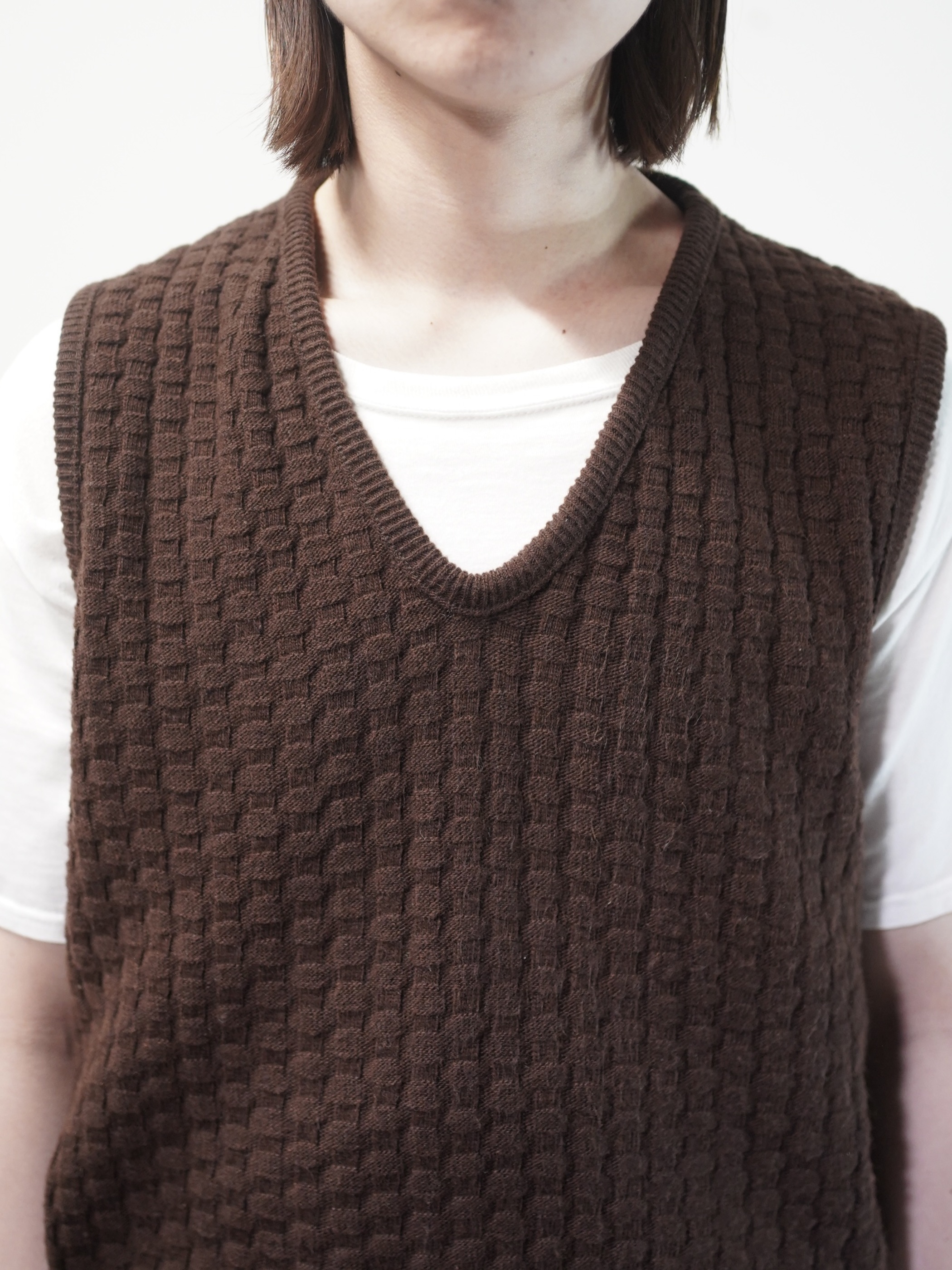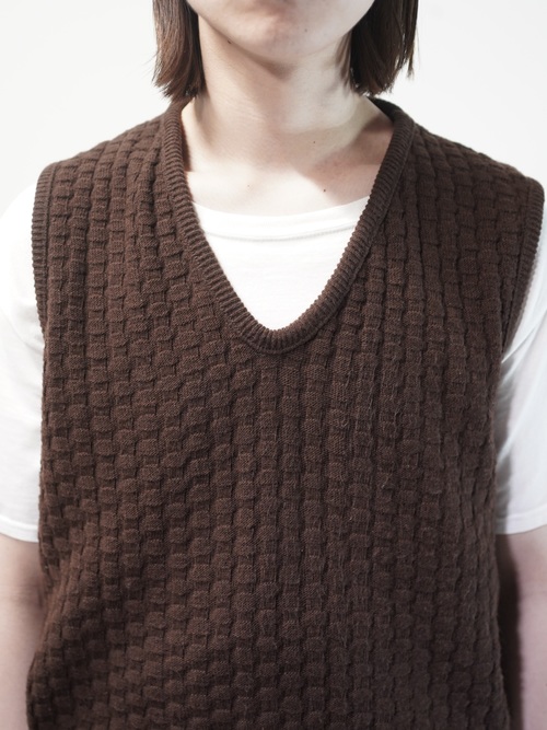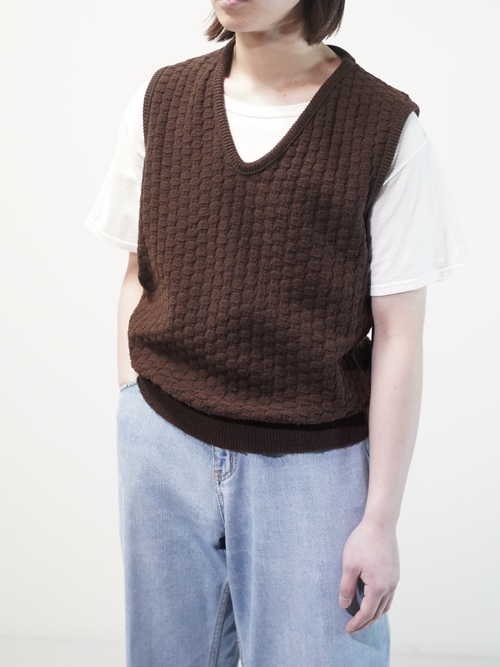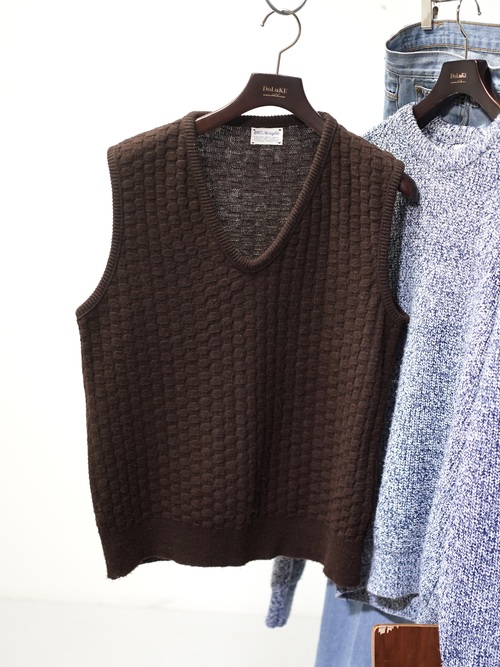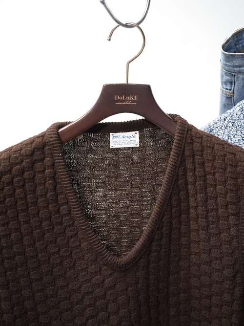 1970's Popcorn knitting V-neck acrylic knit vest