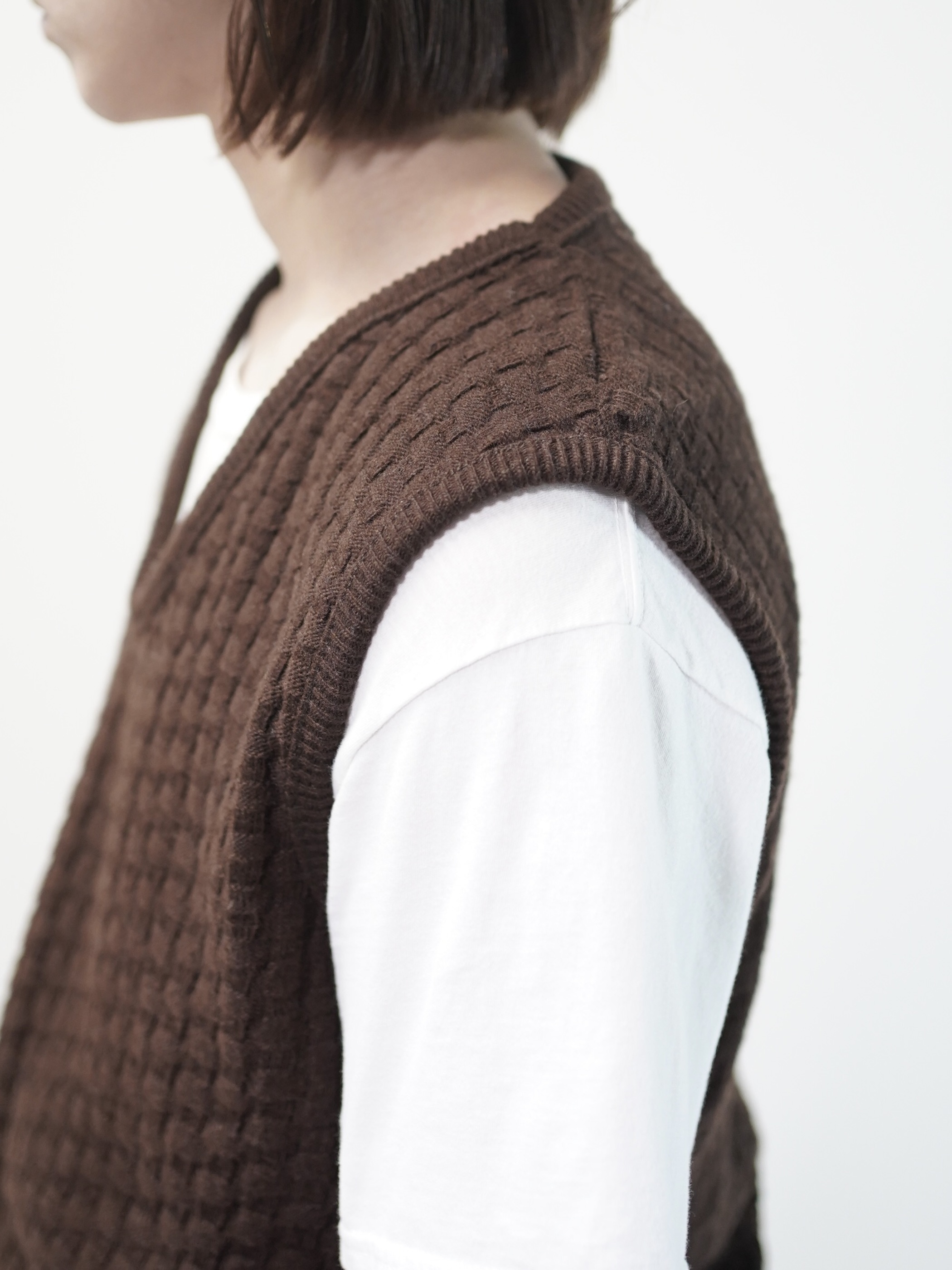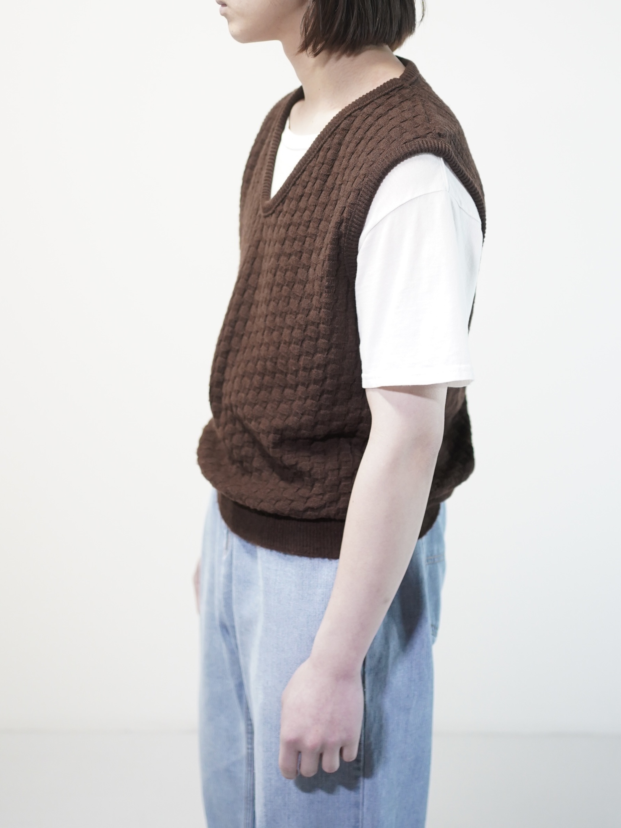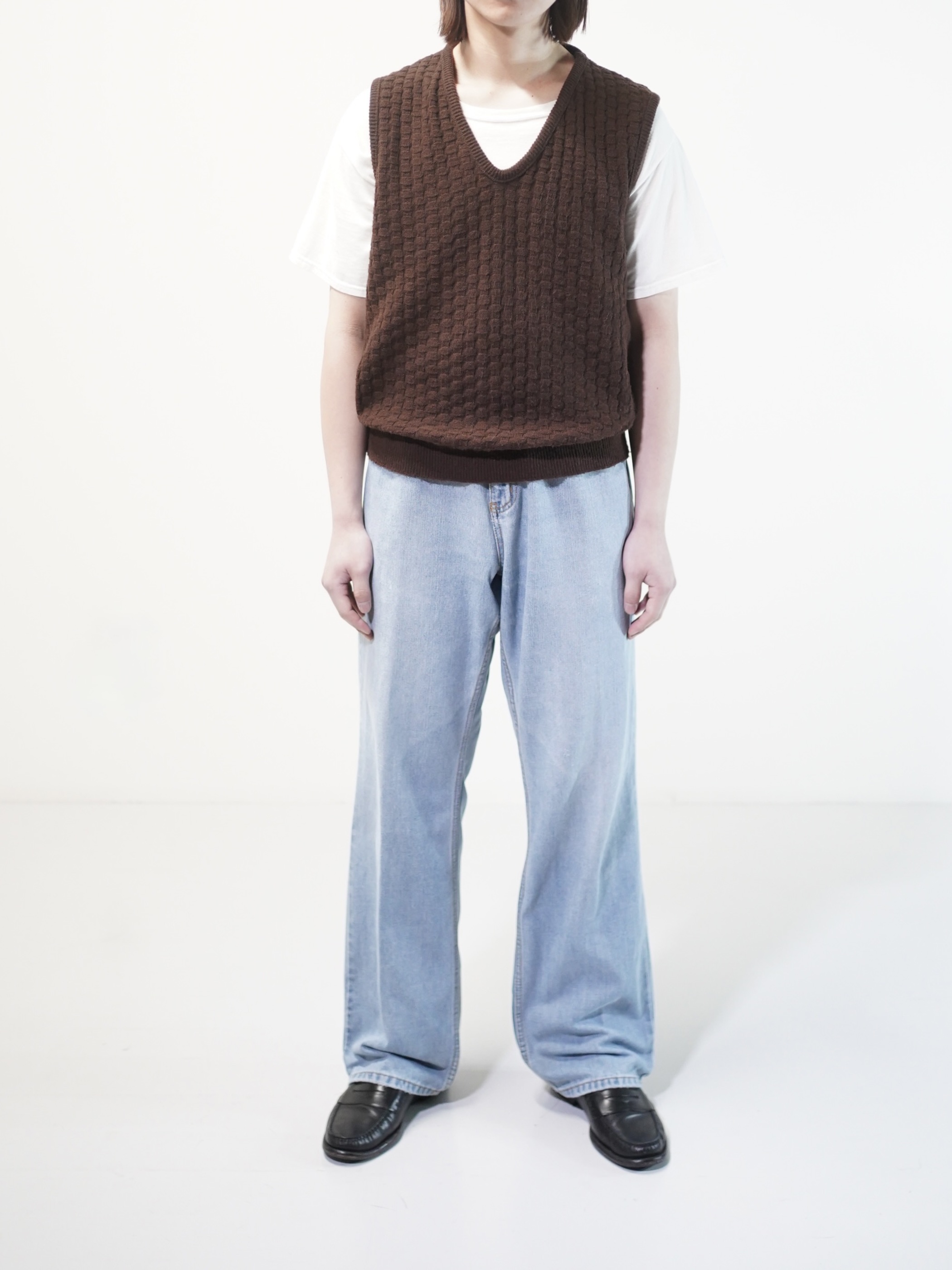 1970's Popcorn knitting V-neck acrylic knit vest