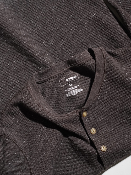 00's SONOMA Henley-neck nep thermal cut sew