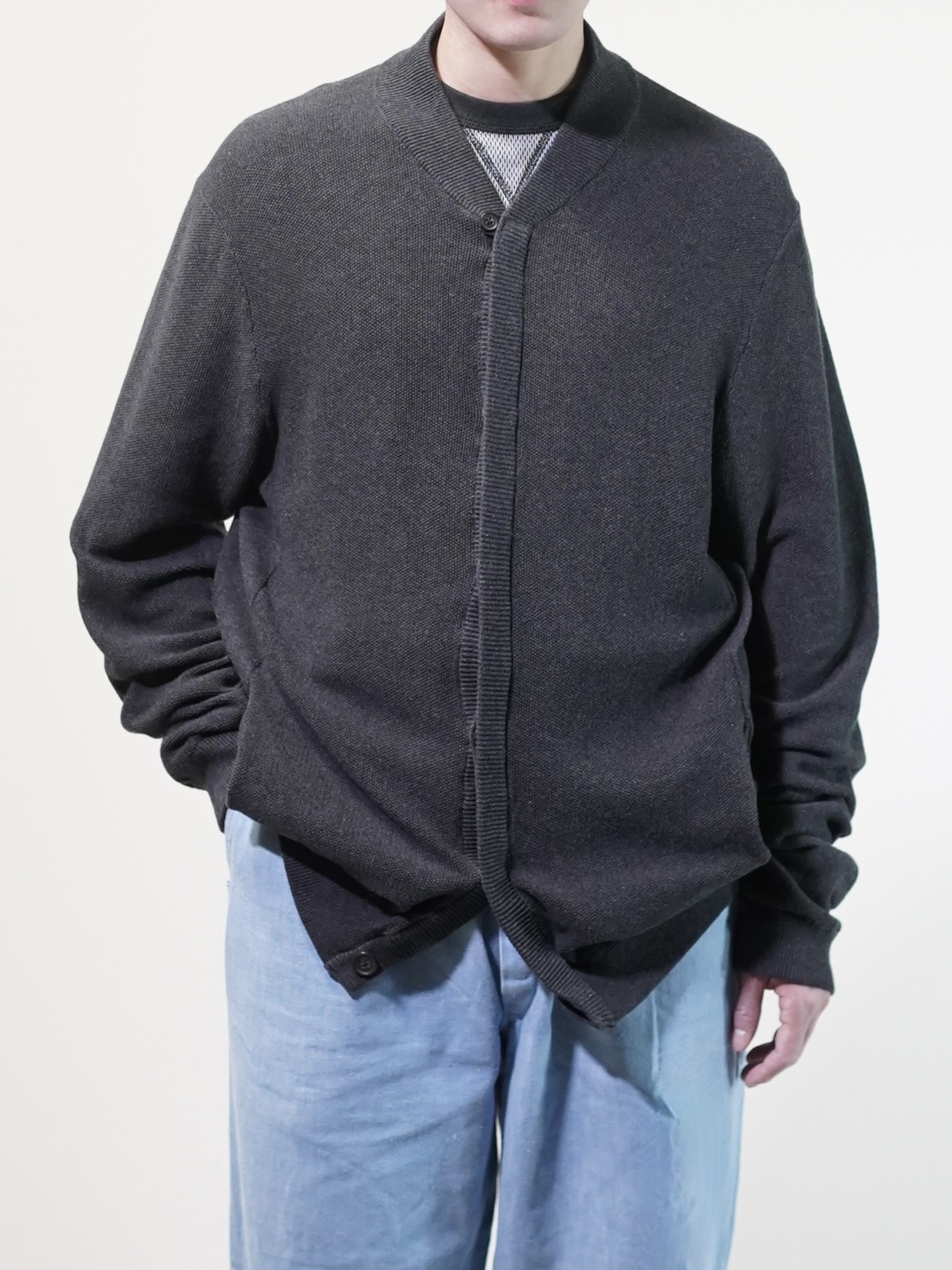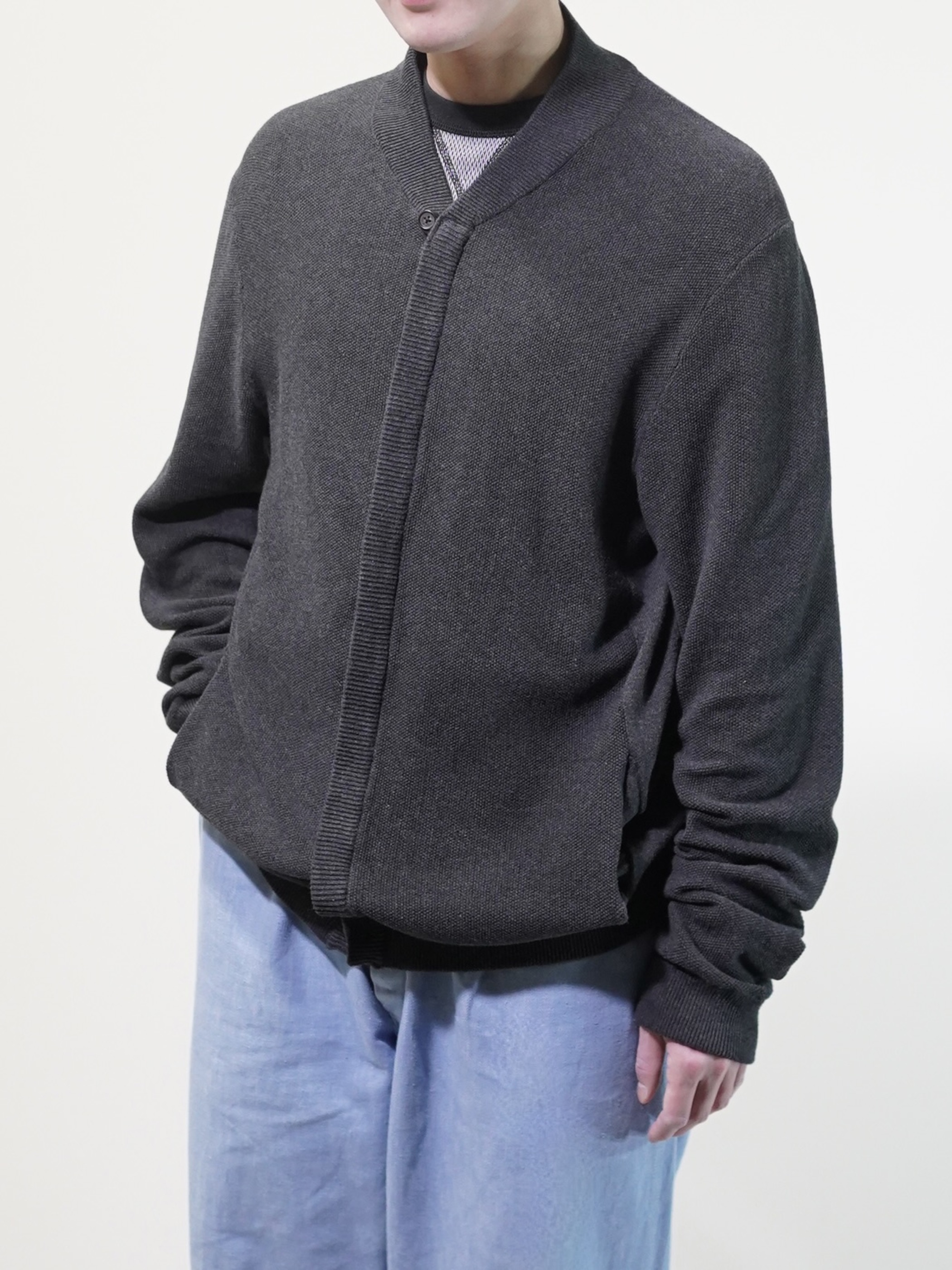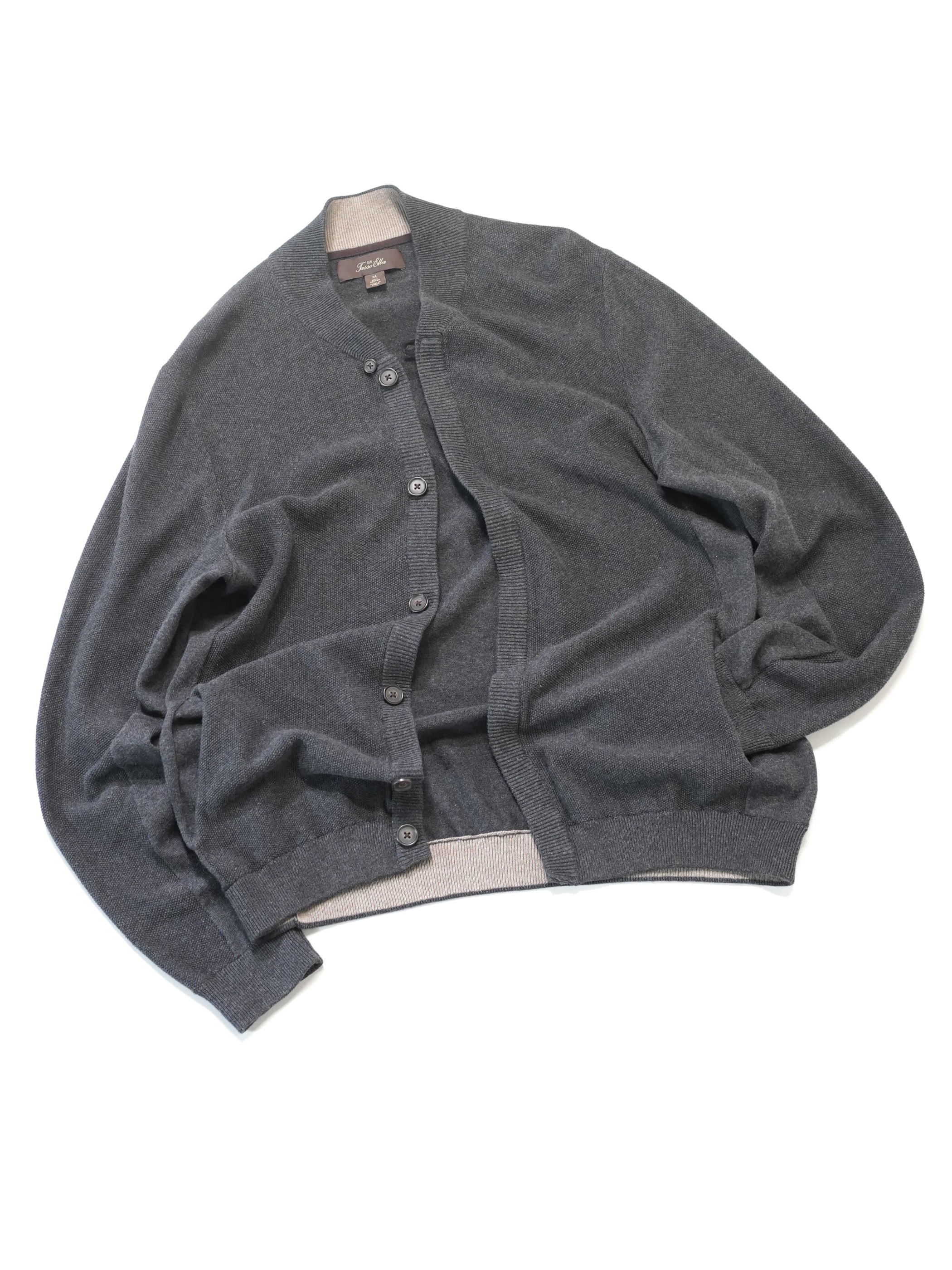 Tasso Elba 100% cotton 凸凹 honeycomb knit sew button jacket/Loop top button