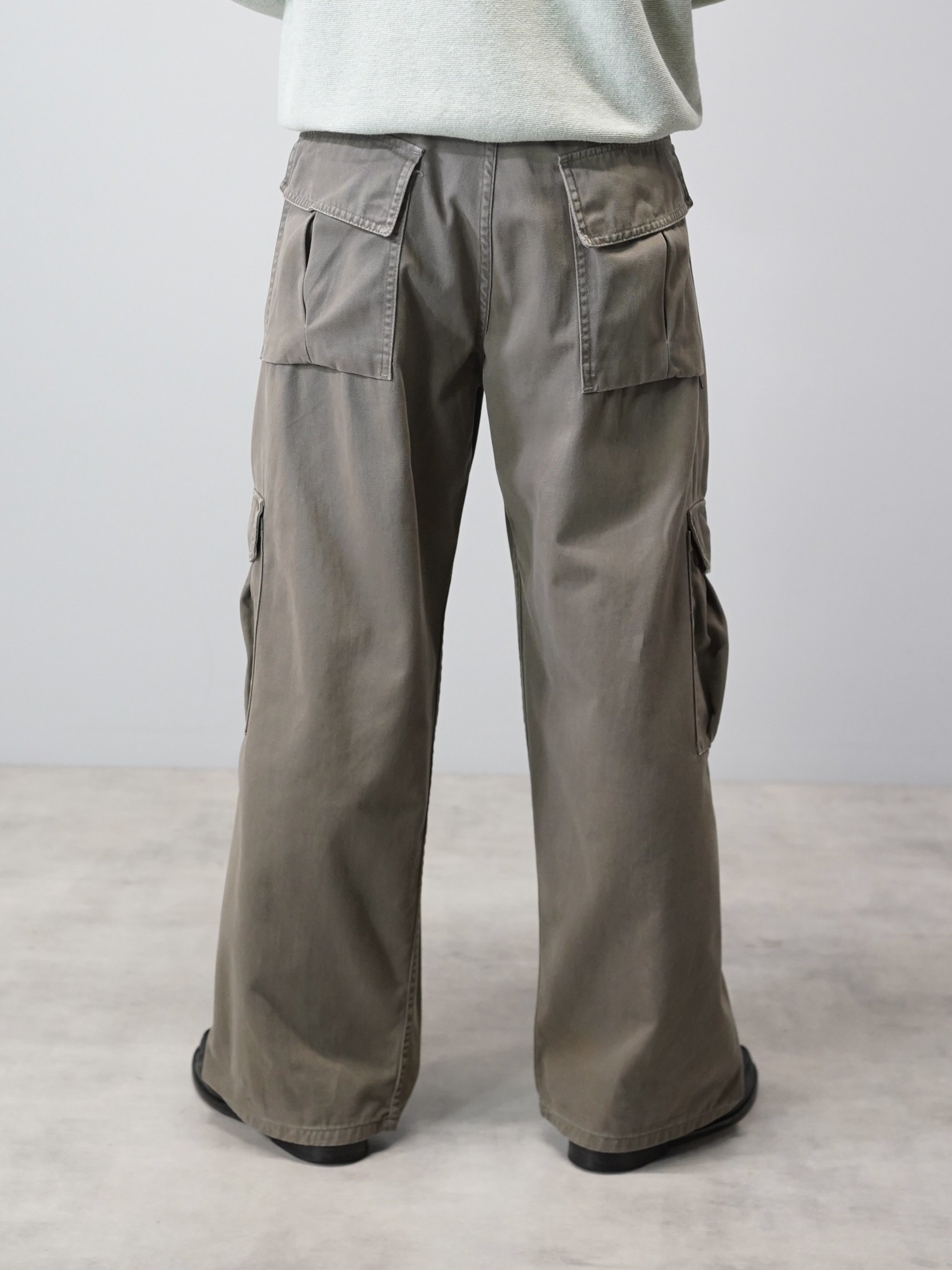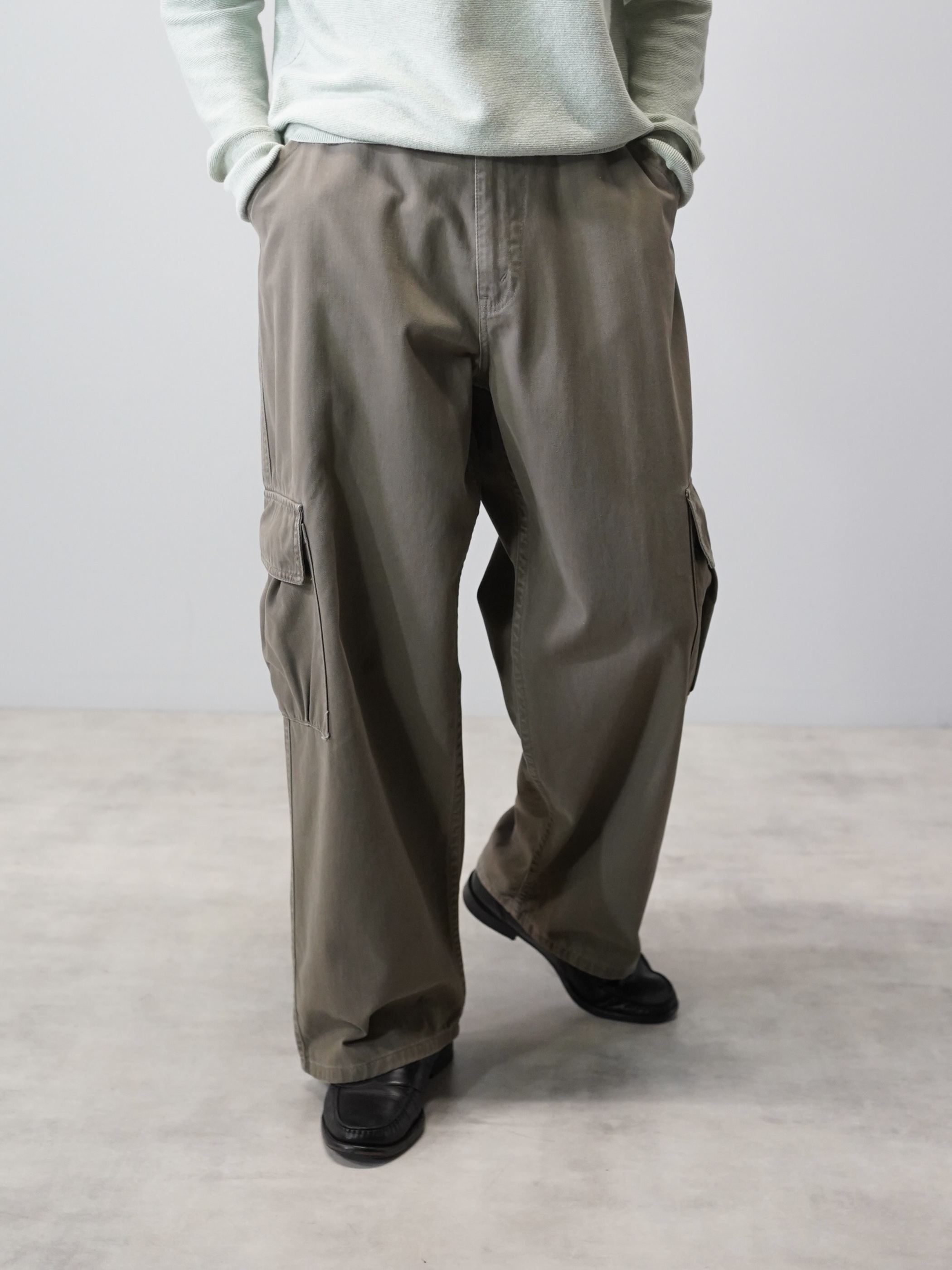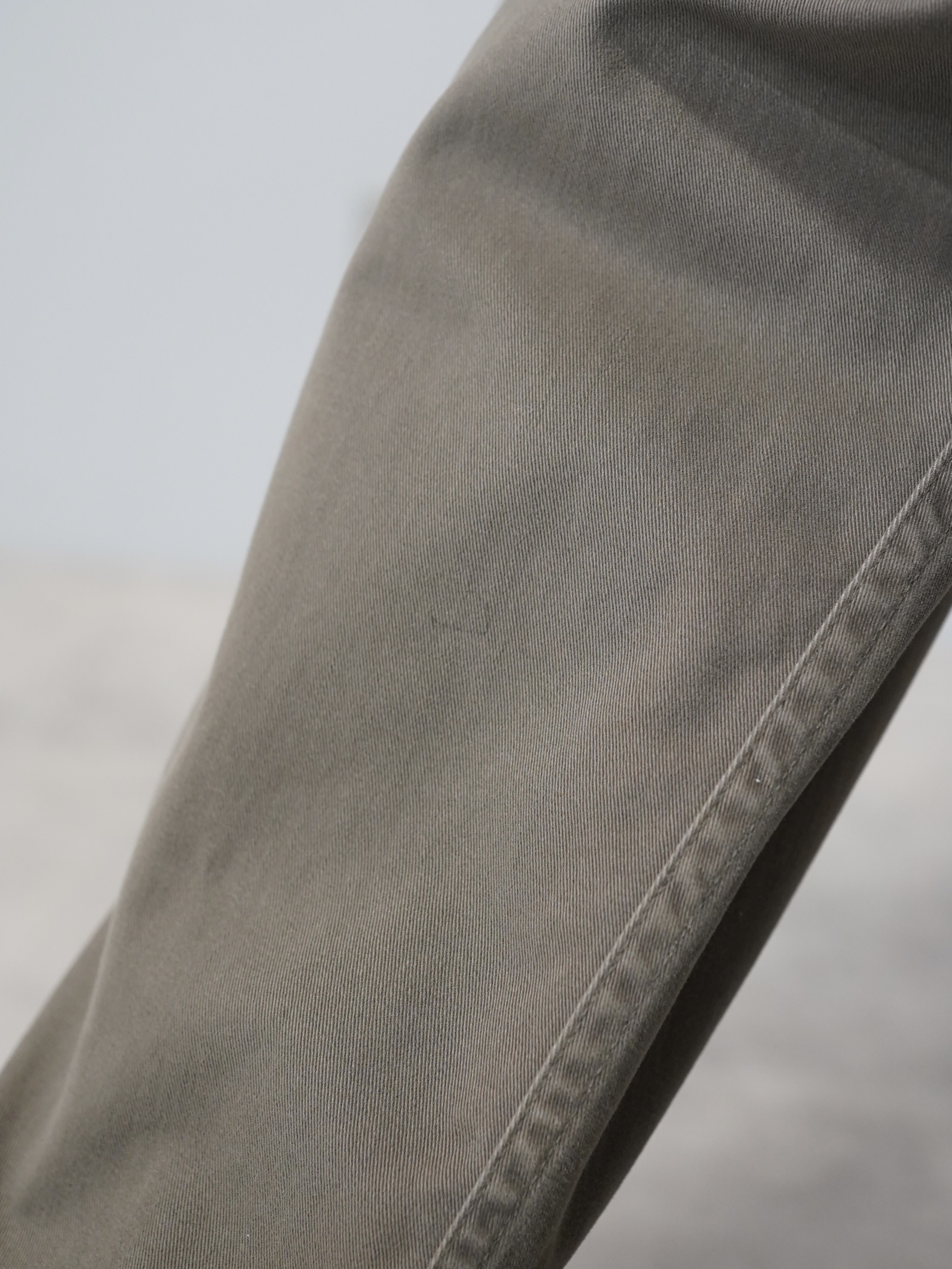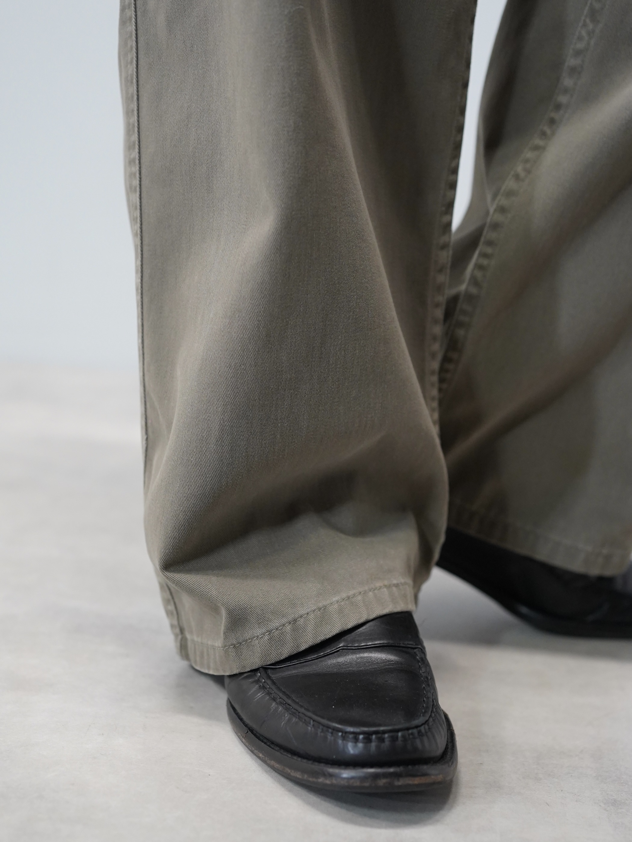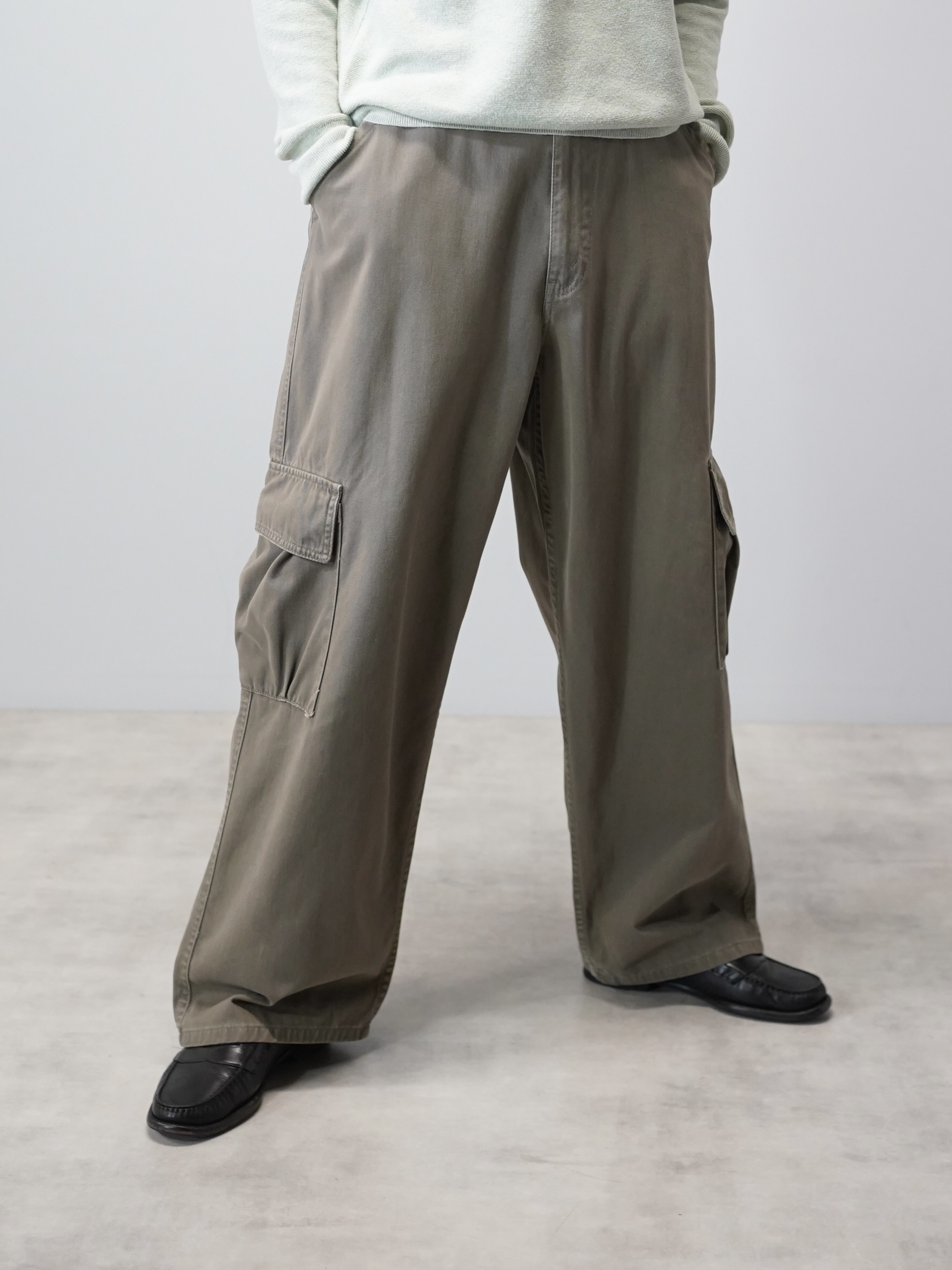 しっかりとゆとりを取ったシルエットに対して、落ち感のあるコットンツイルが野暮ったさを残さず自然に馴染むいい塩梅。