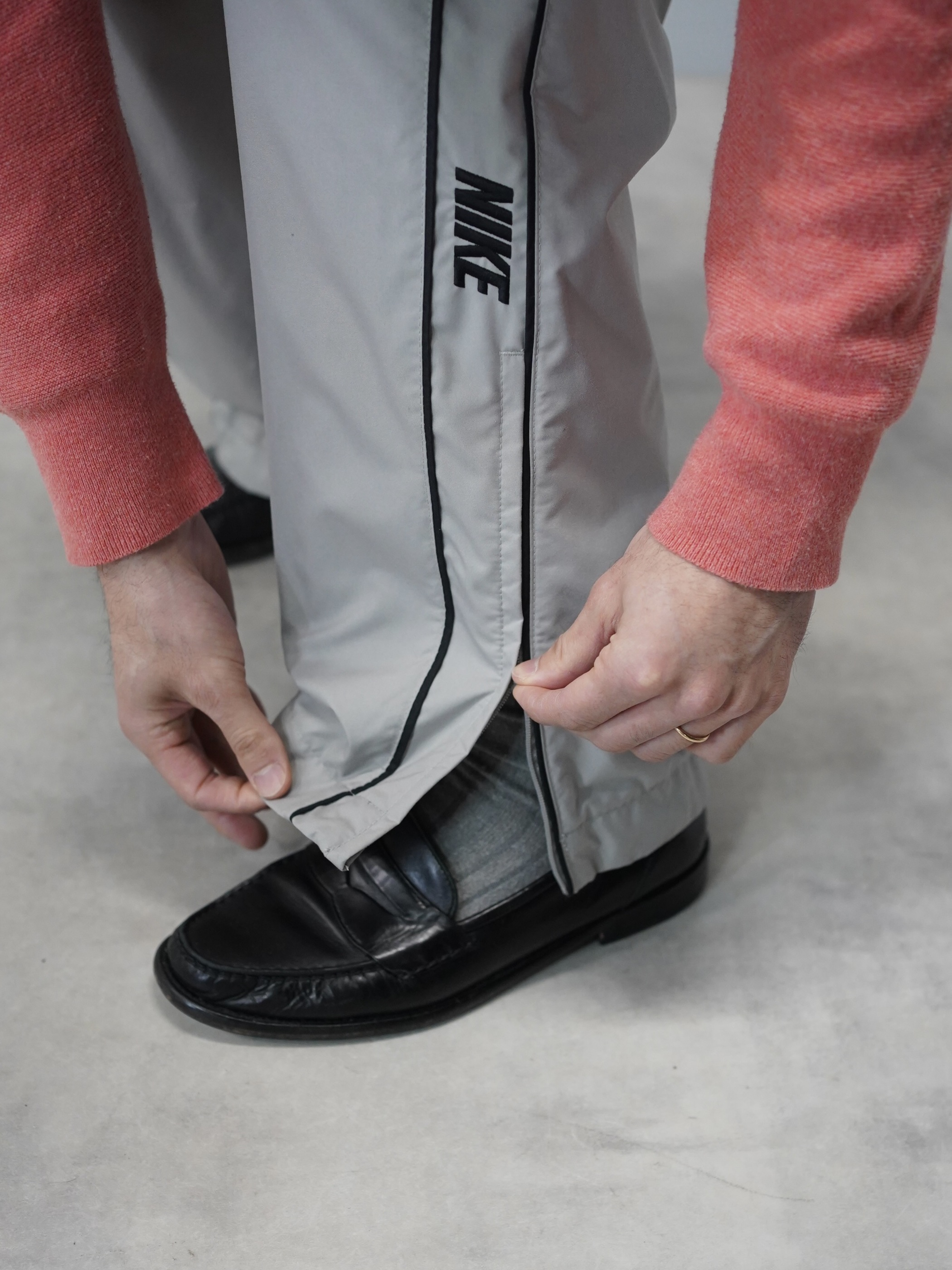 ・NIKE poly shell side line wide track pants