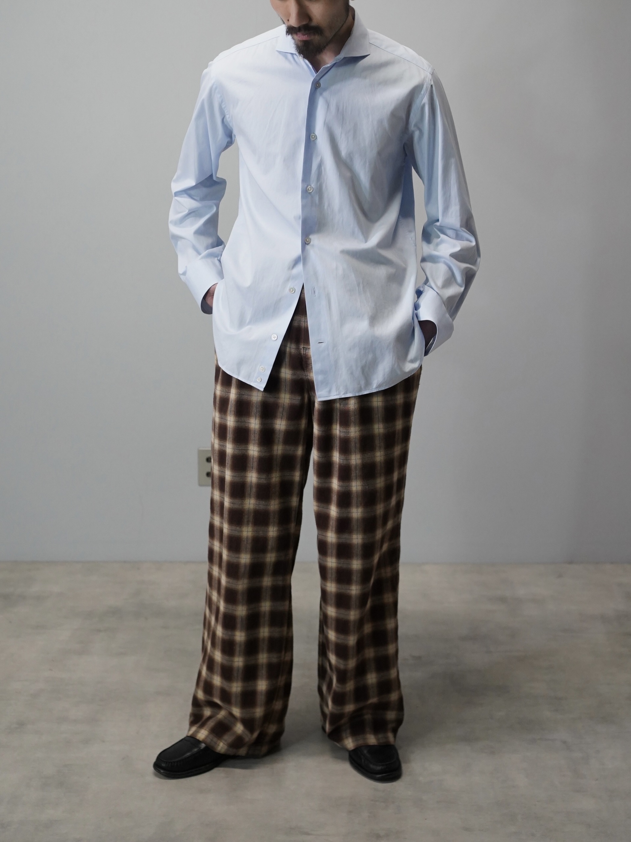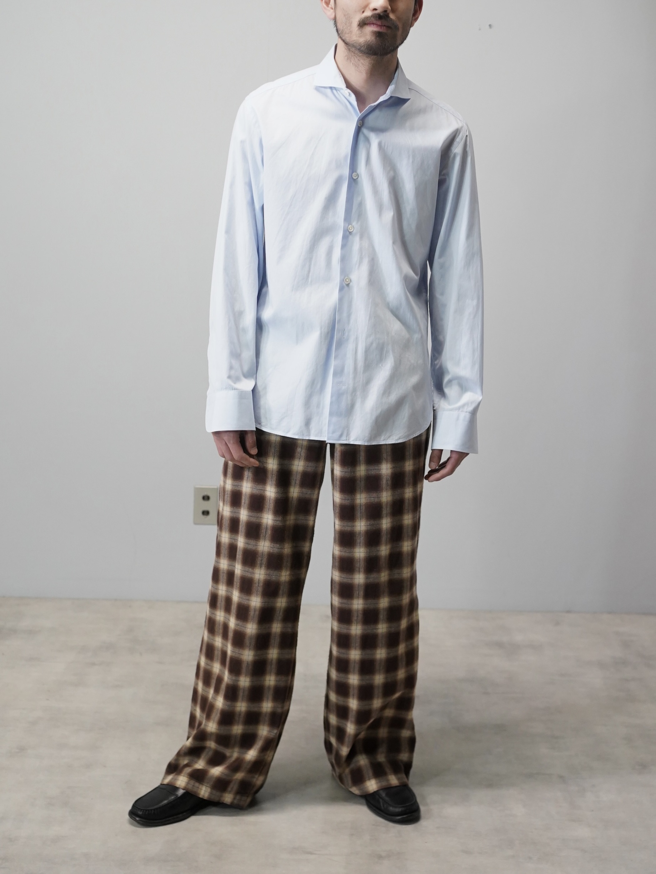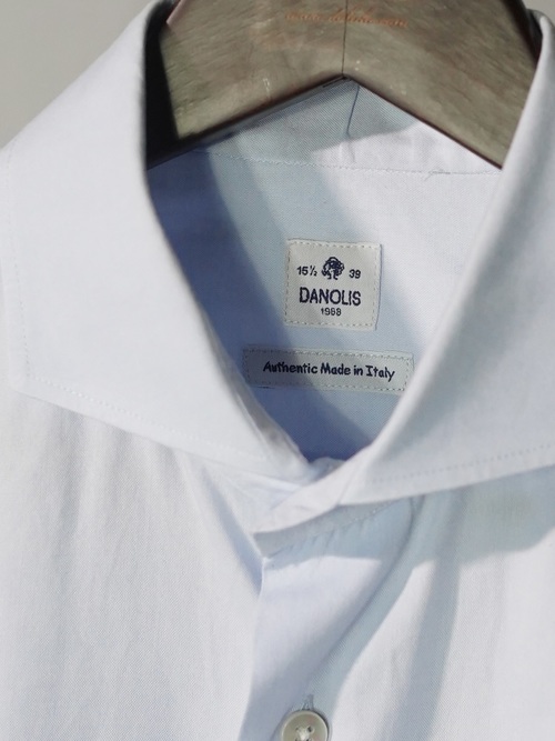 1990's ~ DANOLIS cotton semi wide collar dress shirt / Made in Italy