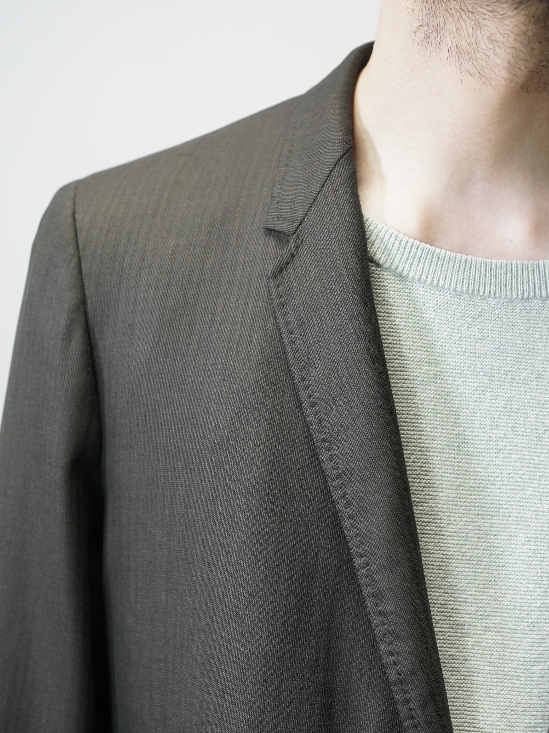 ファブリックは光の加減で浮かび上がるシャドーストライプ。