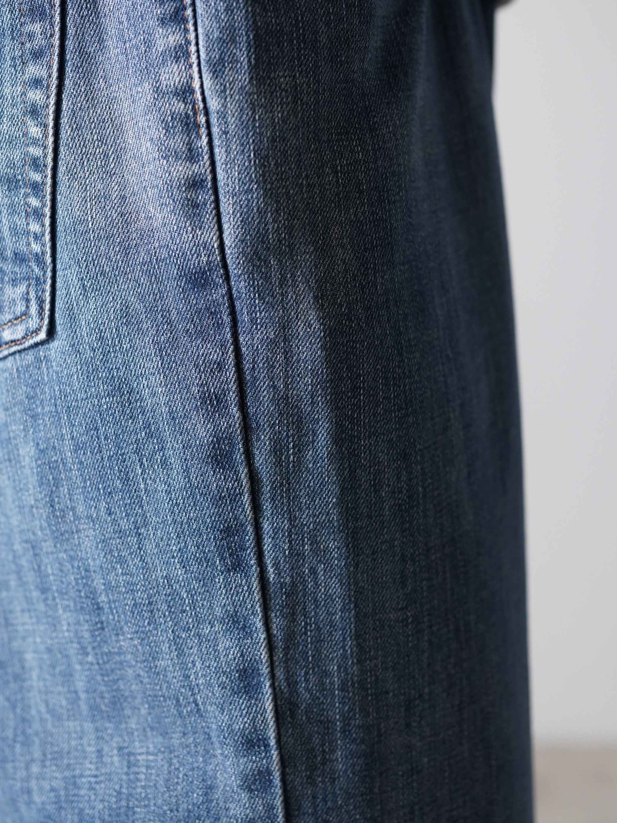 メキシコ製はほんのり縦落ちのようなエイジングをしていく染料。