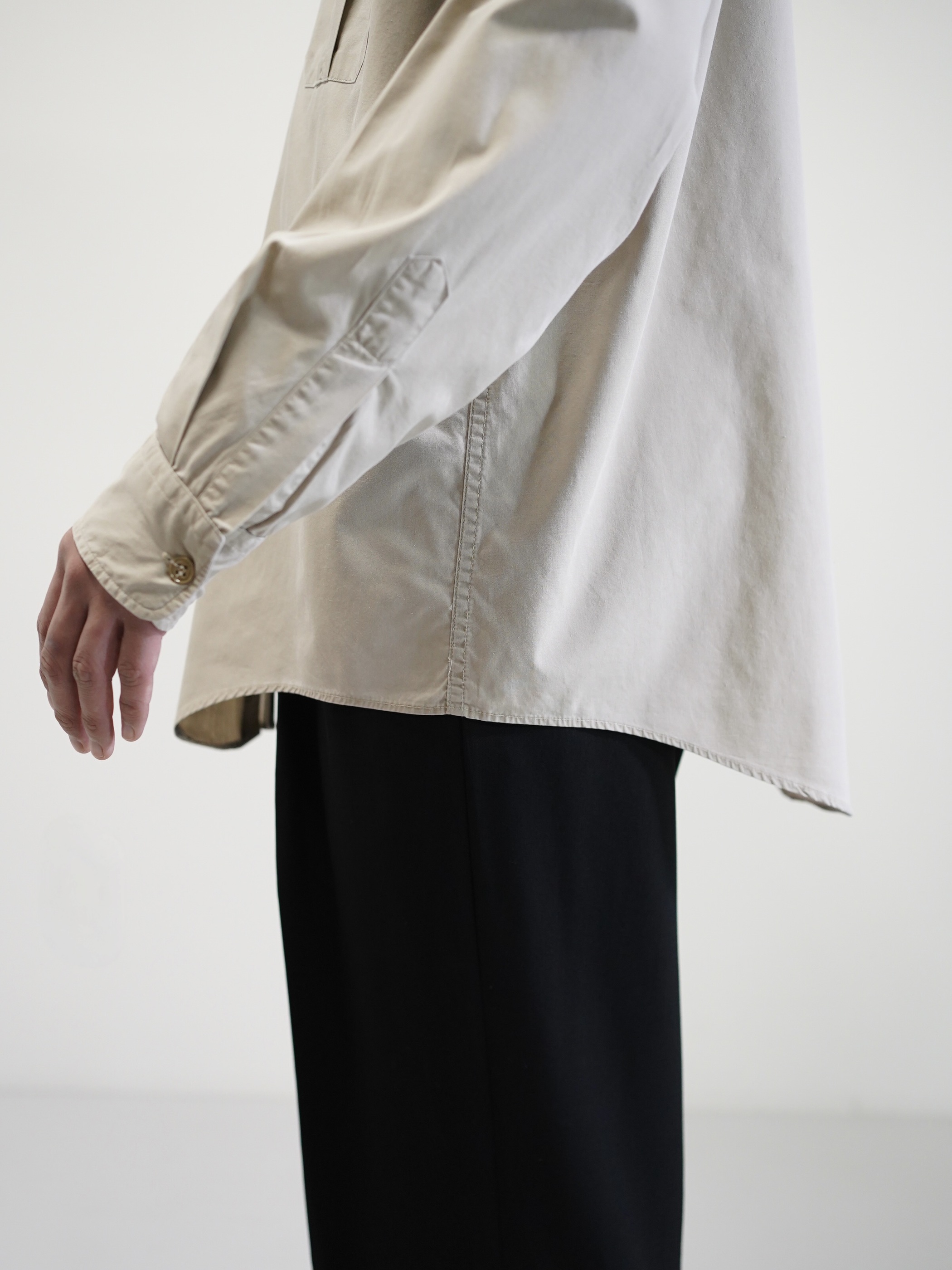 ワークやミリタリーの無骨さよりも、どこかドレスシャツのような空気を感じる質感。
