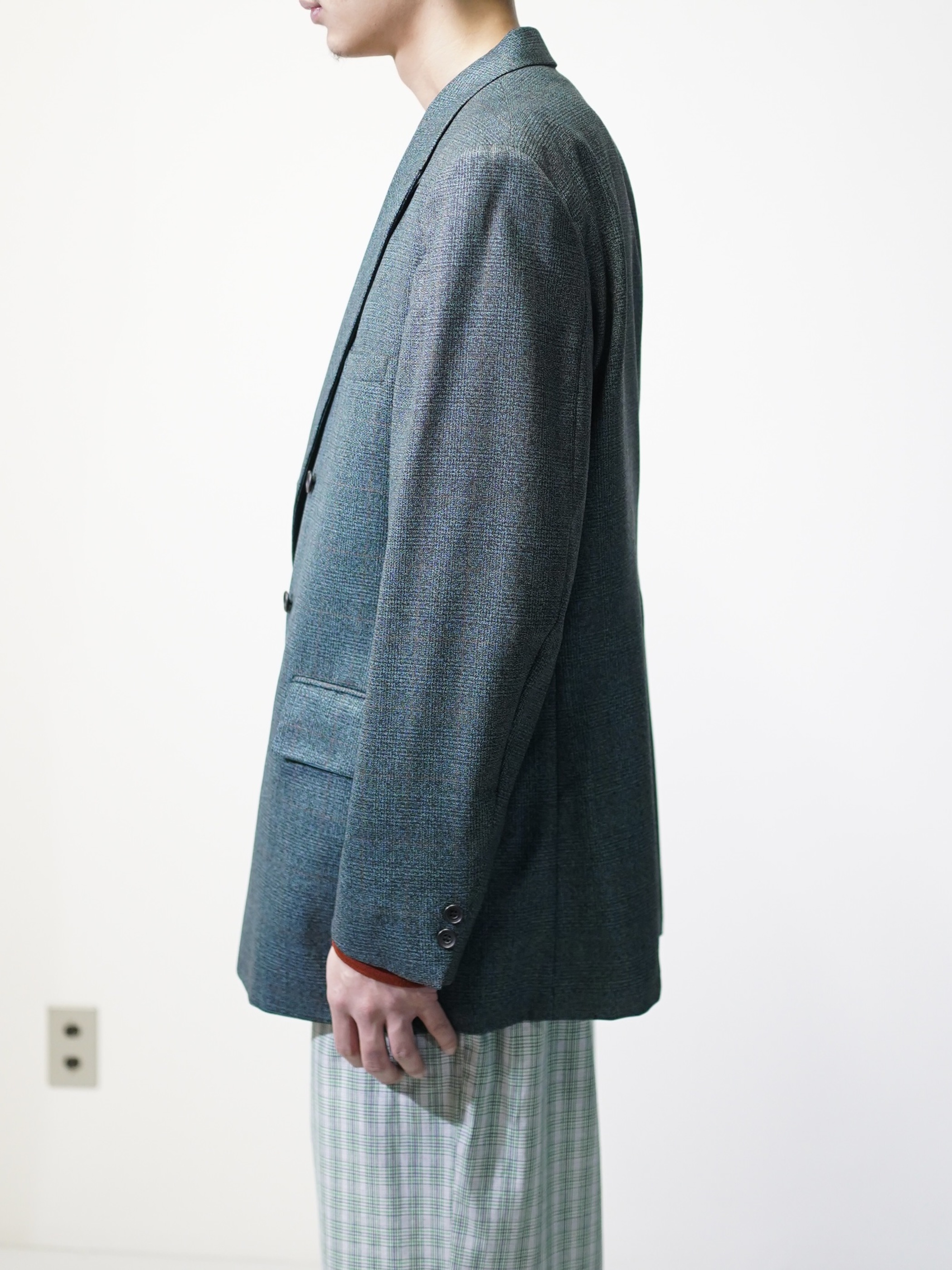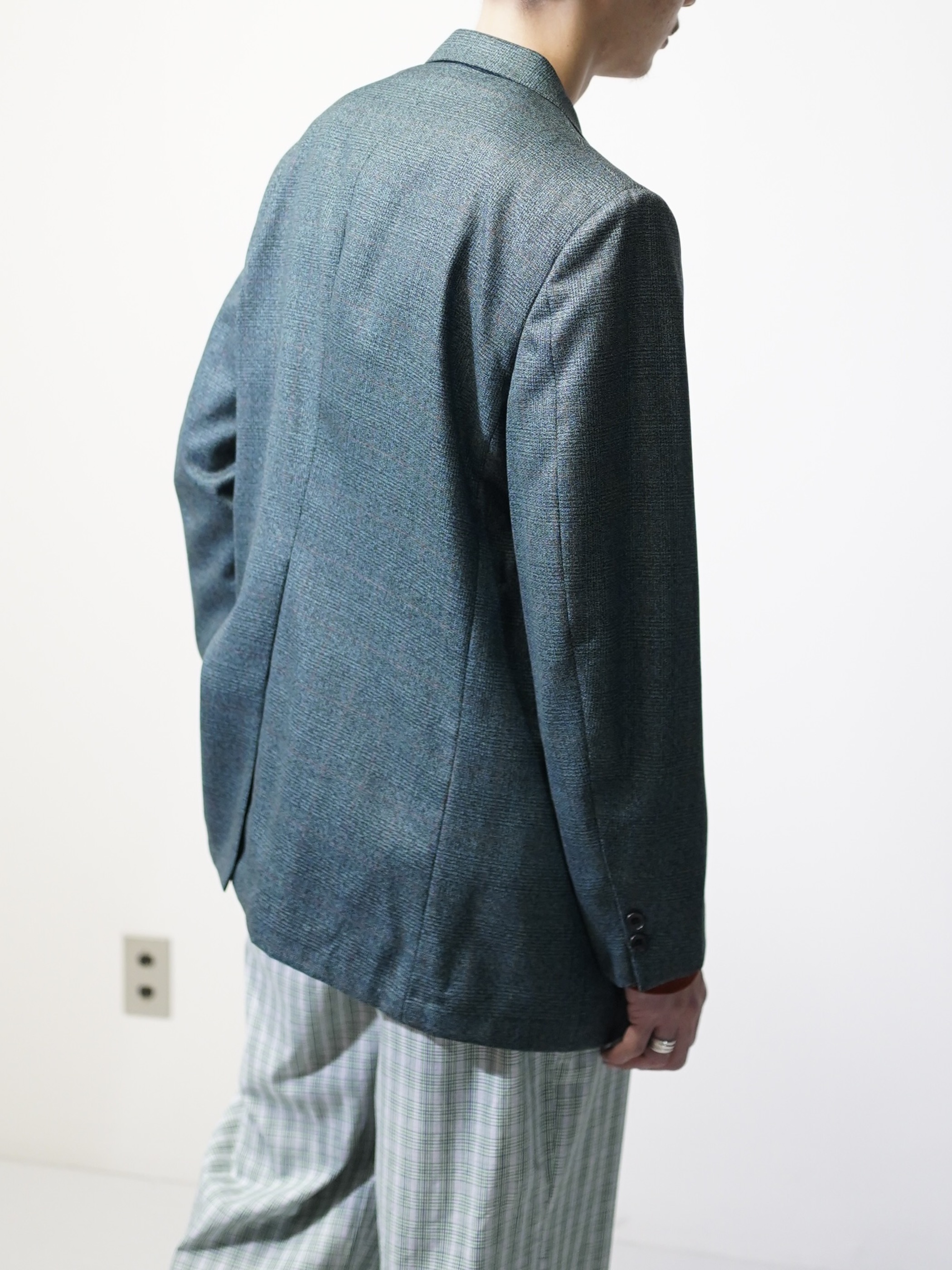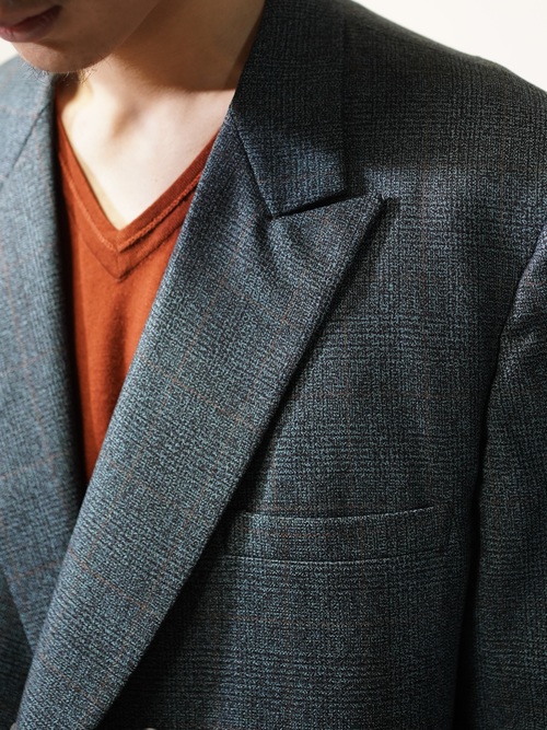 サイズバランスも着丈袖丈長すぎず、洋服に着られてしまう感覚のないピークド・ダブルジャケットです。