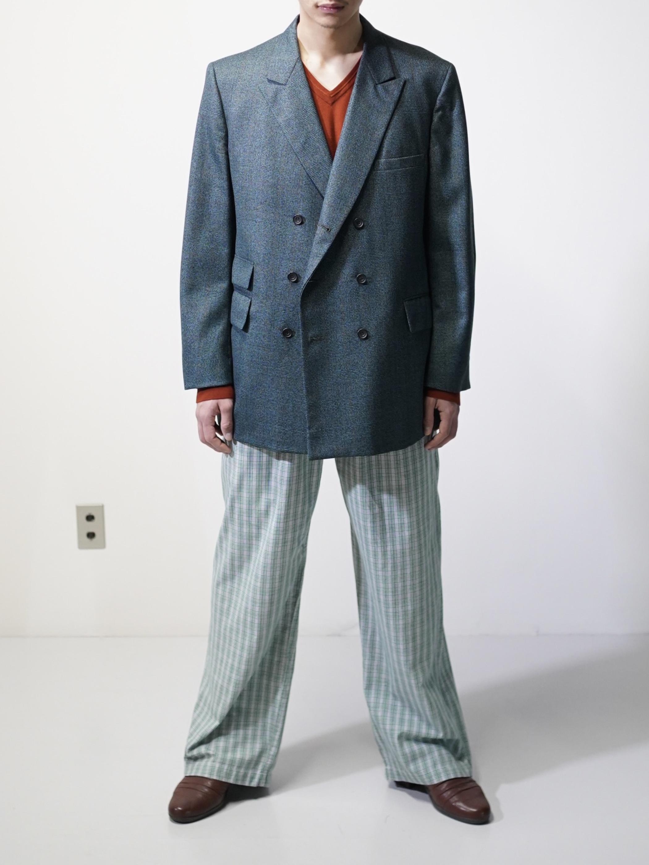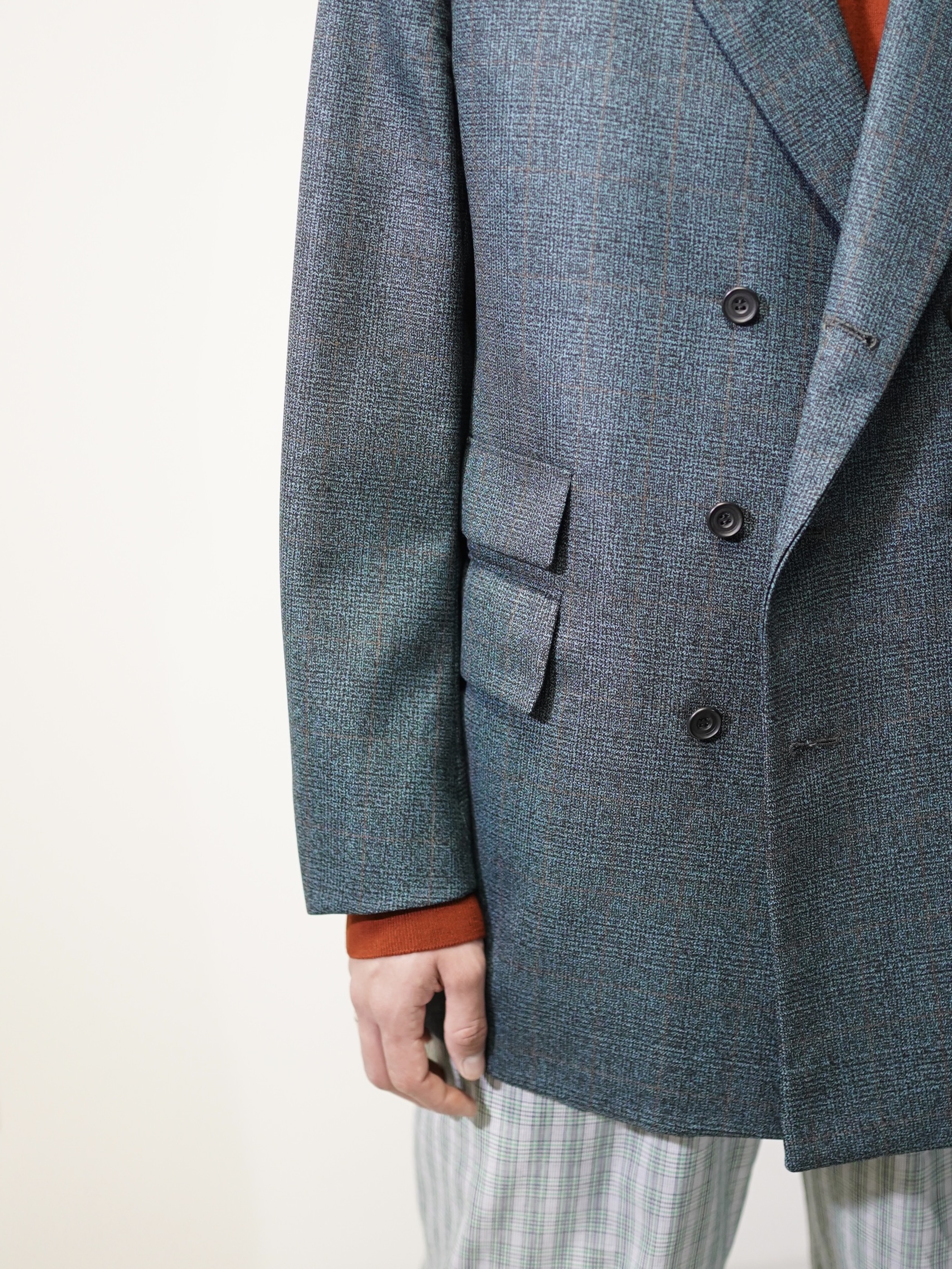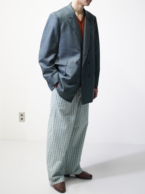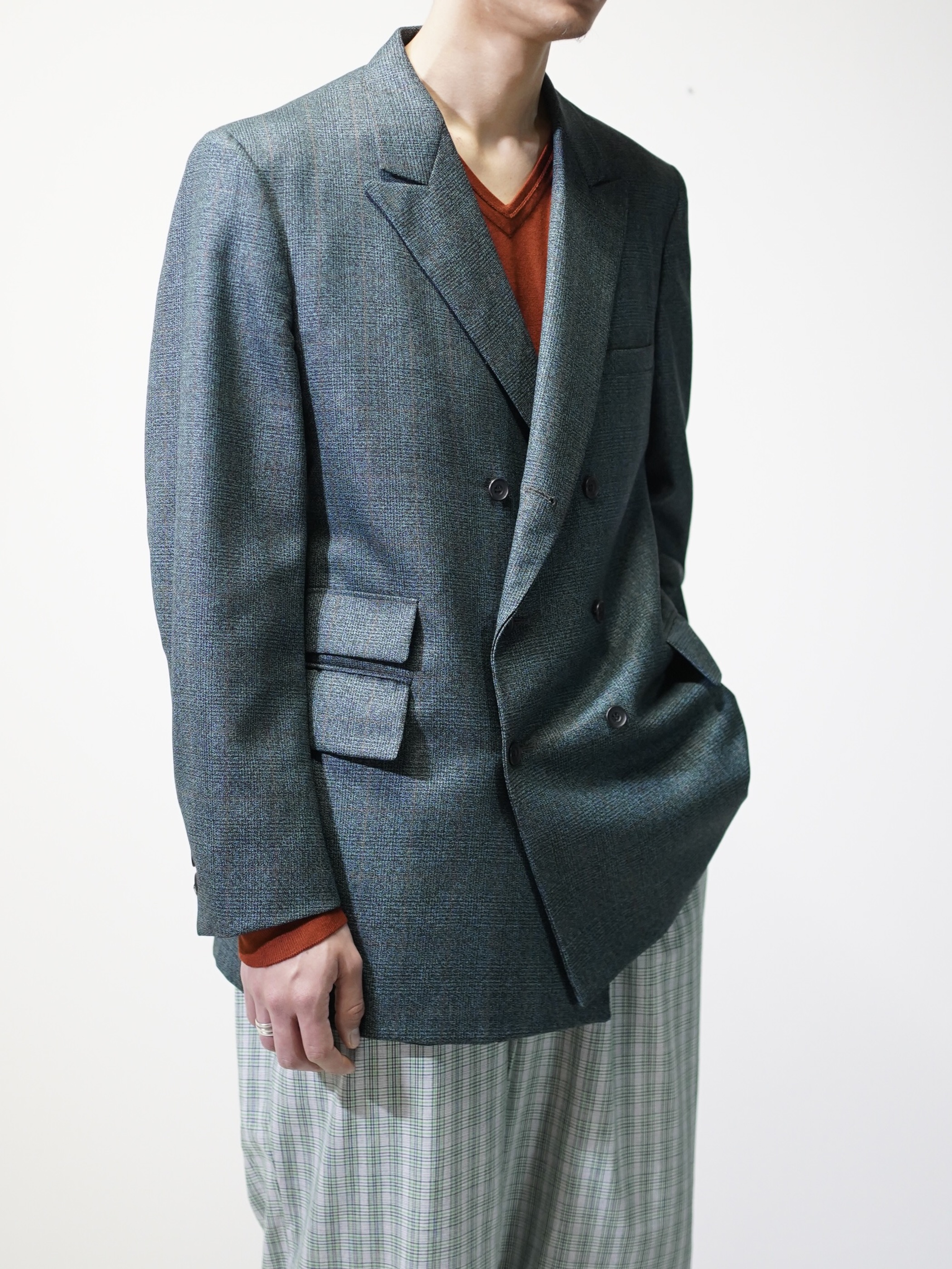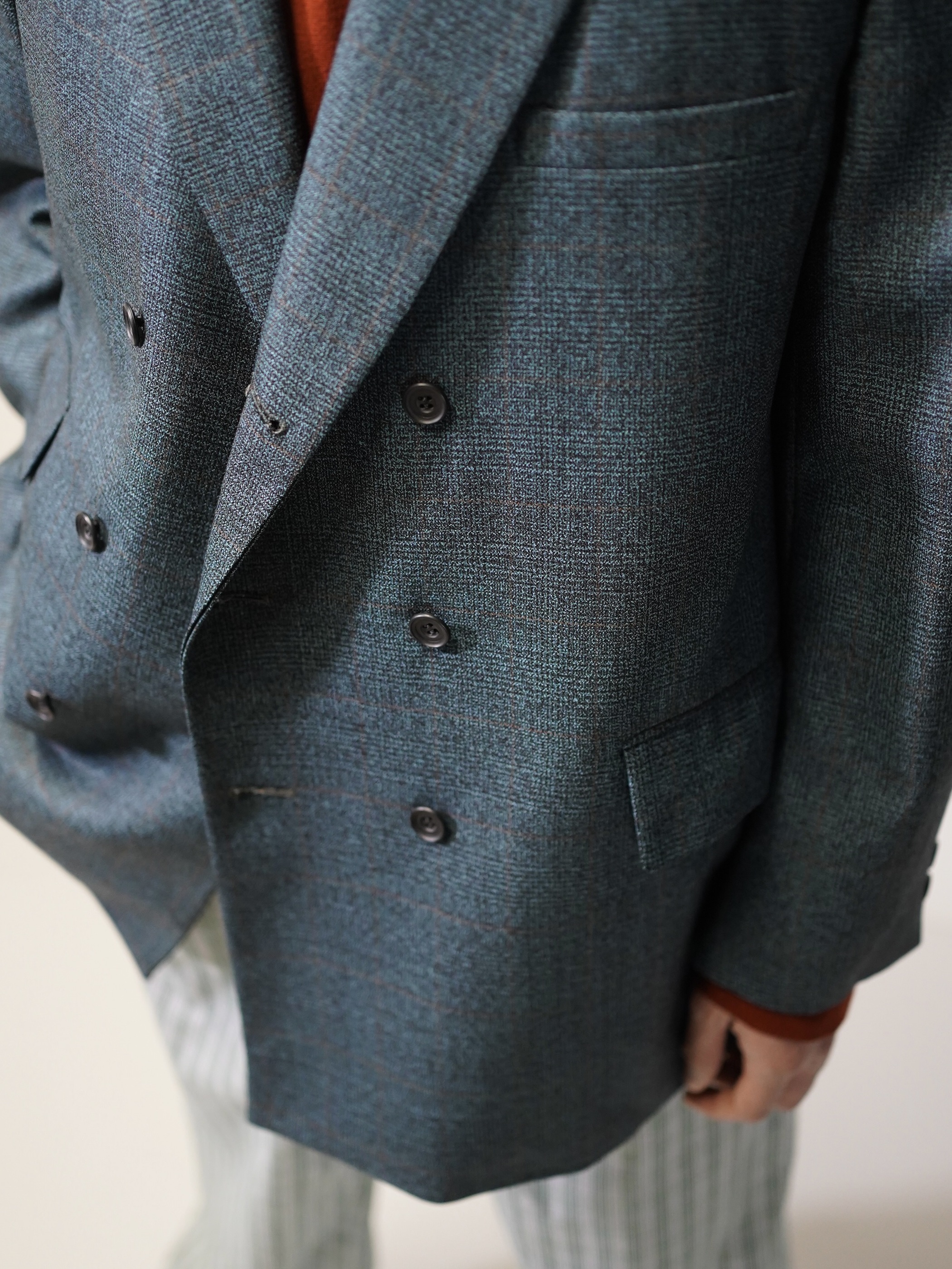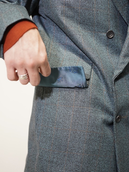 ほんのり60年代の渋みみたいなものを残しつつ、移り変わる時代の華やかさを表現したダブルブレスト。