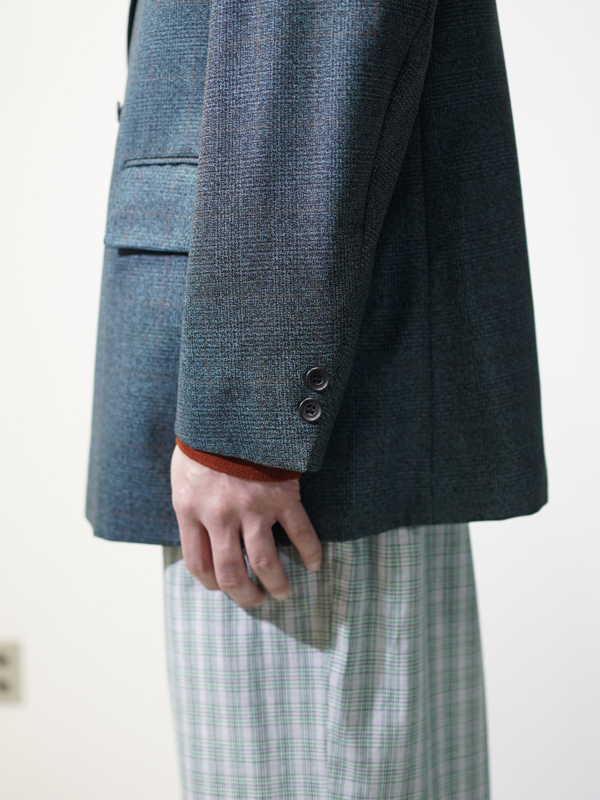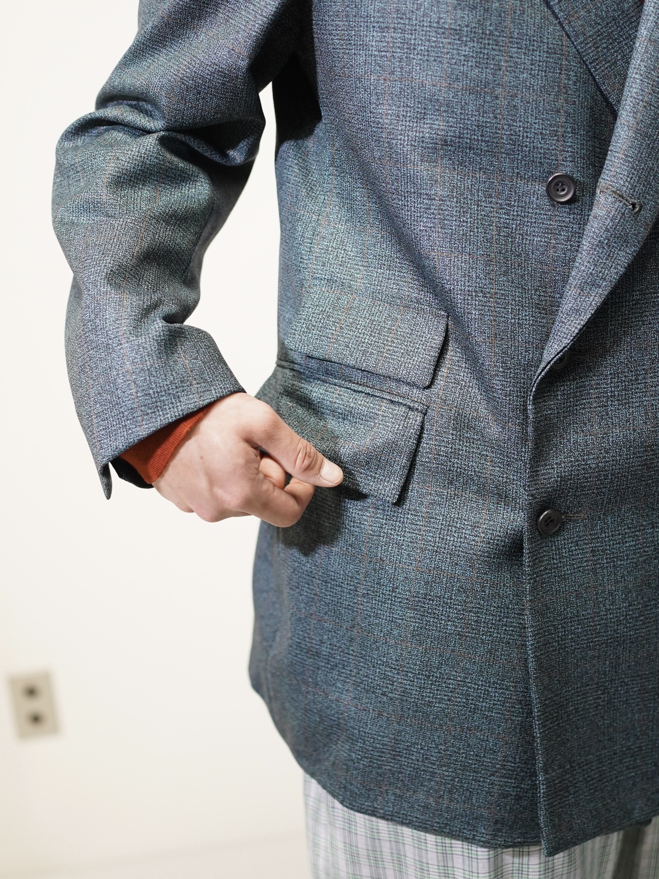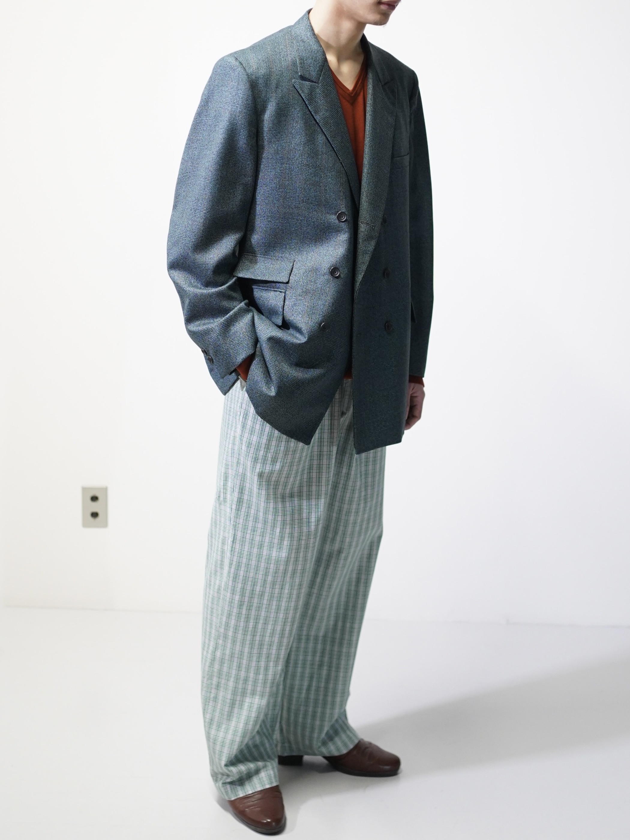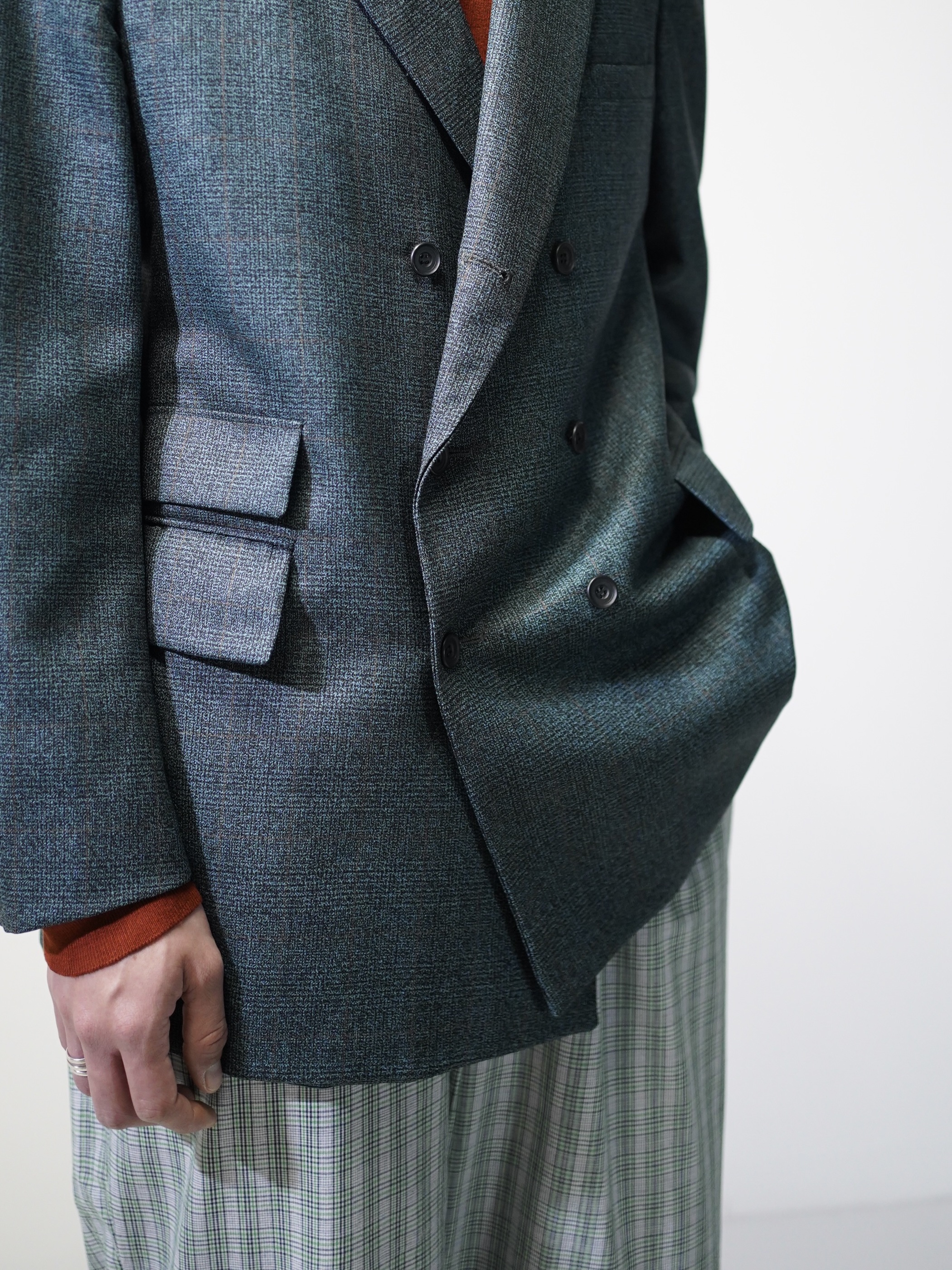 ほんのり60年代の渋みみたいなものを残しつつ、移り変わる時代の華やかさを表現したダブルブレスト。