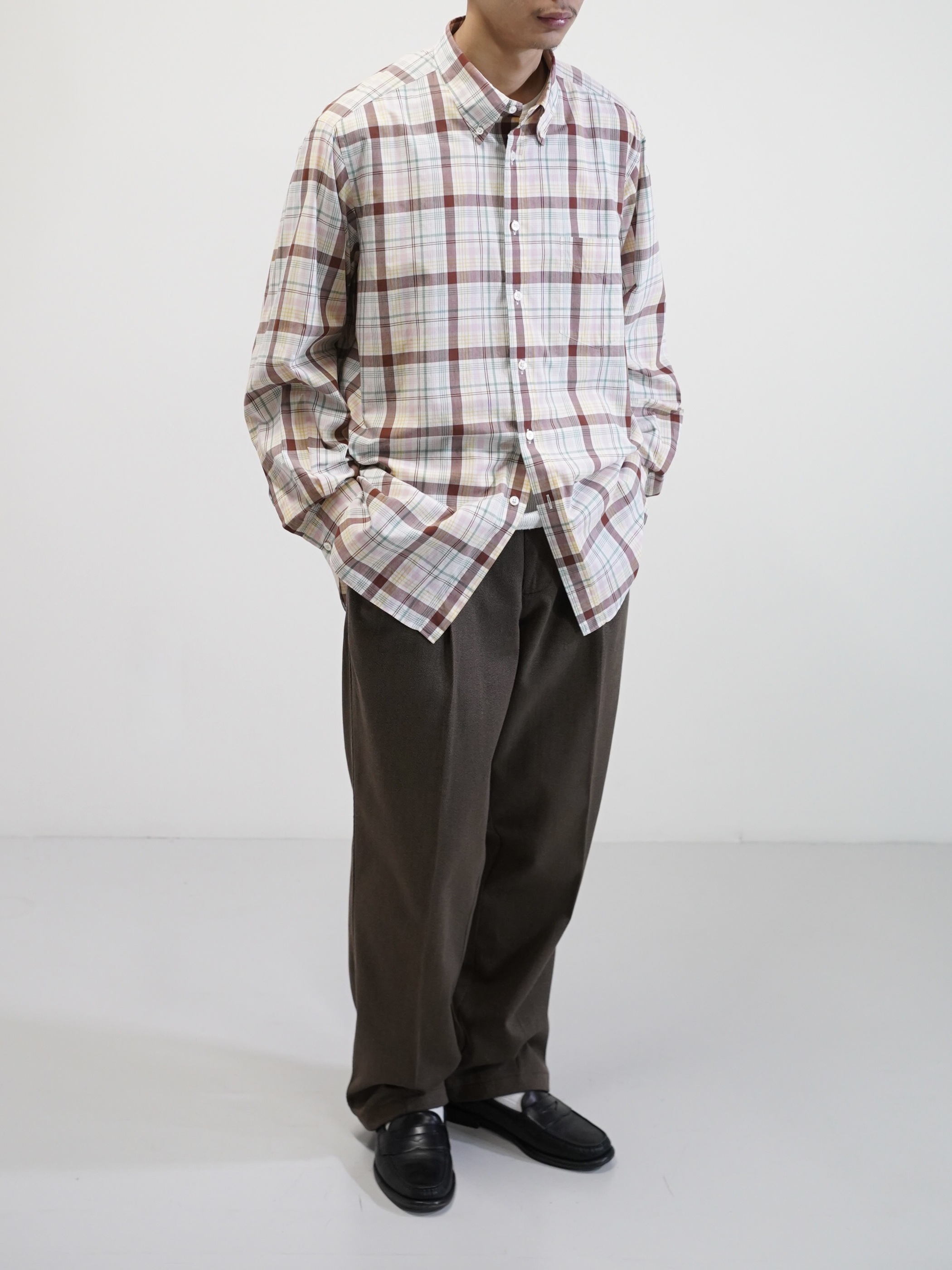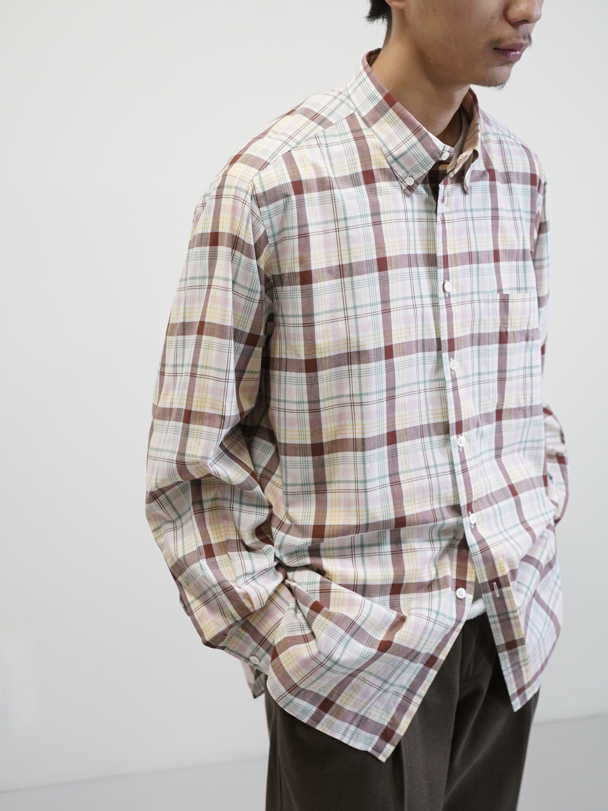 1953年創業の香港を拠点とする世界的な高級オーダーメイドシャツ・スーツブランド「ASCOT CHANG(アスコット チャン)」から、淡いトーンで構成された、柔らかな印象のマドラスチェックボタンダウンシャツ。