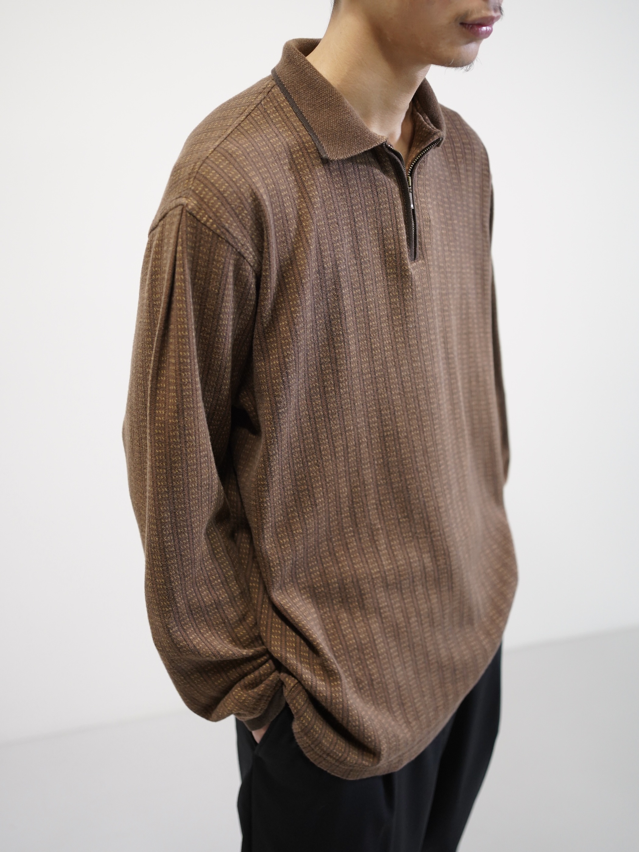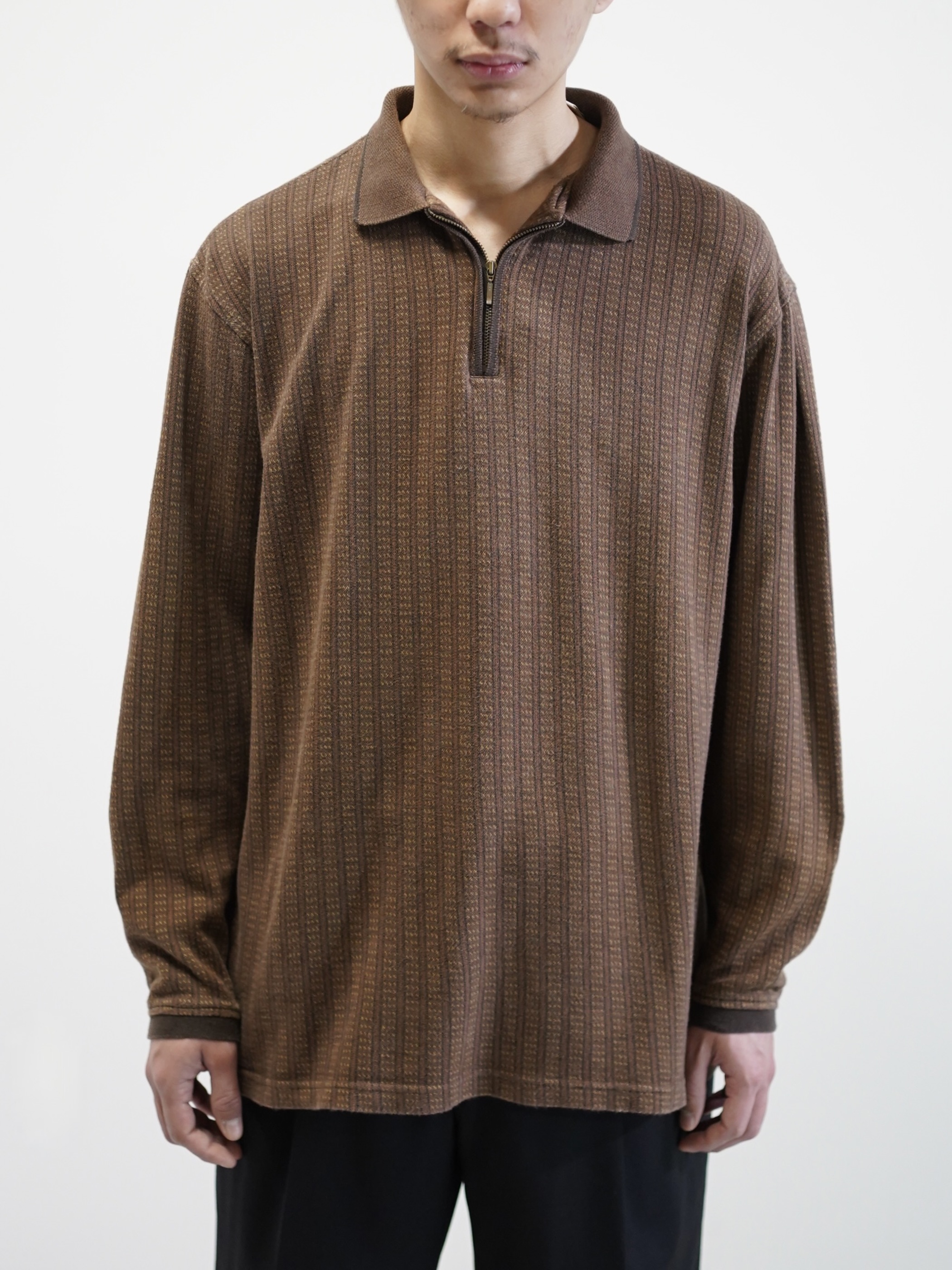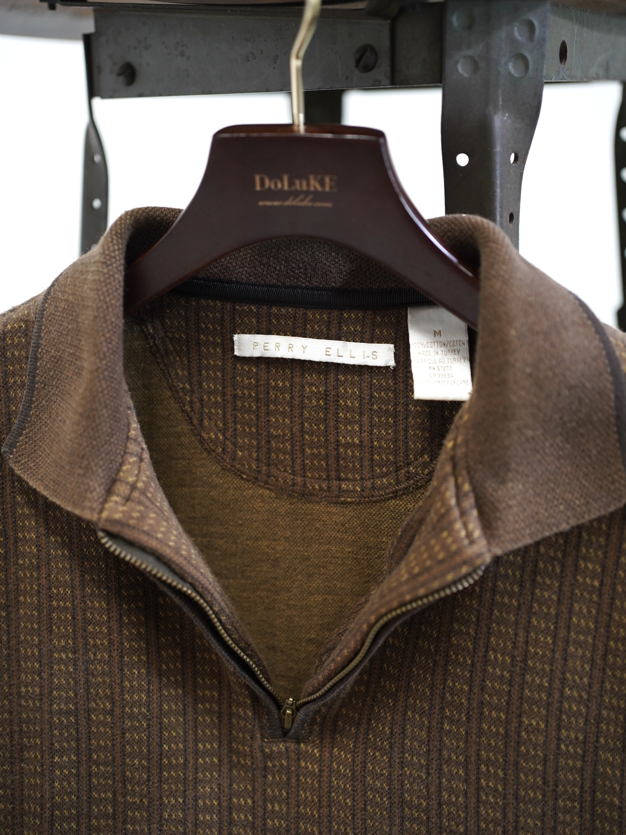 ・1990's PERRY ELLIS Half-zip cotton L/S polo shirt / Made in Turkey