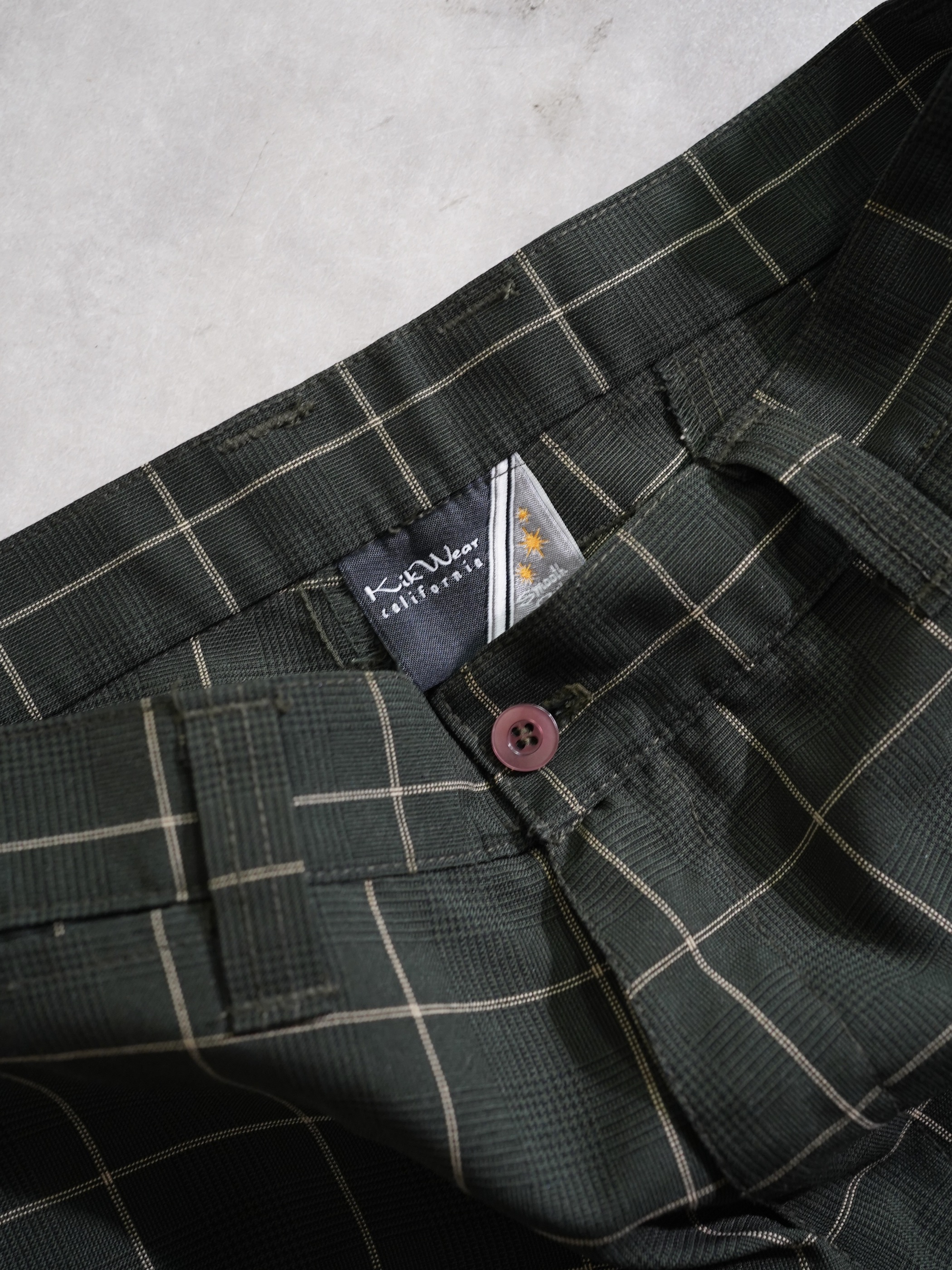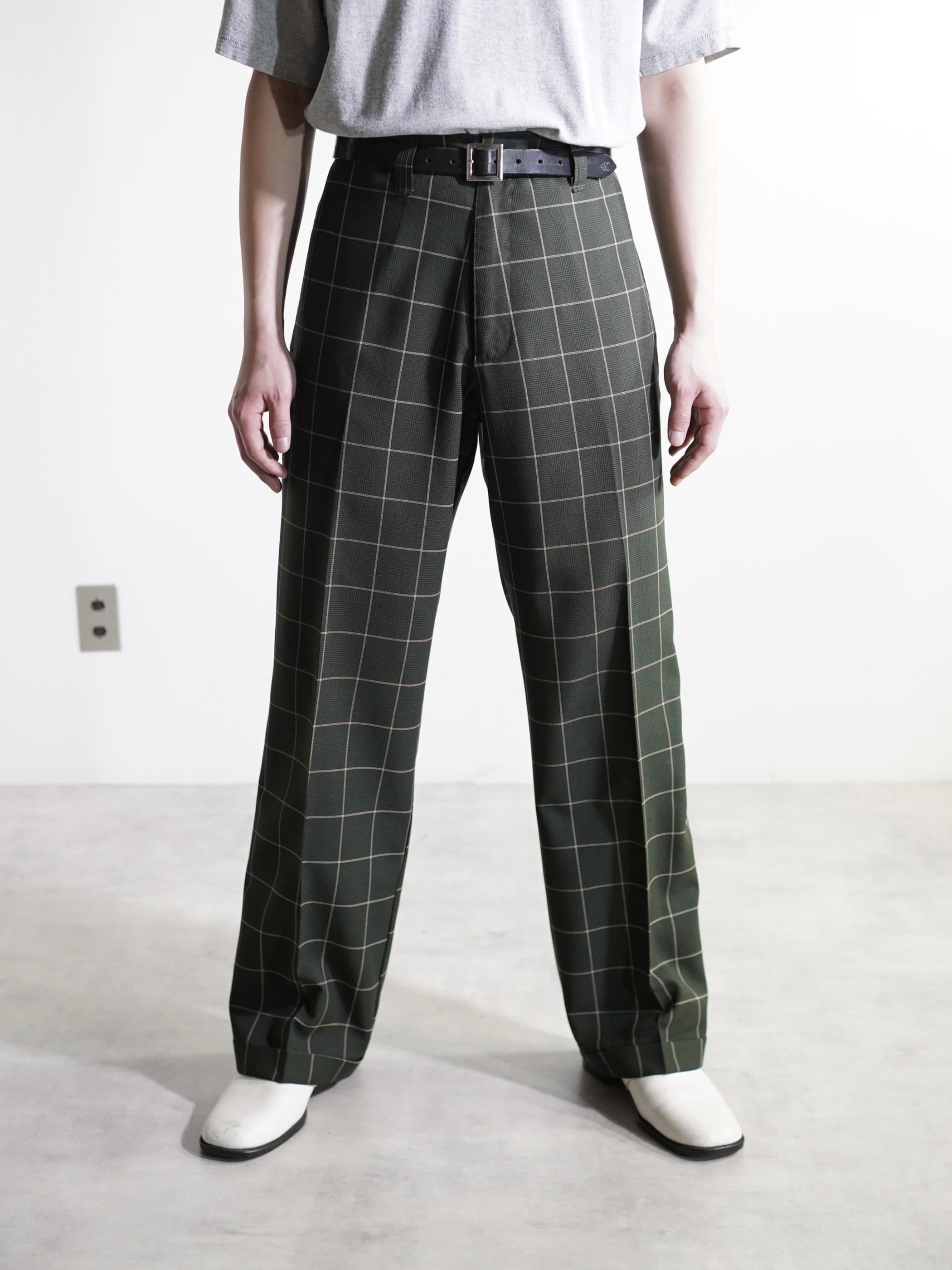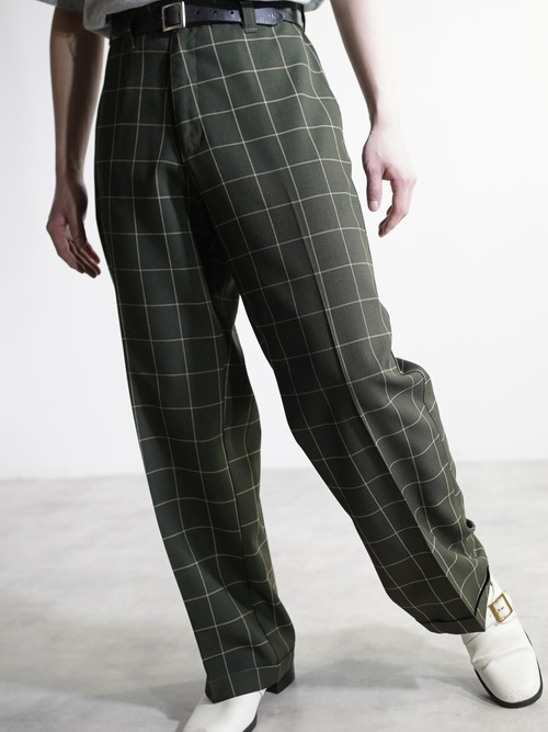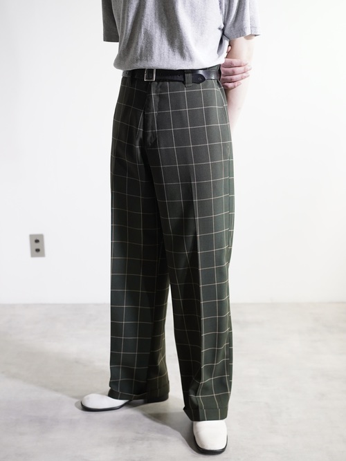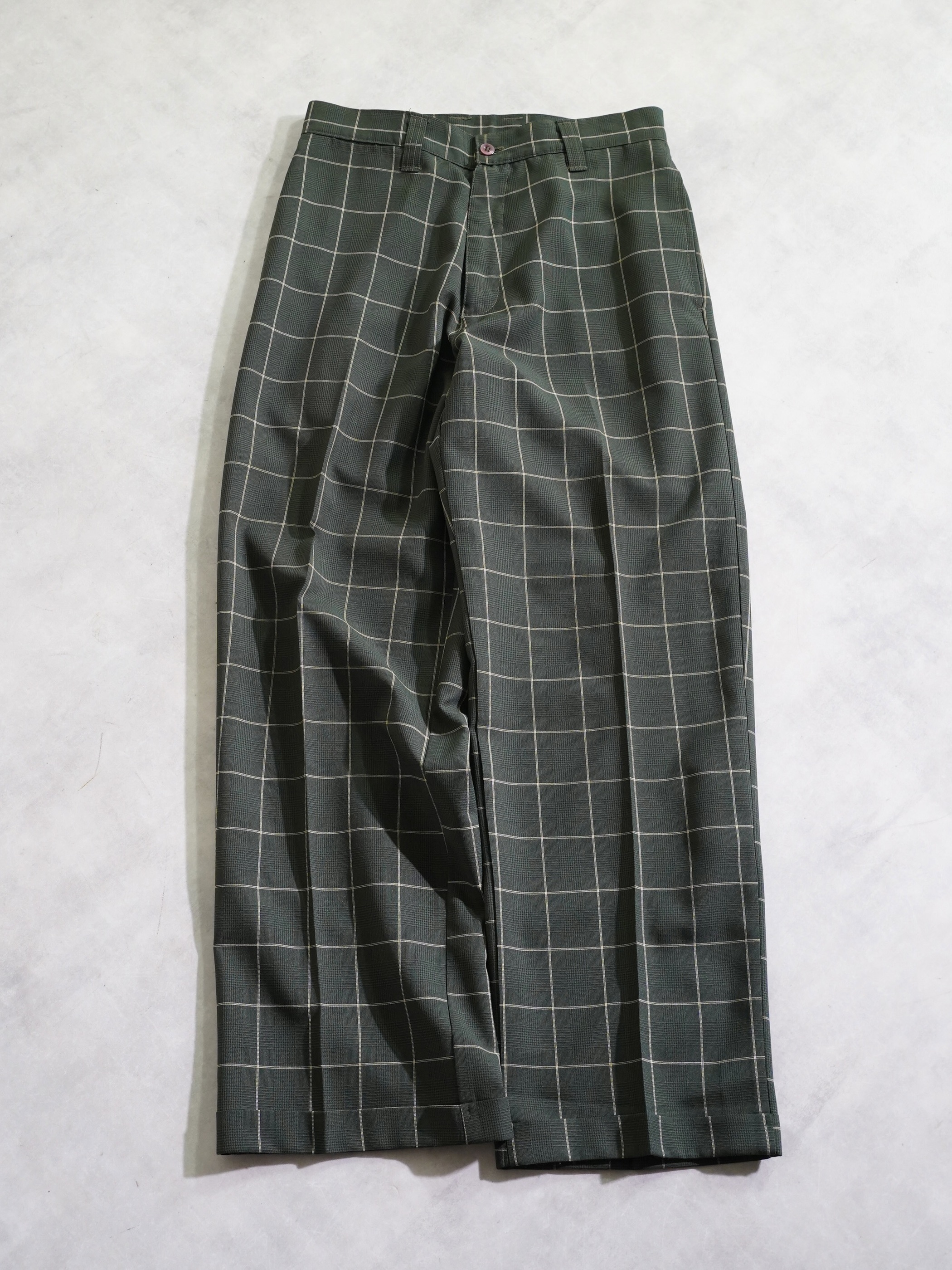 1990's Kik Wear glen&windowpane check poly rayon ”No tuck” wide slacks/Made in USA