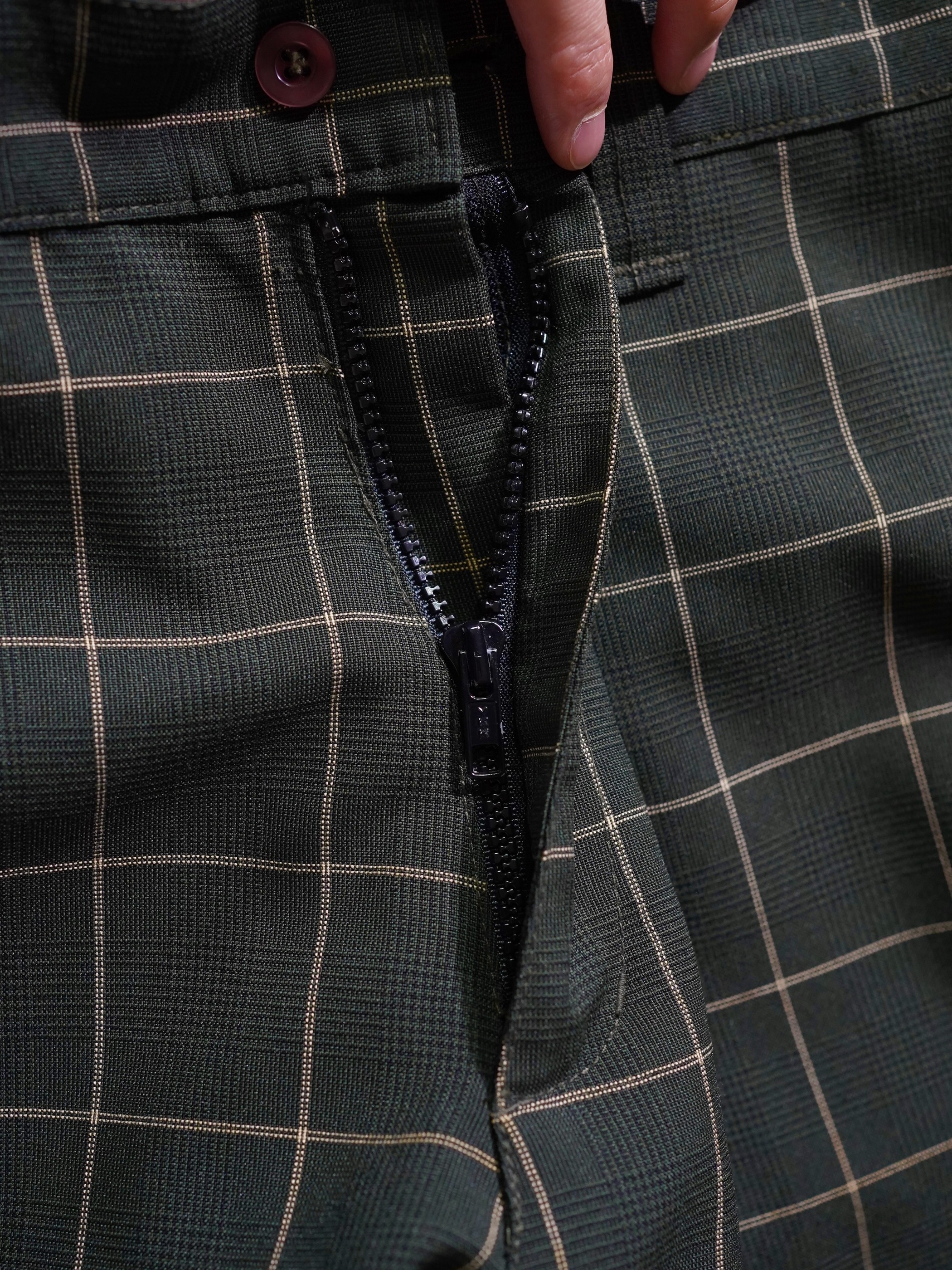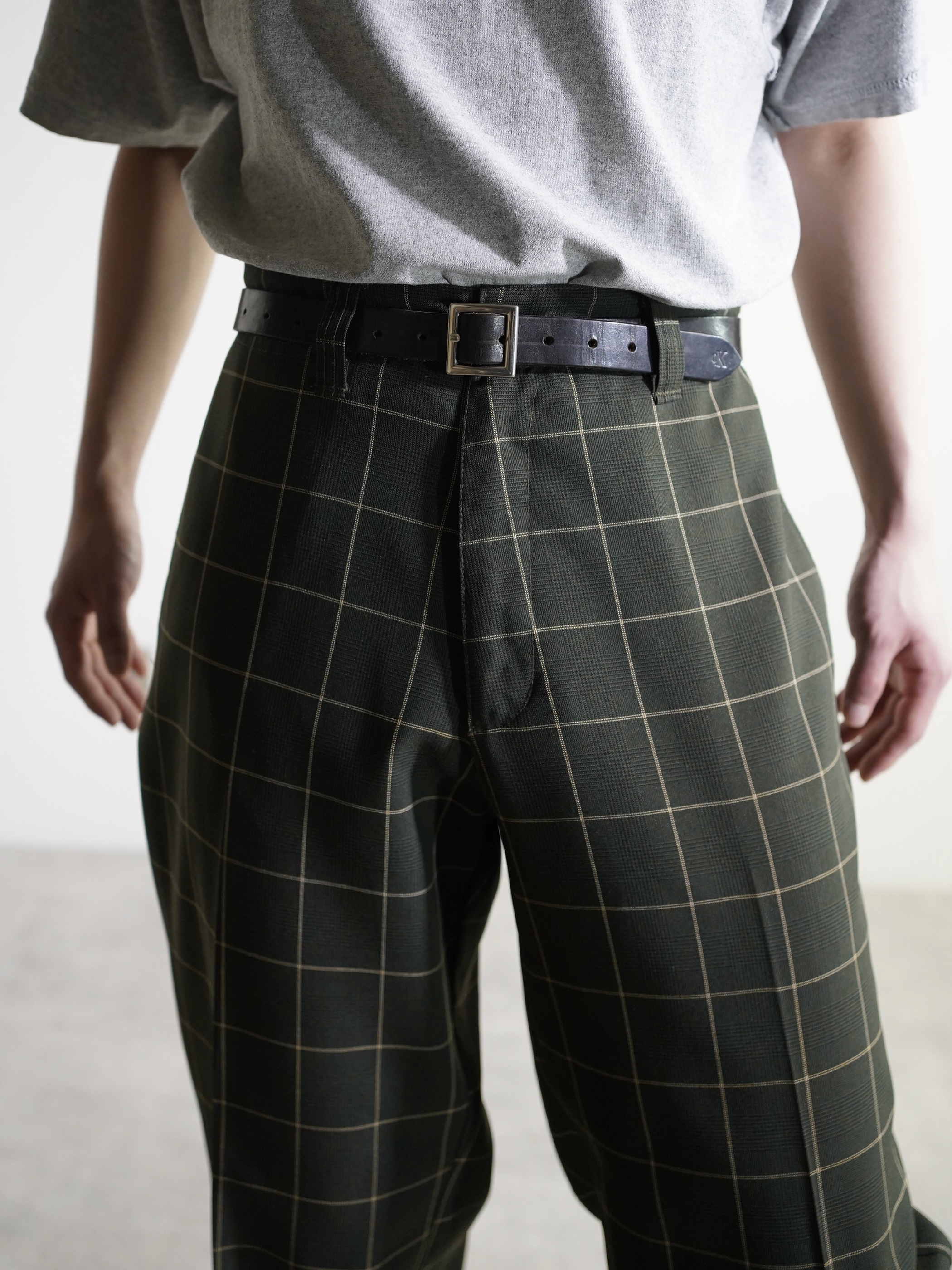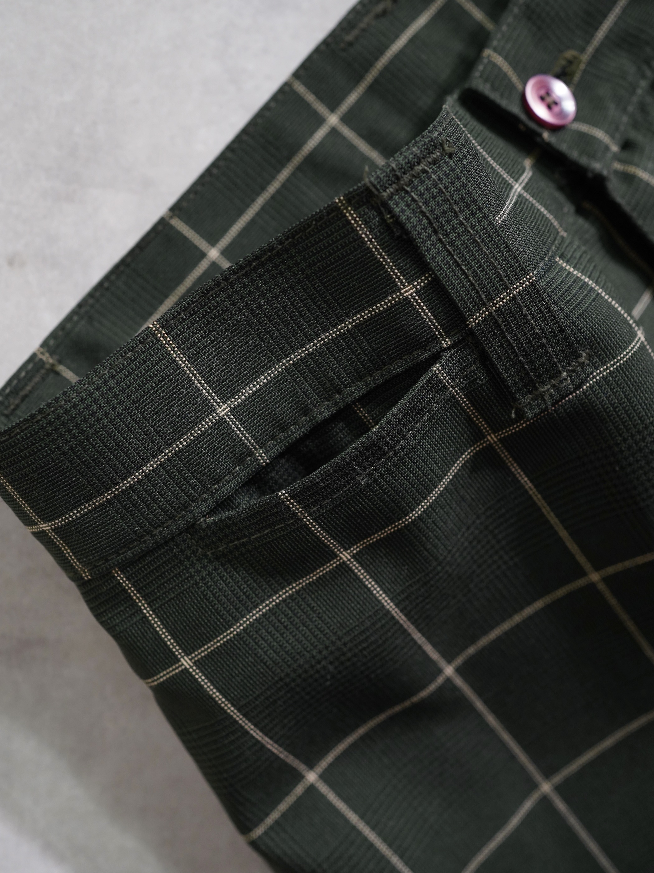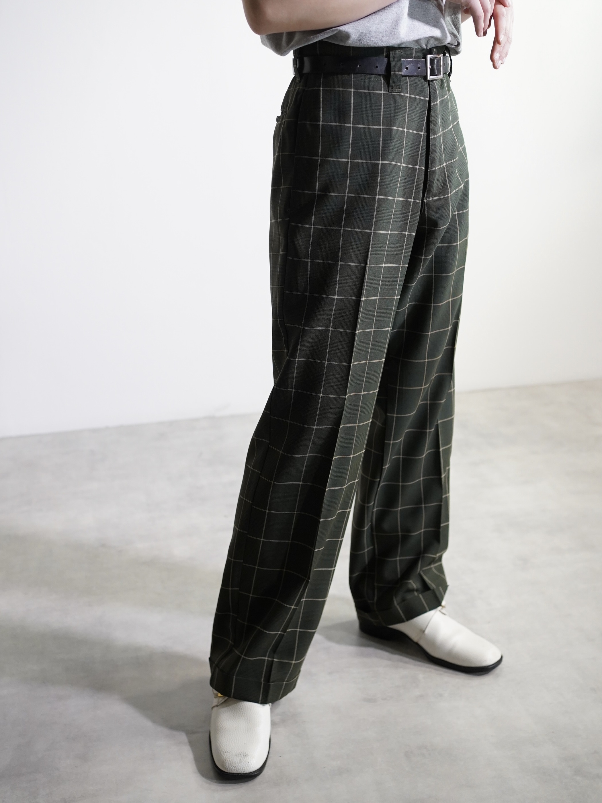1990's Kik Wear glen&windowpane check poly rayon ”No tuck” wide slacks/Made in USA