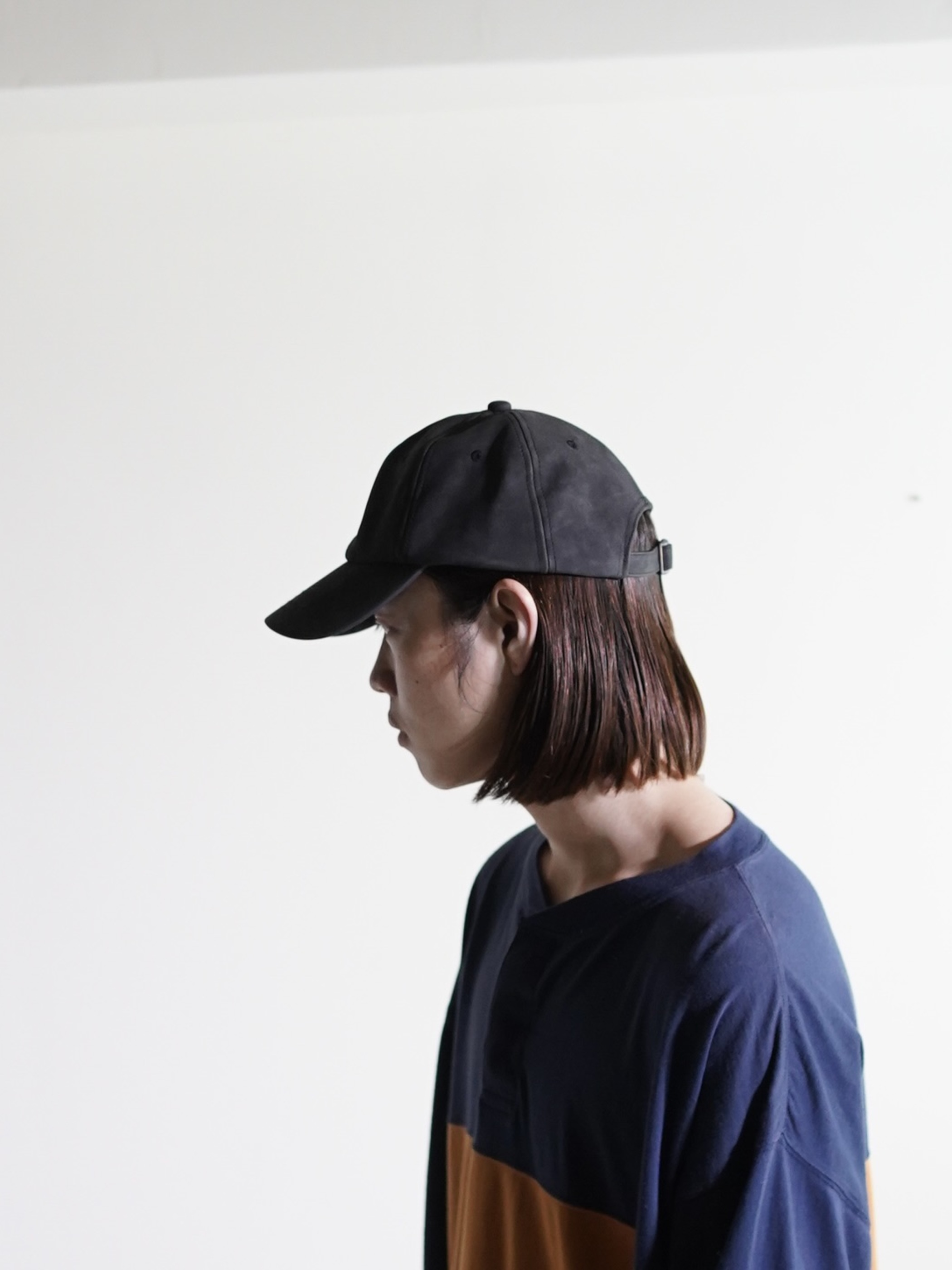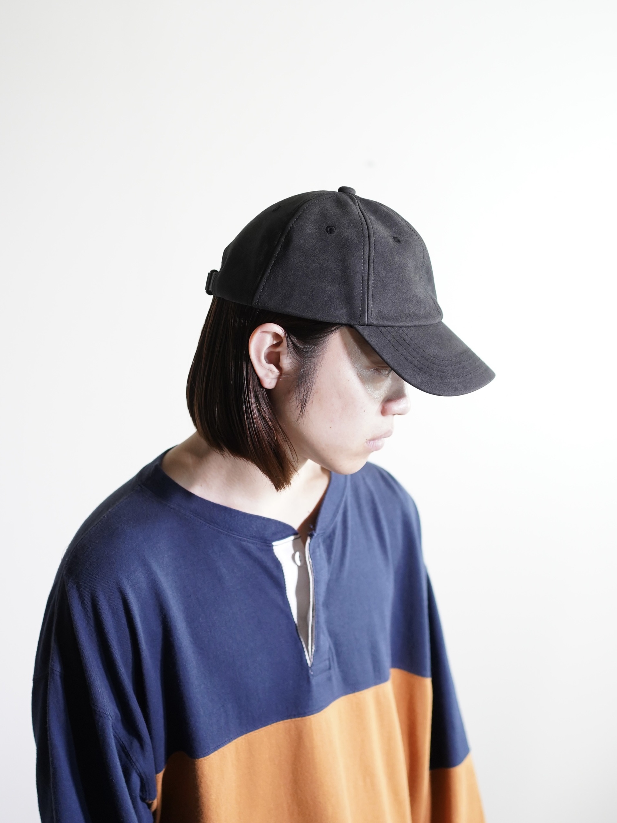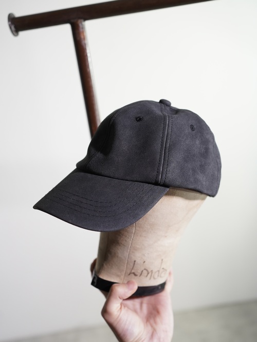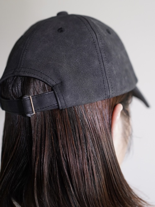 チャコールカラーのPUフェイクレザーキャップ
